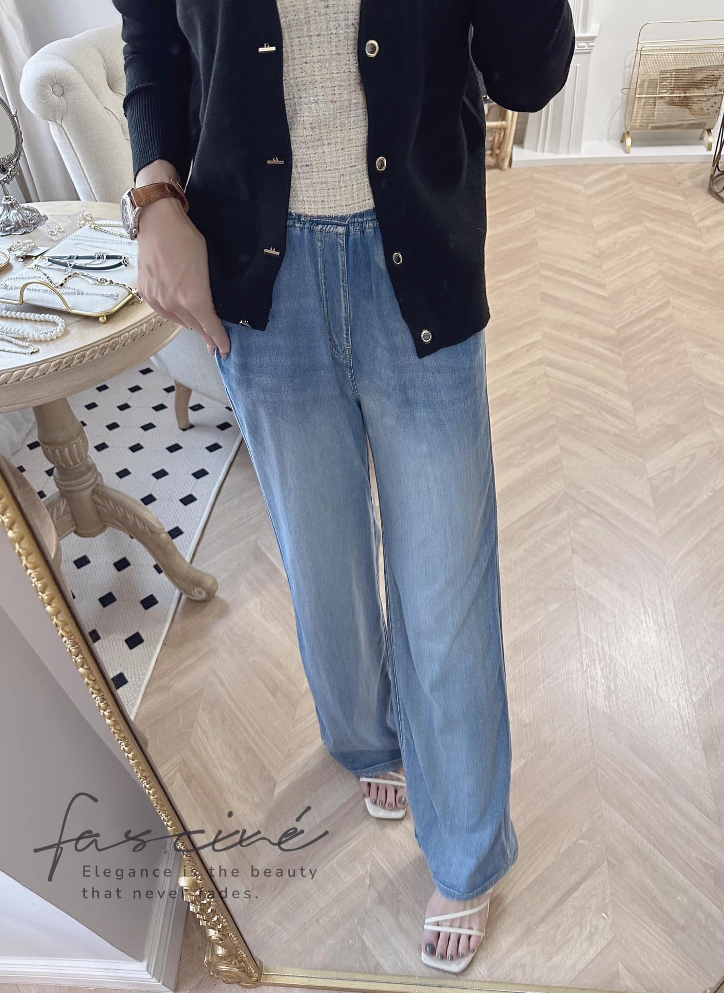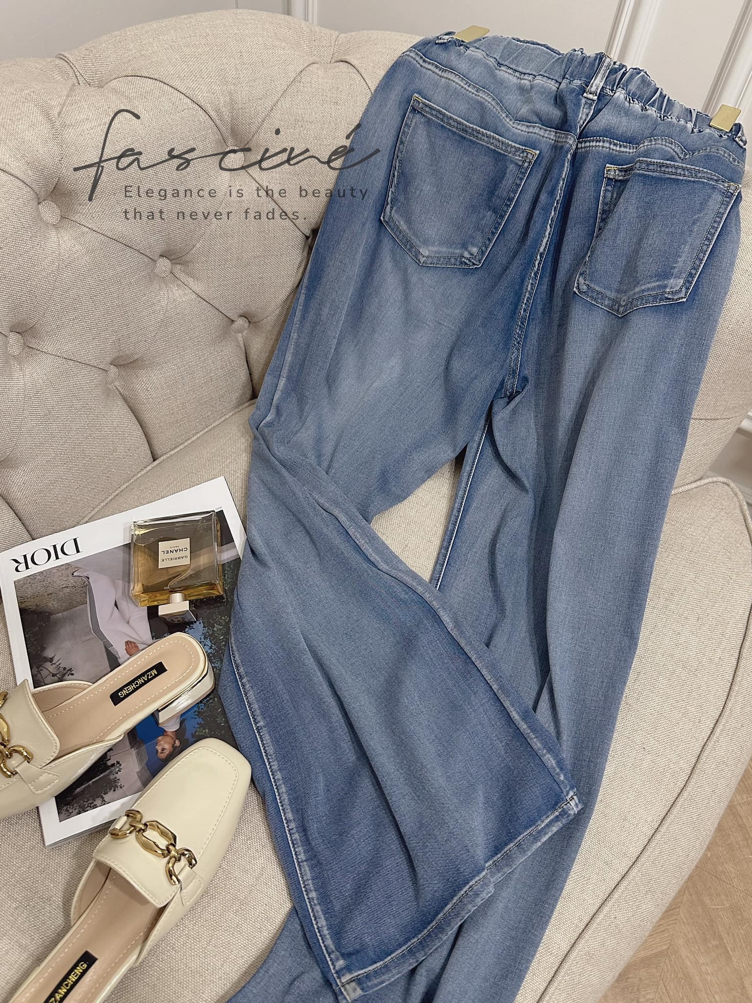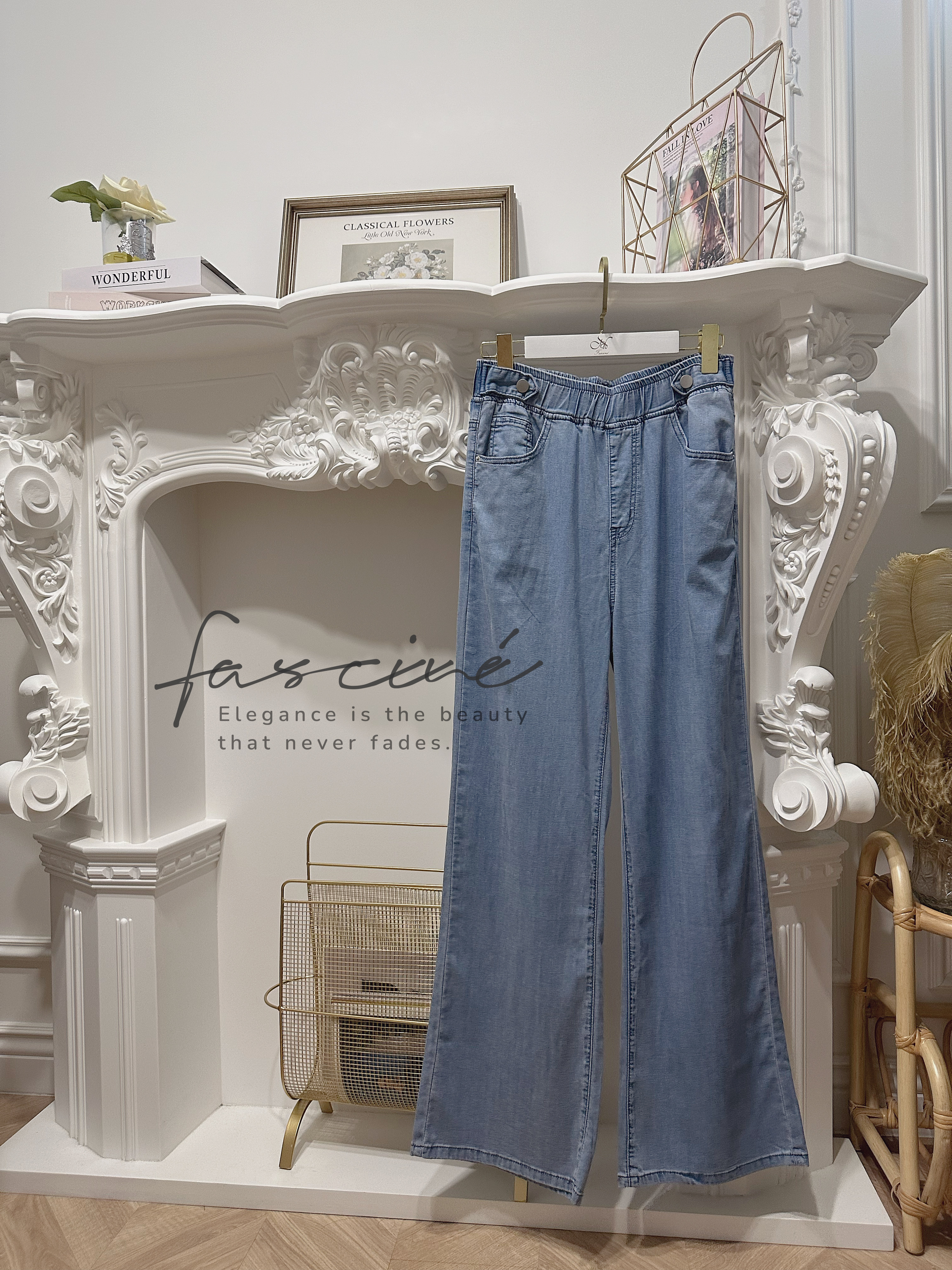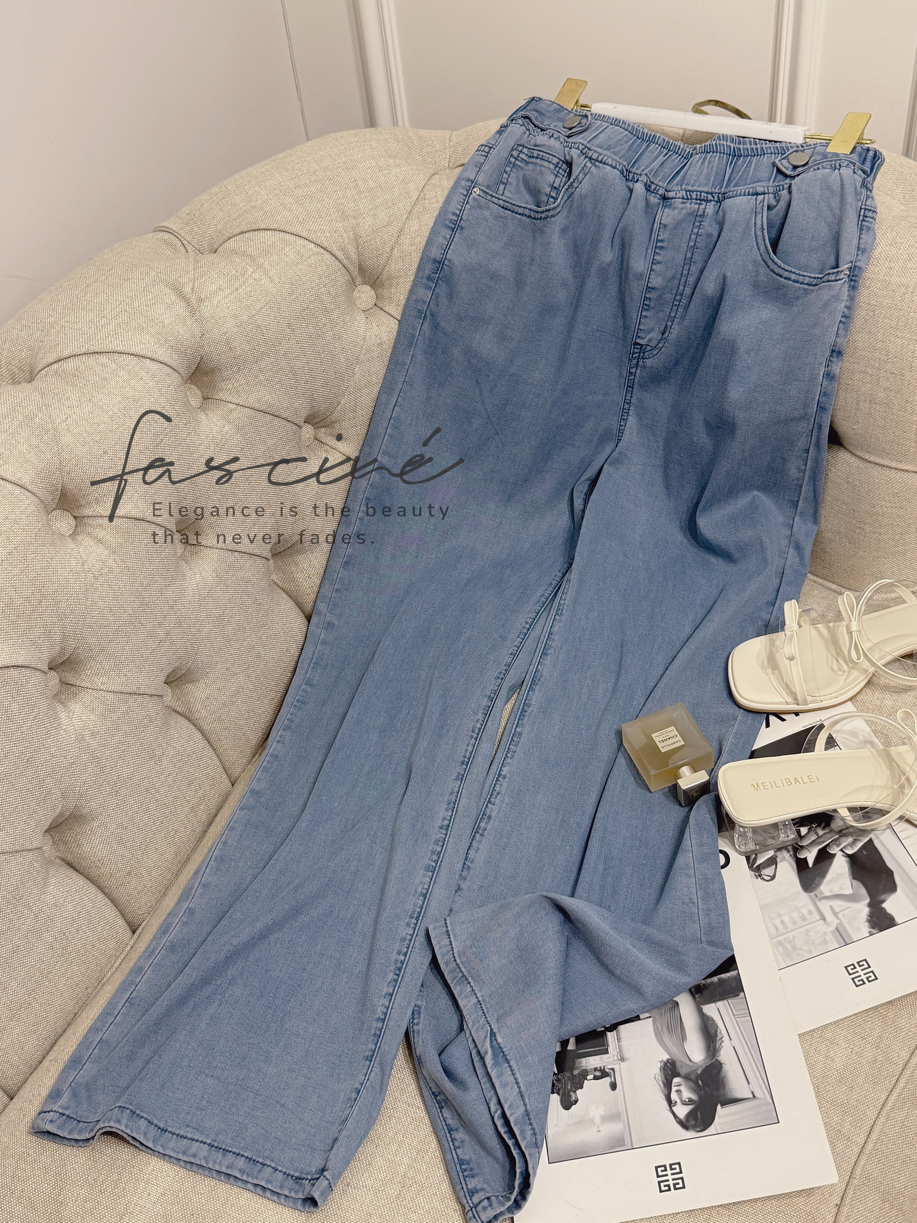 (03J01-25) ⚜️ 時尚休閒中高腰鬆緊軟綿綿直筒闊腿牛仔褲