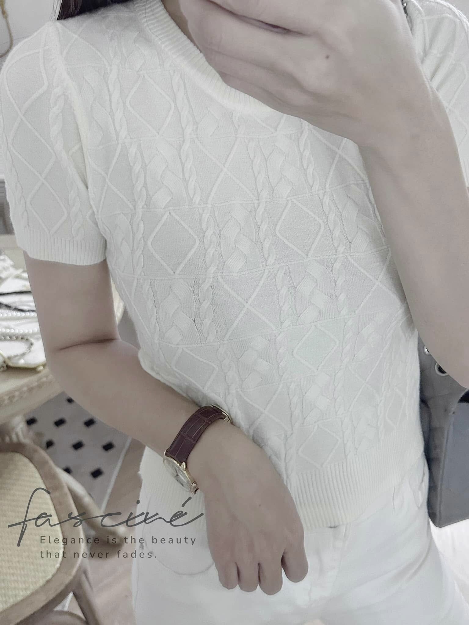 細膩的麻花針織肌理,交織出優雅的小香風韻味,修身剪裁勾勒身形,輕盈冰絲材質,柔軟親膚,如春日微風輕撫肌膚,帶來恰到好處的舒適與質感。 搭配高腰長裙展現法式優雅,或隨性配上牛仔褲,輕鬆演繹時髦日常。