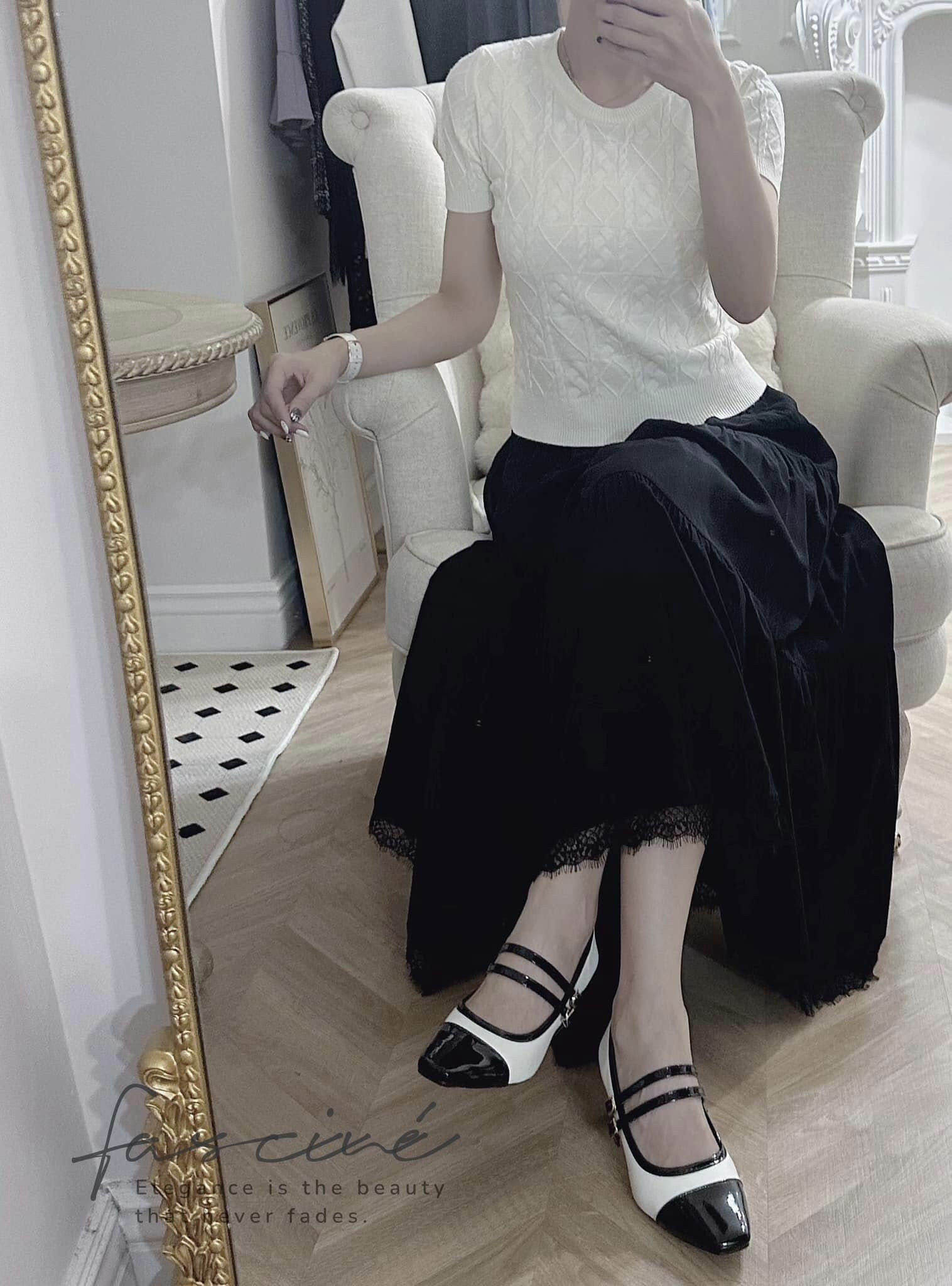 (03T07-25) 法式復古螺紋圓領小香風麻花薄款冰絲收腰上衣