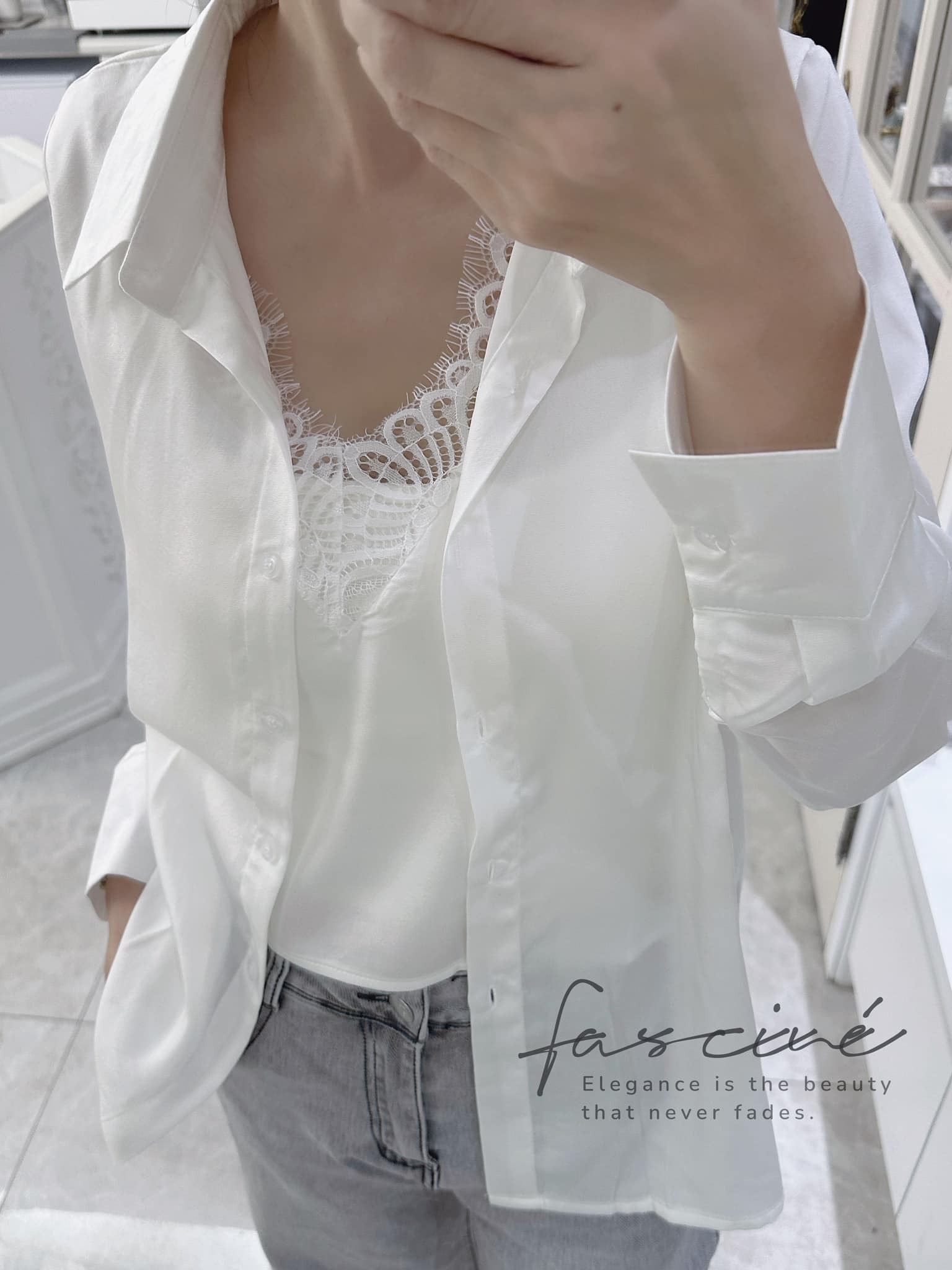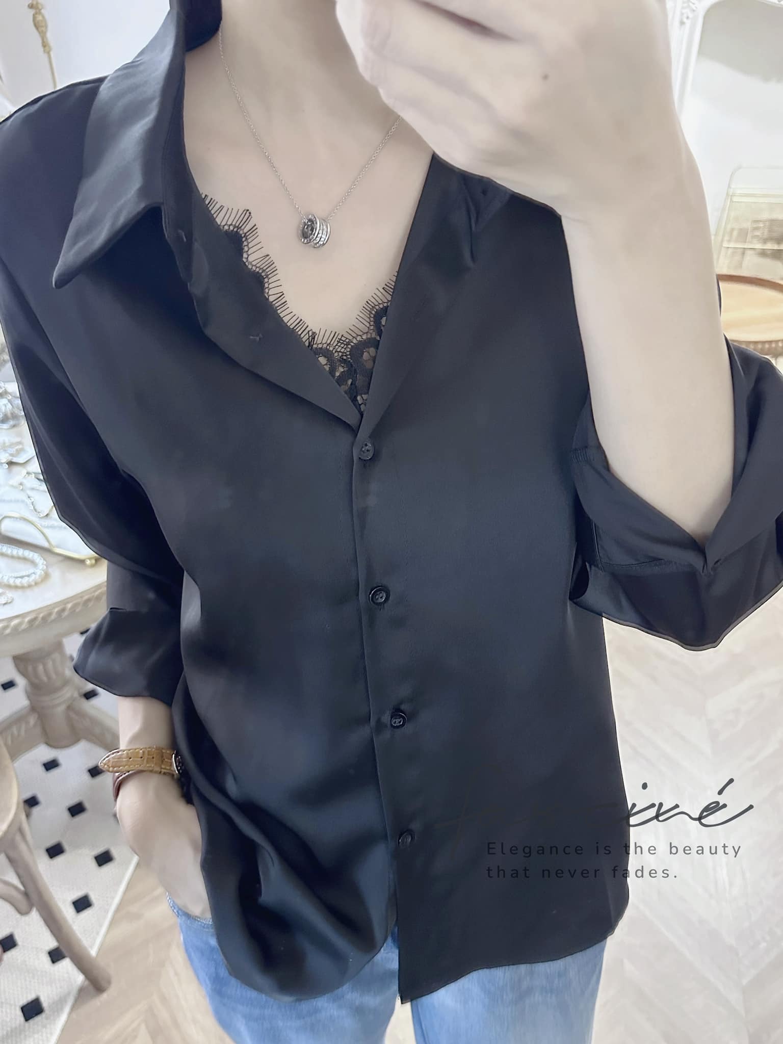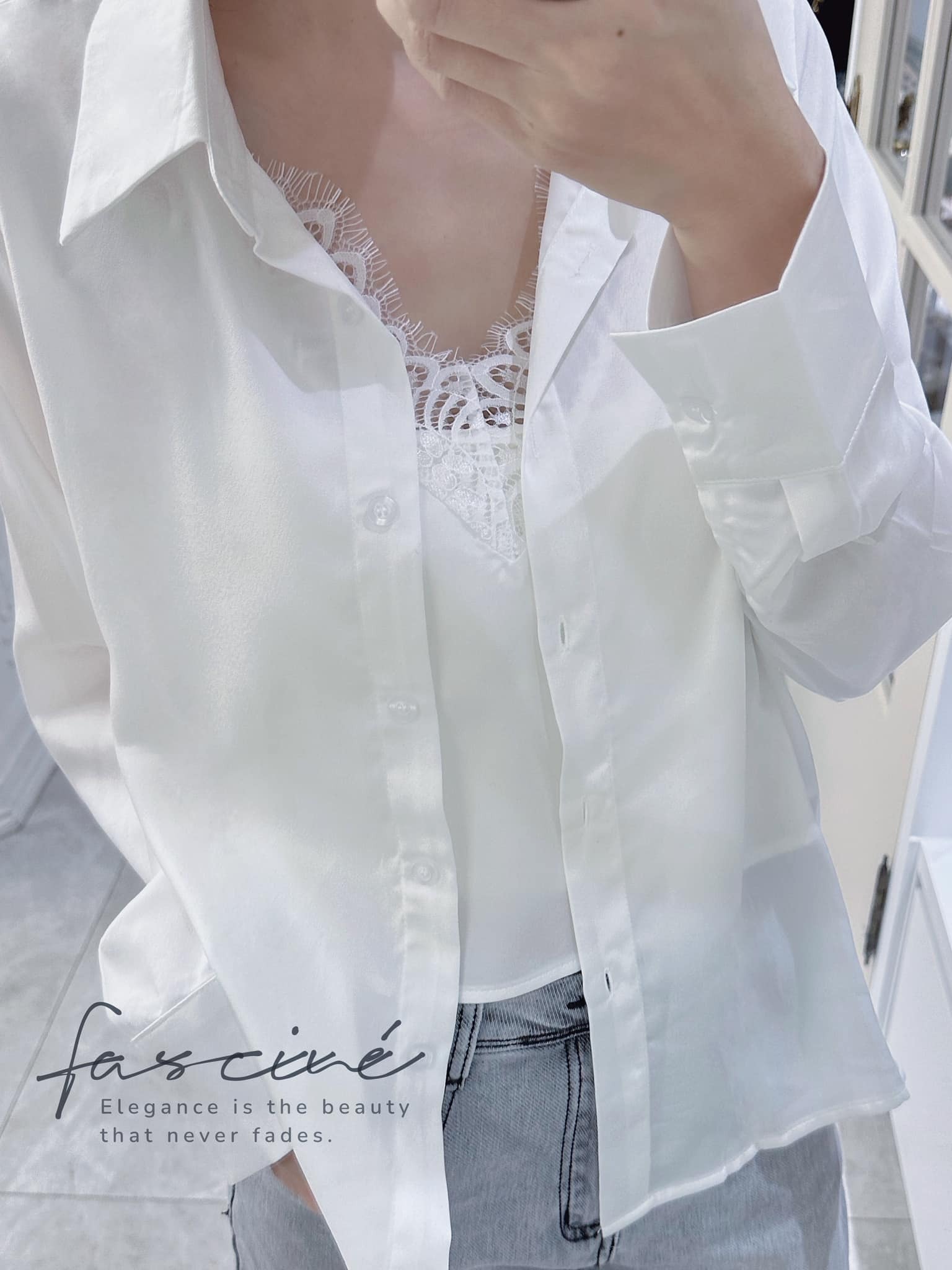 這款襯衫的假兩件設計,將細緻蕾絲拼接融入柔軟襯衫,優雅與質感並存,無論單穿或外搭都能展現不費力的時髦感!這款襯衫無論是日常、上班、約會都能輕鬆駕馭,一件搞定所有場合!
