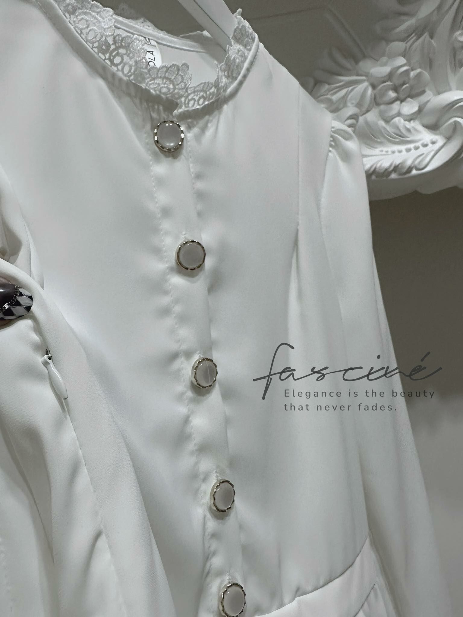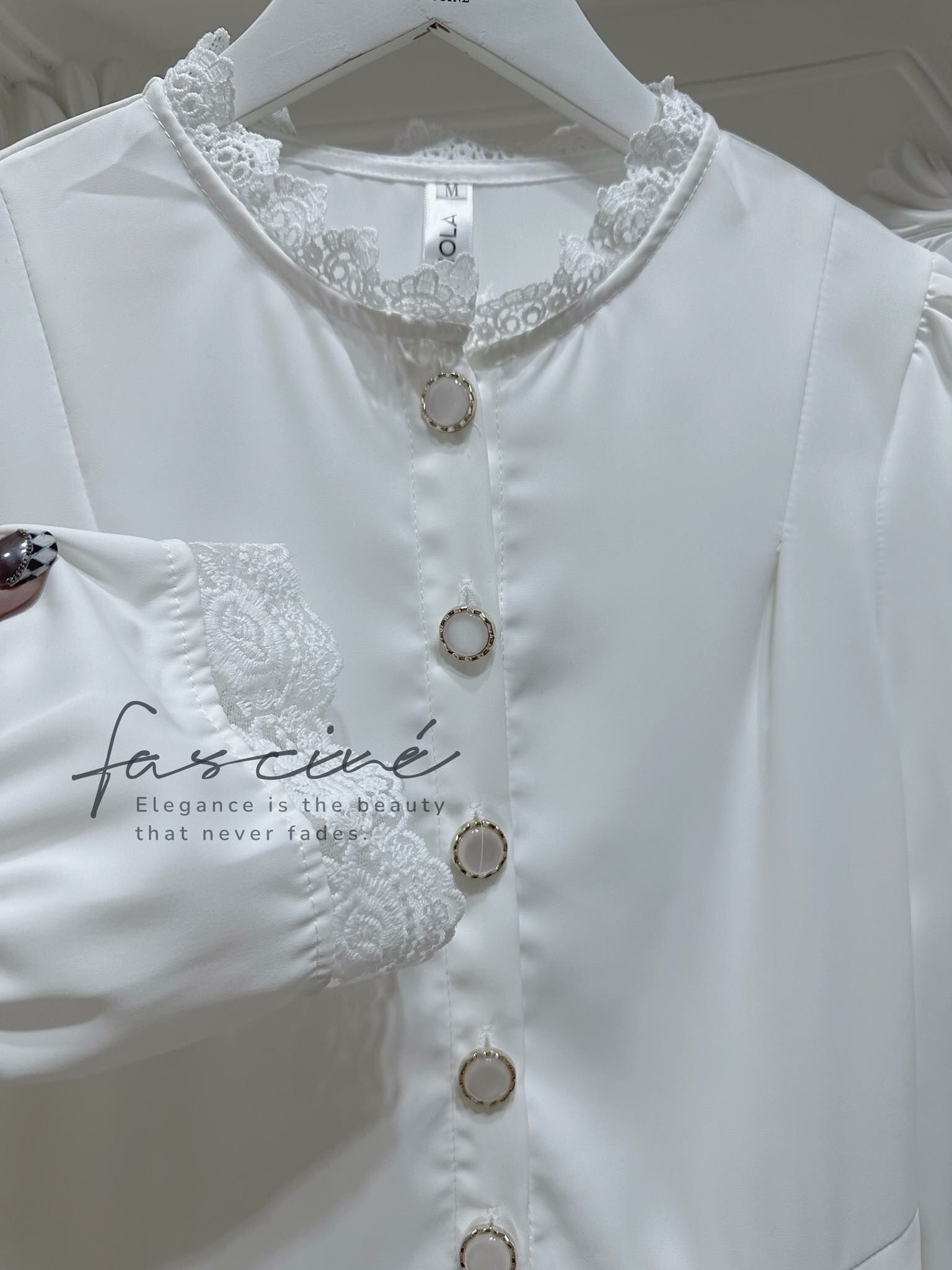 這款上衣充滿法式優雅氛圍,溫柔蕾絲花邊點綴,細緻釦子設計,完美勾勒身形比例!收腰版型完美修飾身形,展現纖細柔美的線條,讓妳舉手投足間都散發高級感,輕鬆打造優雅氣質穿搭✨無論是約會、下午茶時光還是拍照,都是絕美單品💖