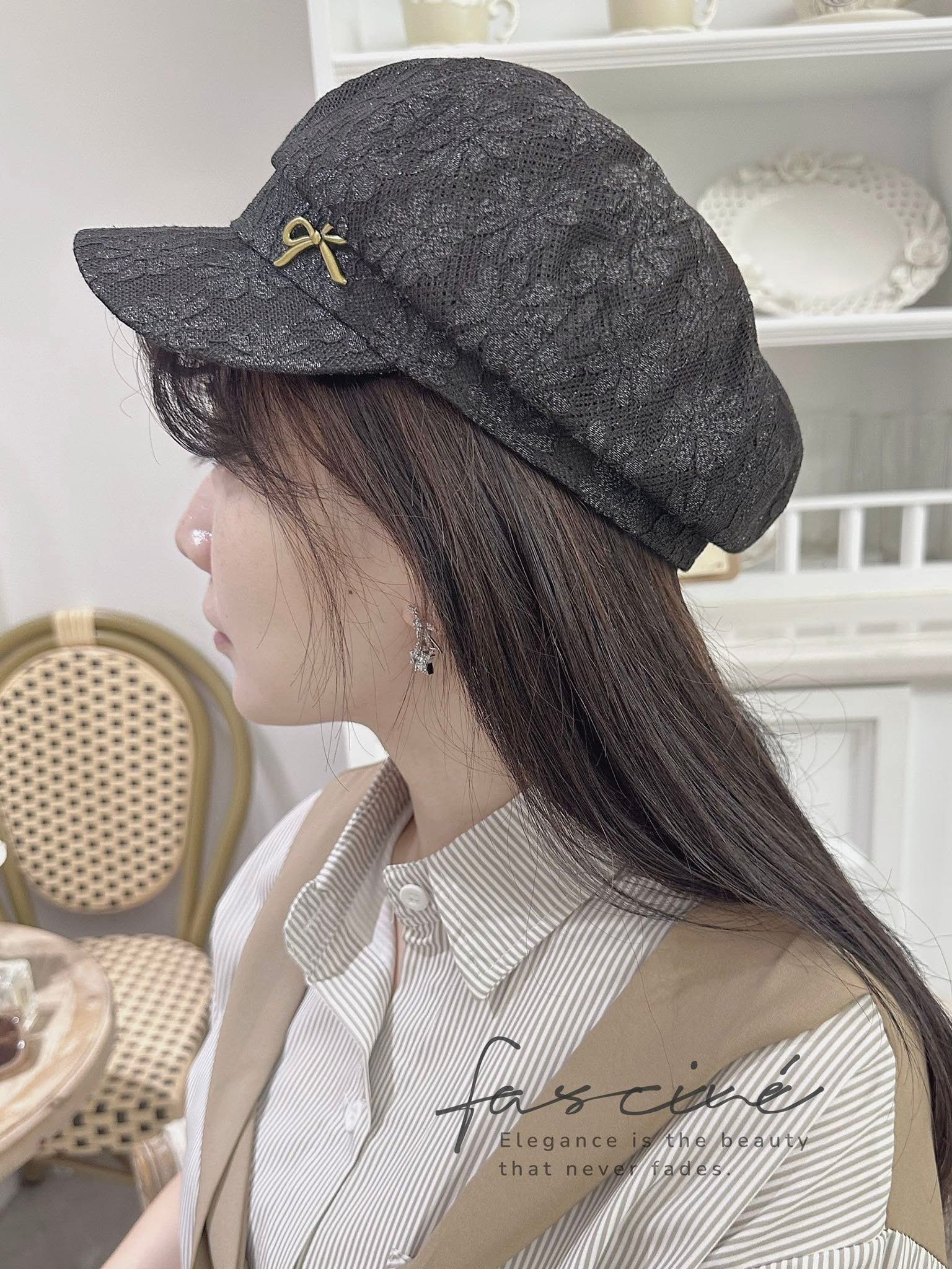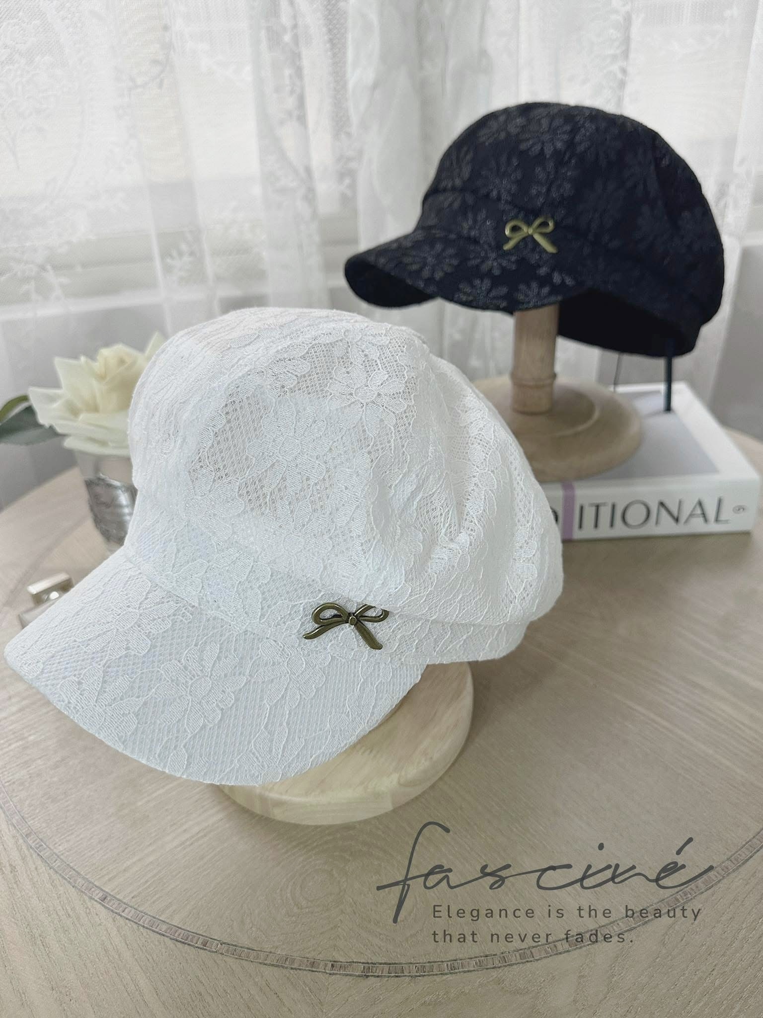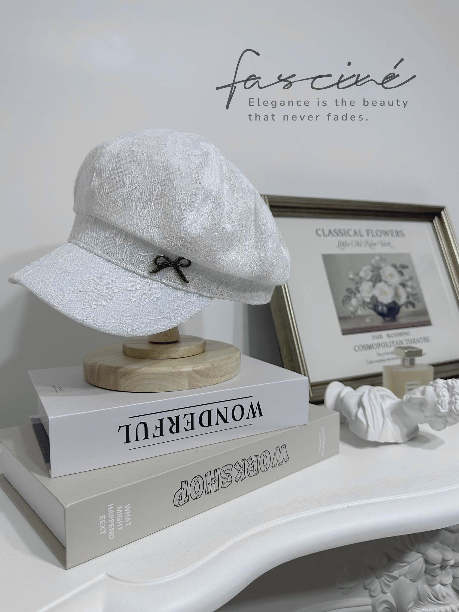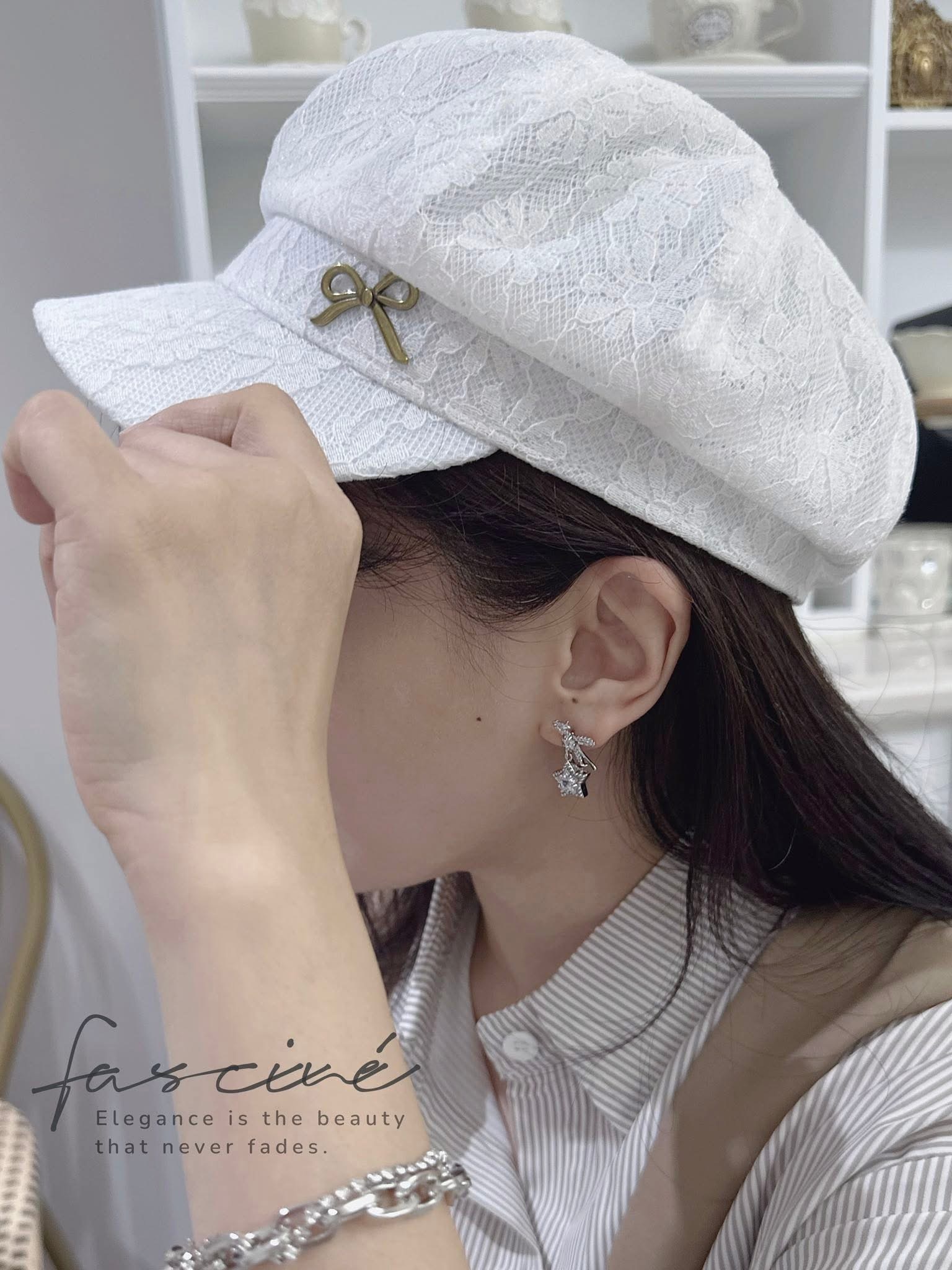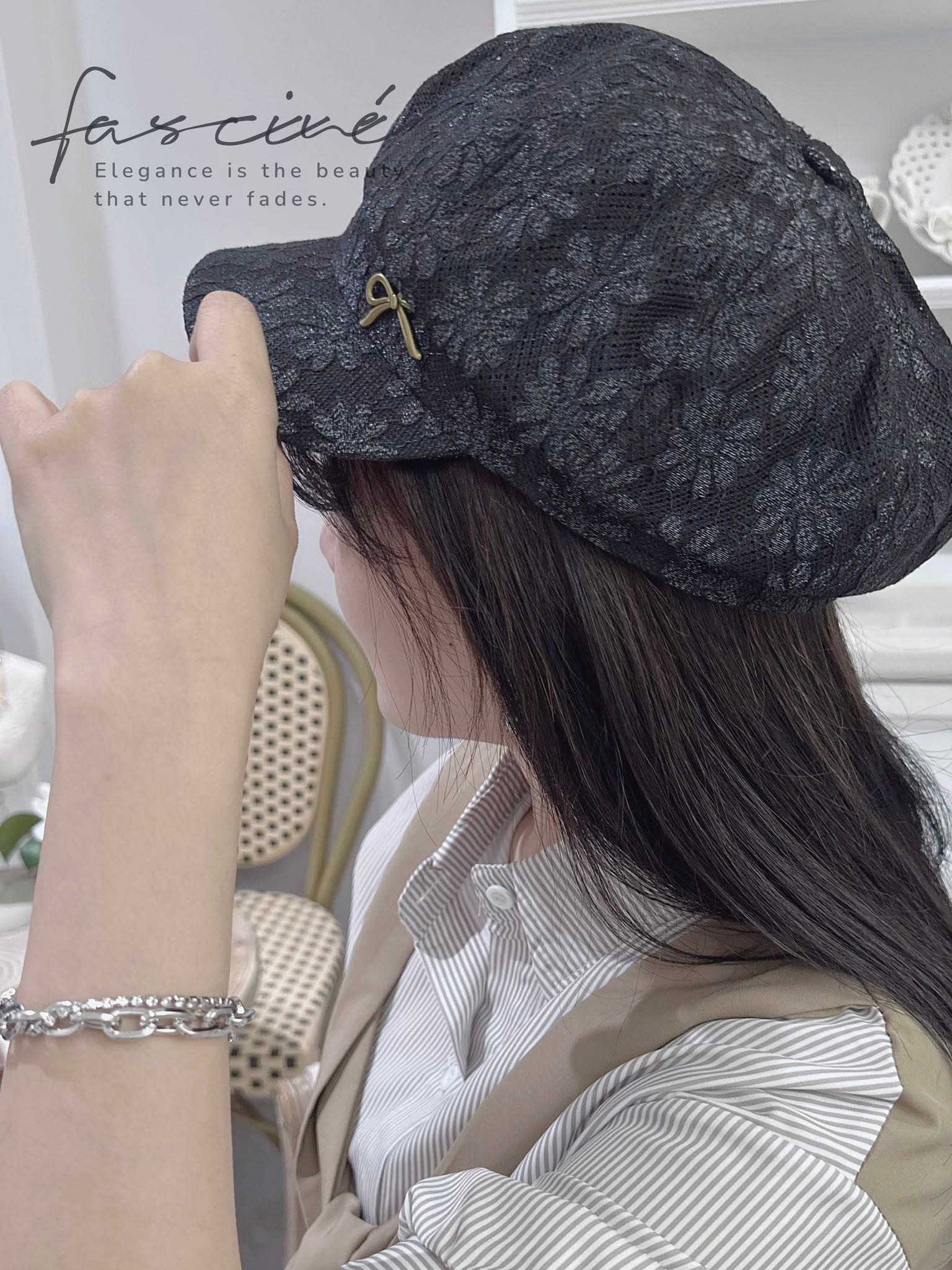 浪漫蕾絲與俐落帽型的結合,打造優雅又防曬的夏日必備單品。小金屬蝴蝶結點綴細節,低調中帶點精緻女人味。無論是日常穿搭或假日郊遊,都能替整體造型增添質感。結合遮陽功能與浪漫外型,一頂自帶氣質濾鏡的蕾絲帽。