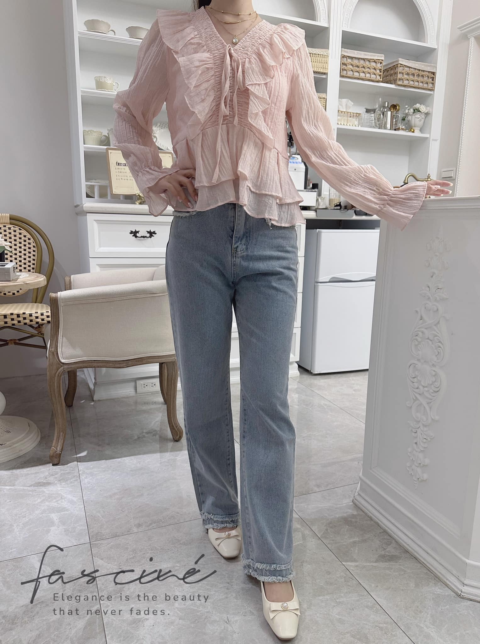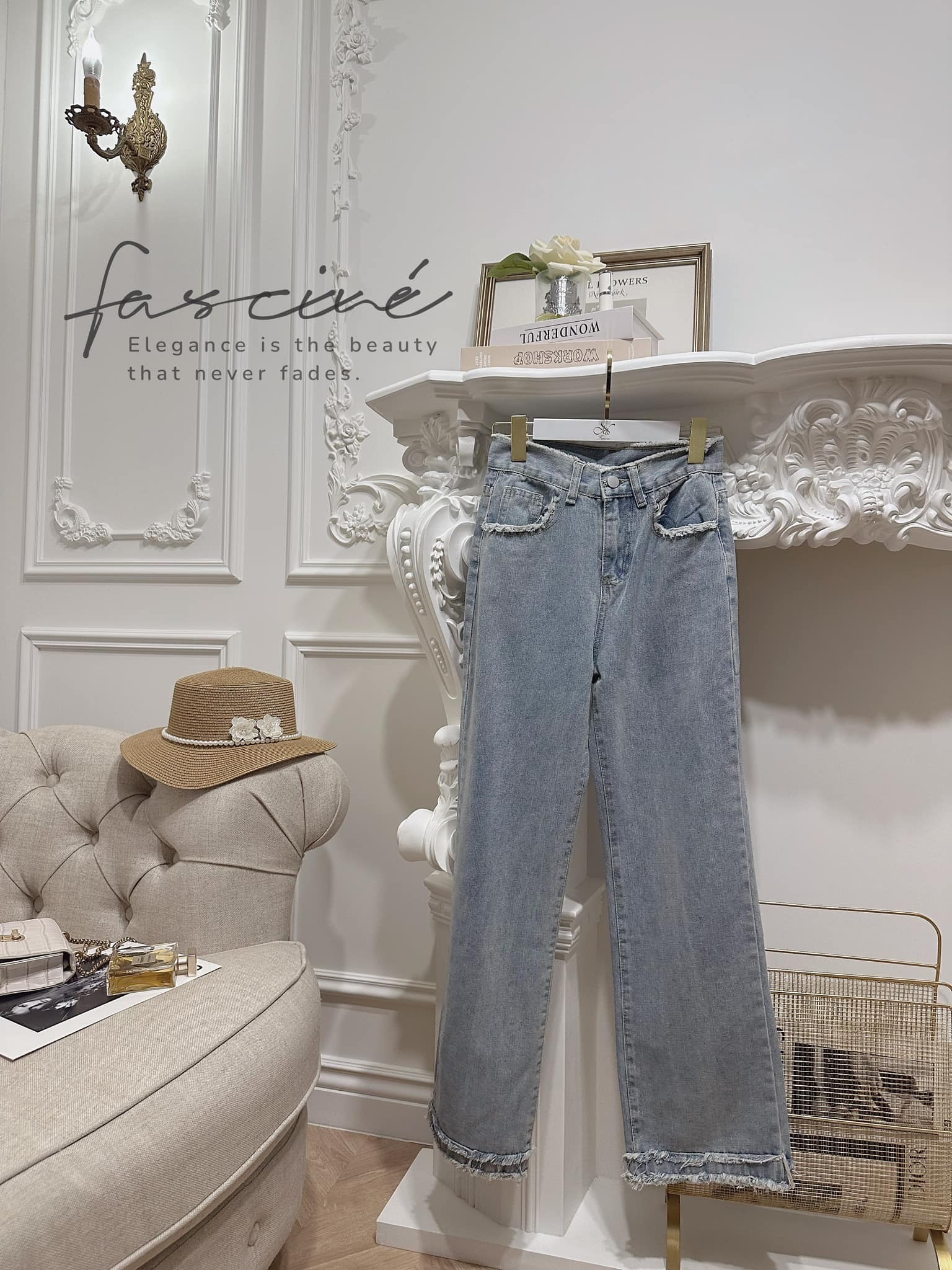時尚休閒,高腰抽鬚包邊,牛仔直筒褲除了百搭外,選對褲型還能修飾腿型,這件時髦又顯瘦,版型讓整體比例更為修長,想修飾肉肉下身的女子,都能運用這款版型的牛仔褲來穿出高挑身形,不論是纖細女孩或棉花糖女孩是最顯瘦的牛仔褲,不會顯腿粗,可搭配罩衫、棉T、襯衫或針織上衣。好看的牛仔褲作為永不過時的經典單品。