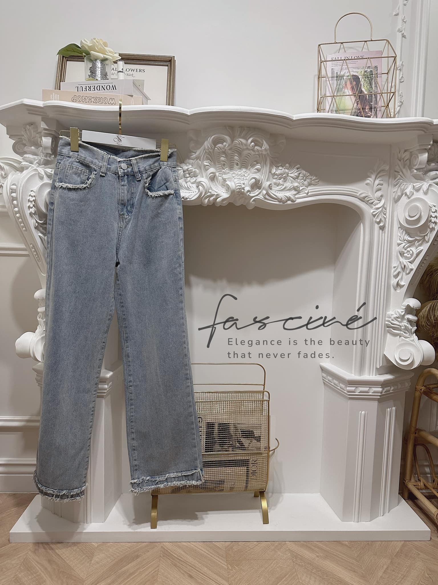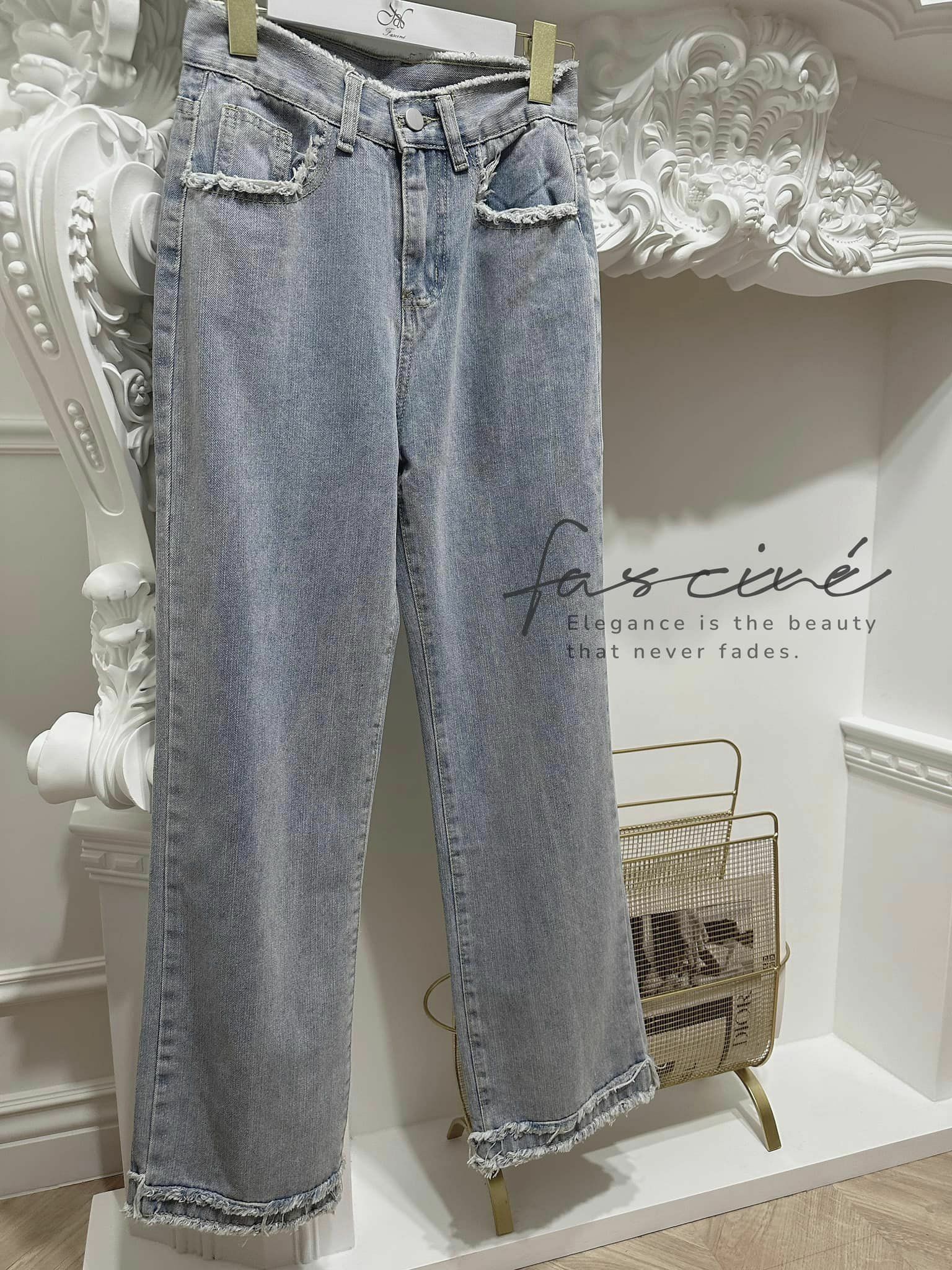 (04J03-24) ⚜️ 時尚休閒高腰抽鬚包邊直筒闊腿牛仔褲