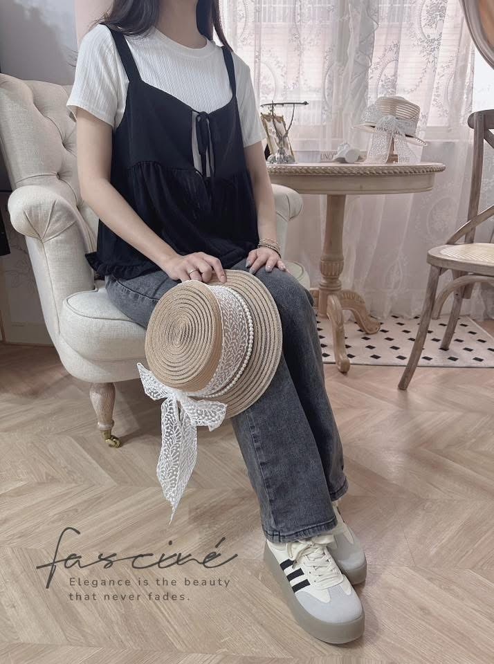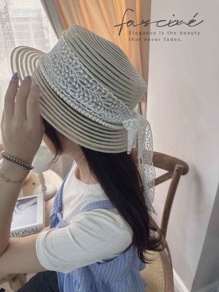 在午後陽光下,戴上這頂充滿浪漫氛圍的草帽,彷彿走進了南法的慵懶夏日。細緻的網紗蕾絲飄帶,隨風輕輕擺動,優雅又不失俏皮感。