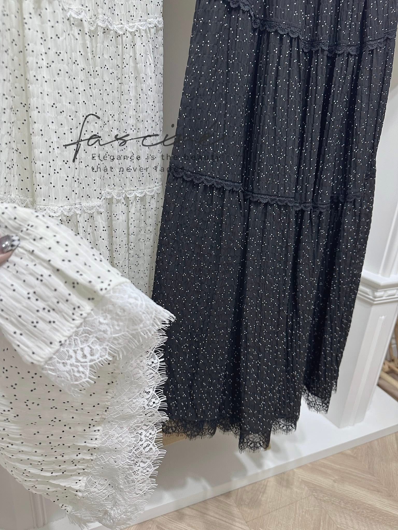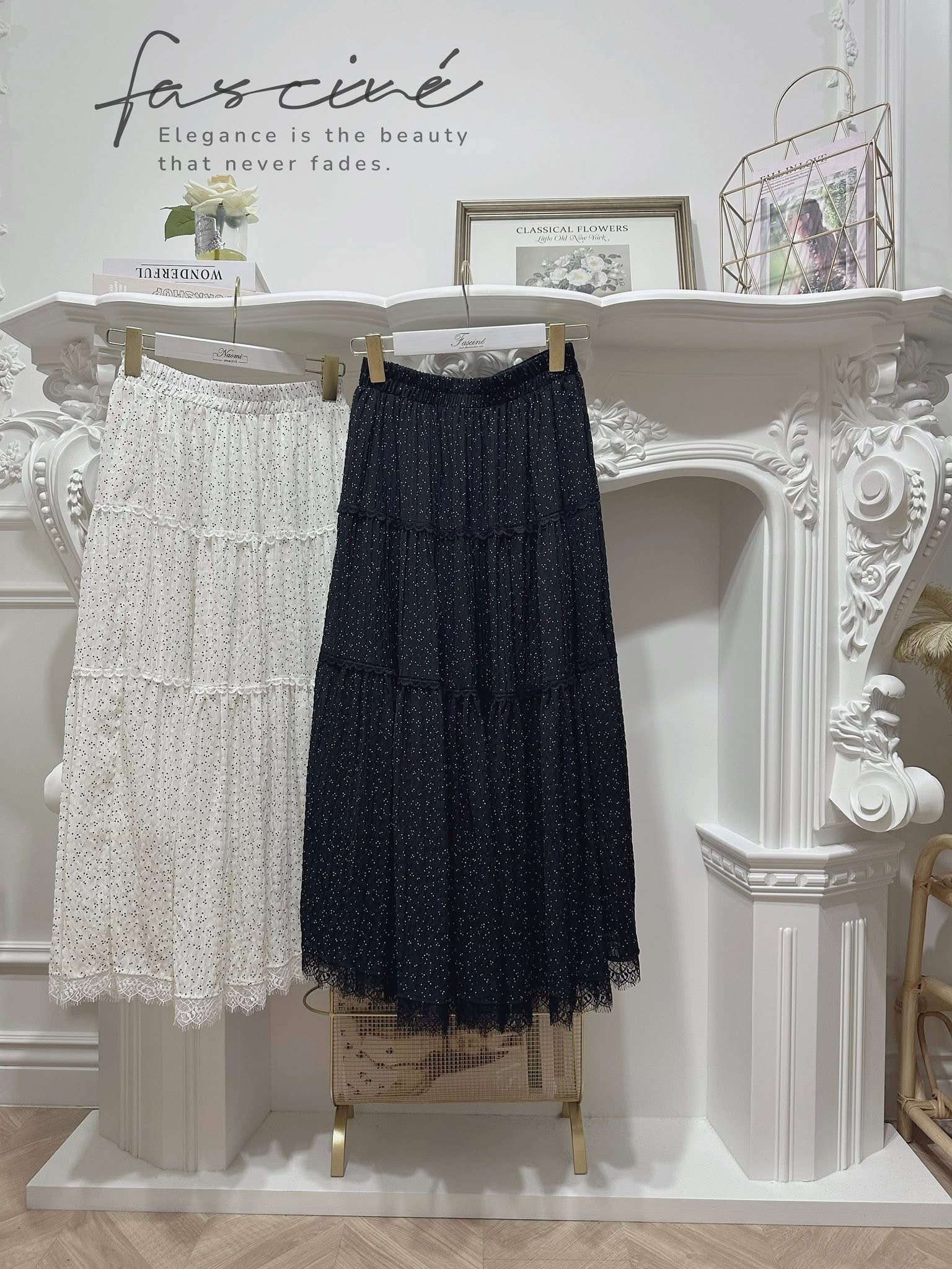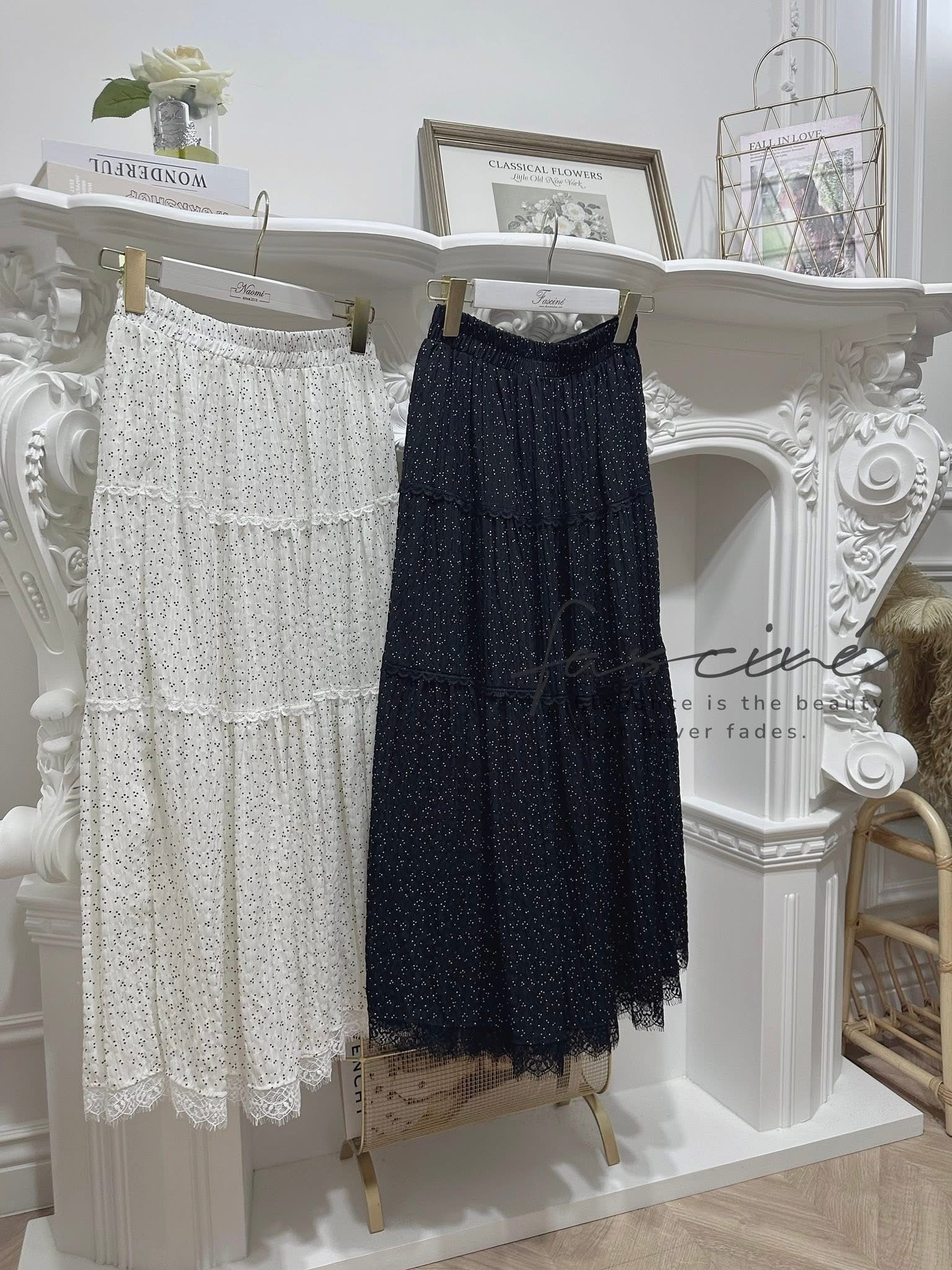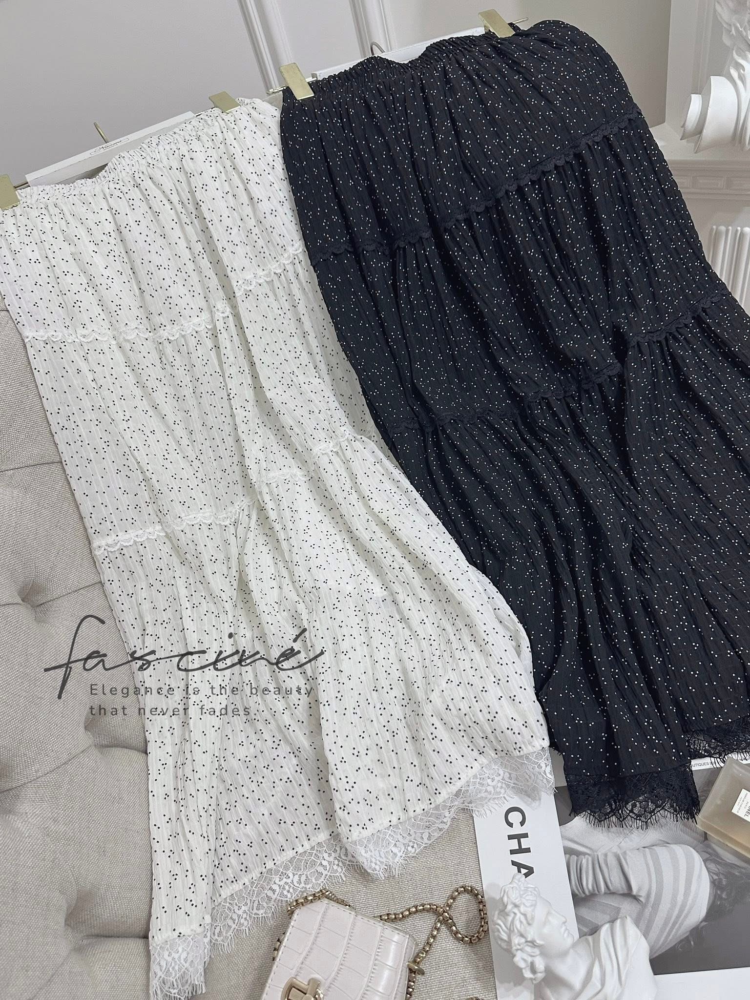 (04S03-25) $590 法式溫柔風蕾絲拼接《波點木耳》邊寬鬆半身裙