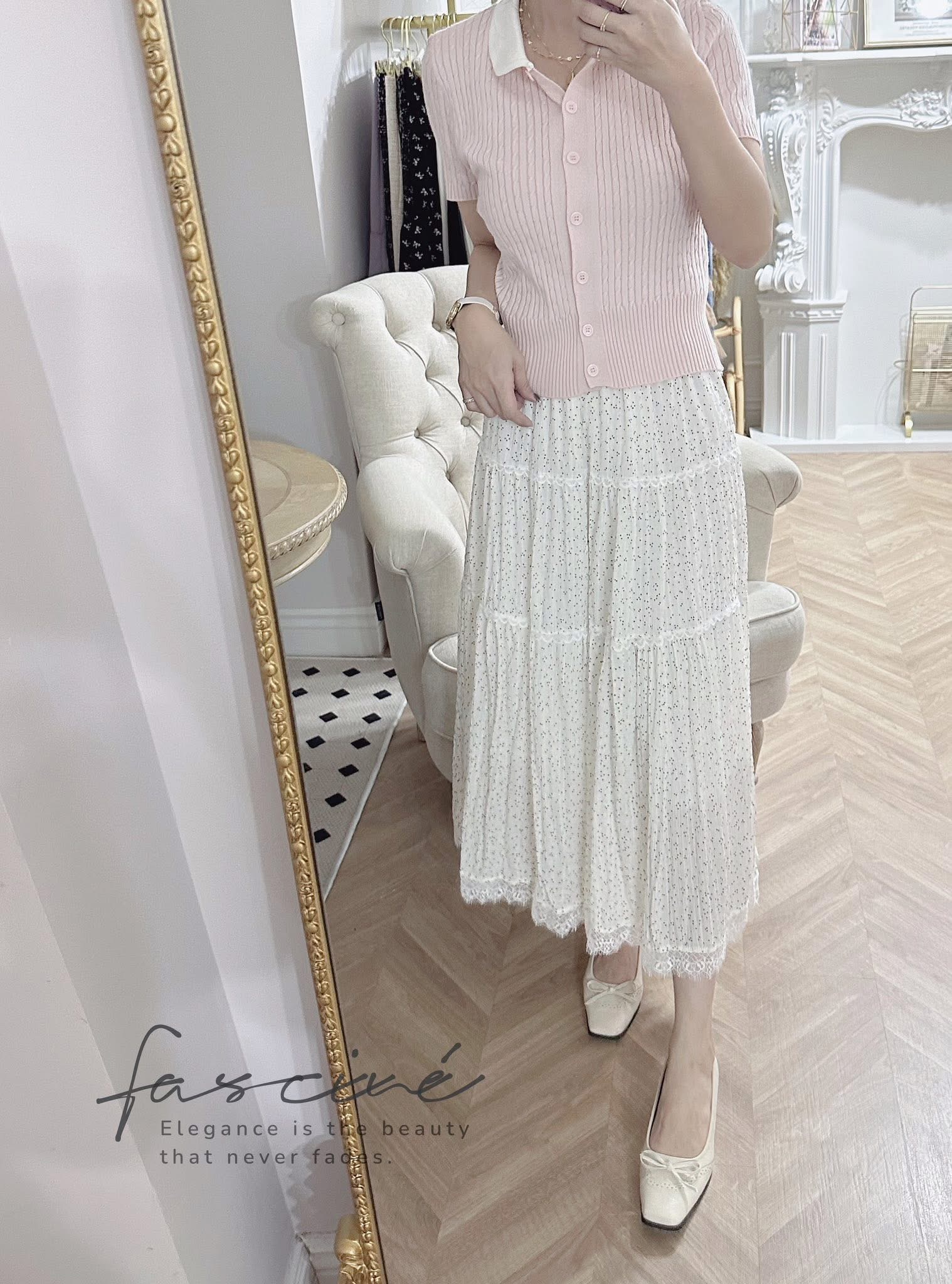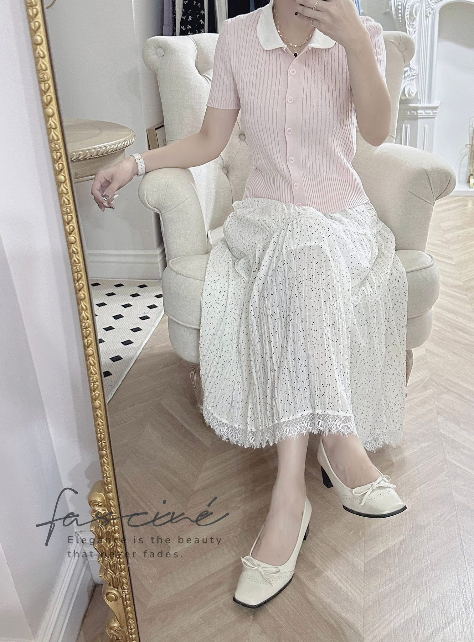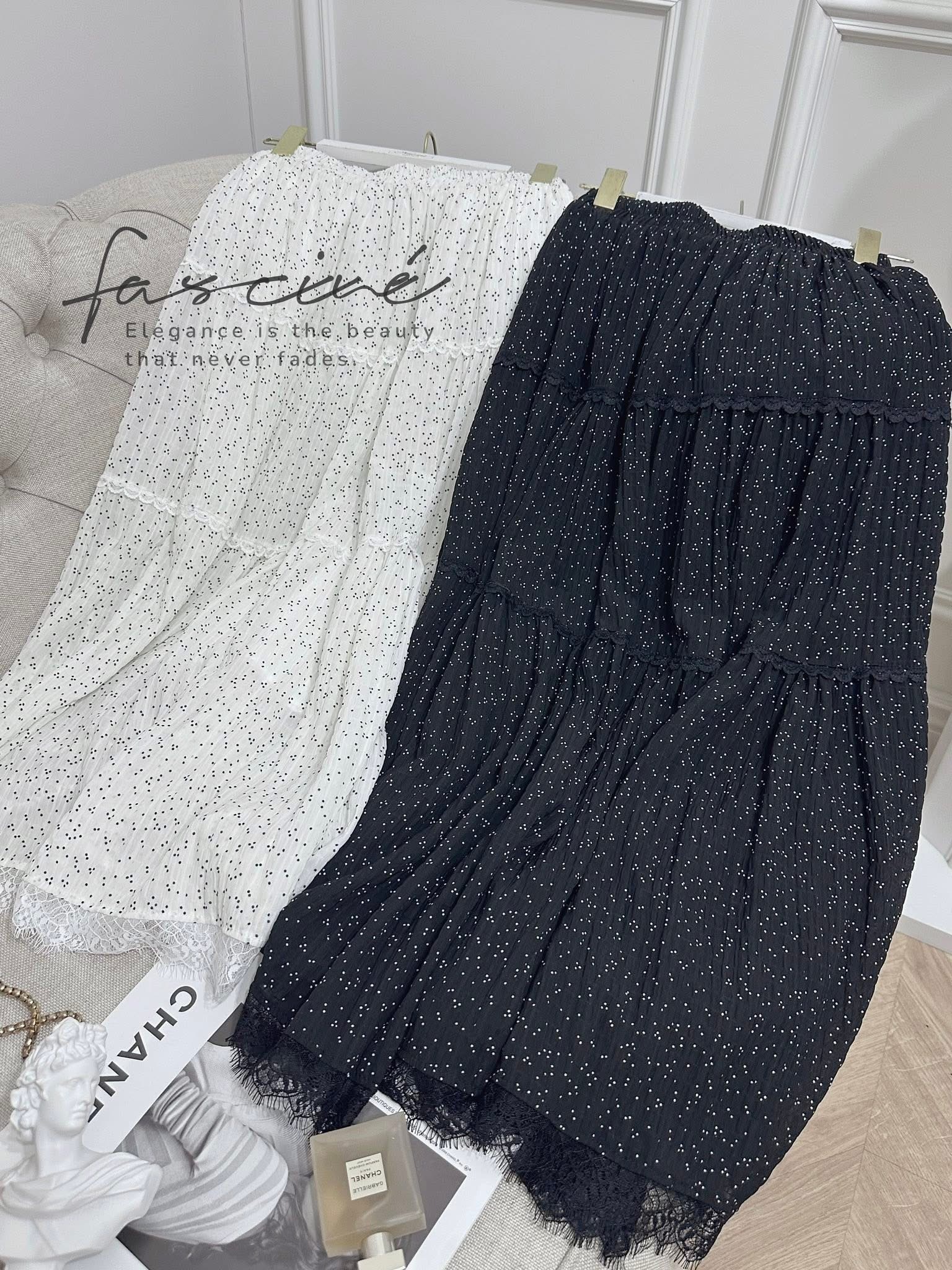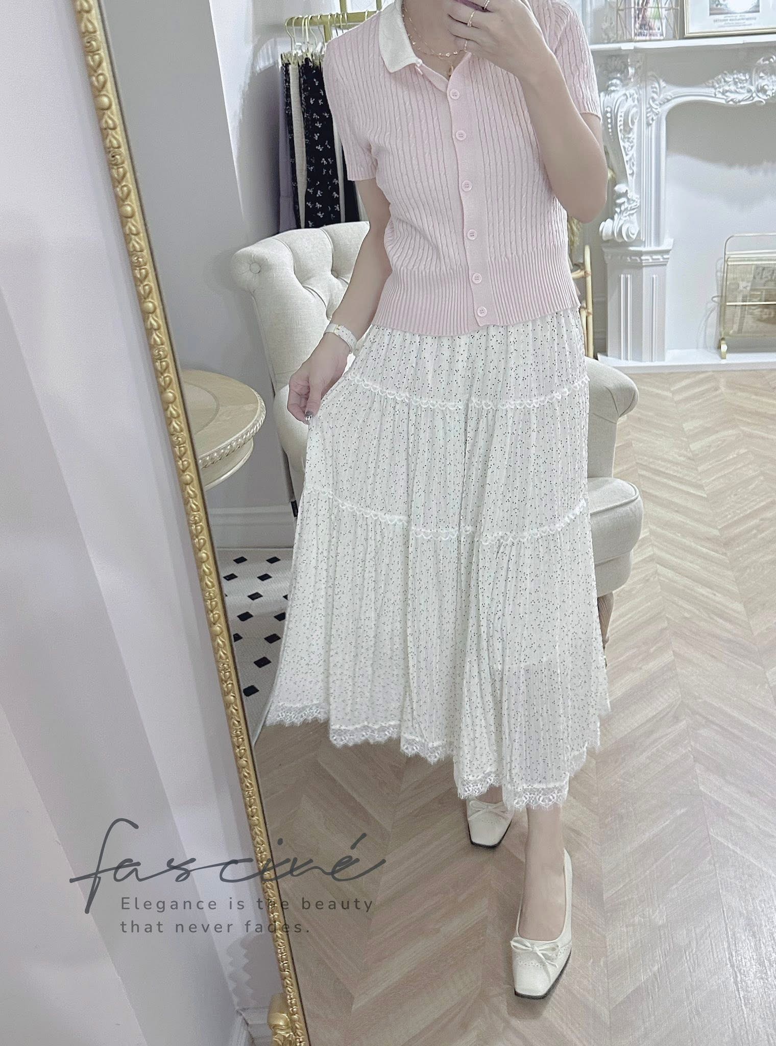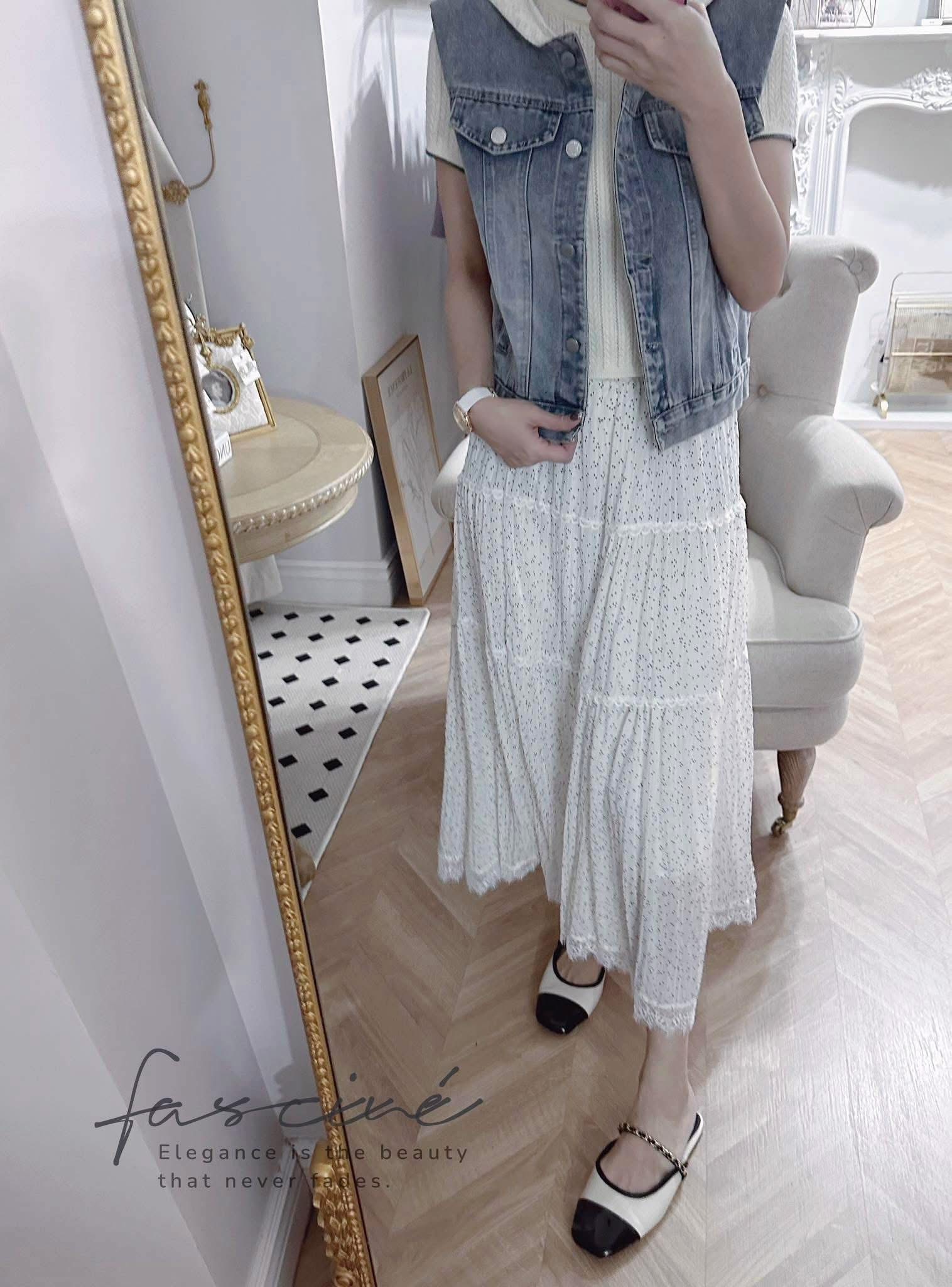 (04S03-25) $590 法式溫柔風蕾絲拼接《波點木耳》邊寬鬆半身裙