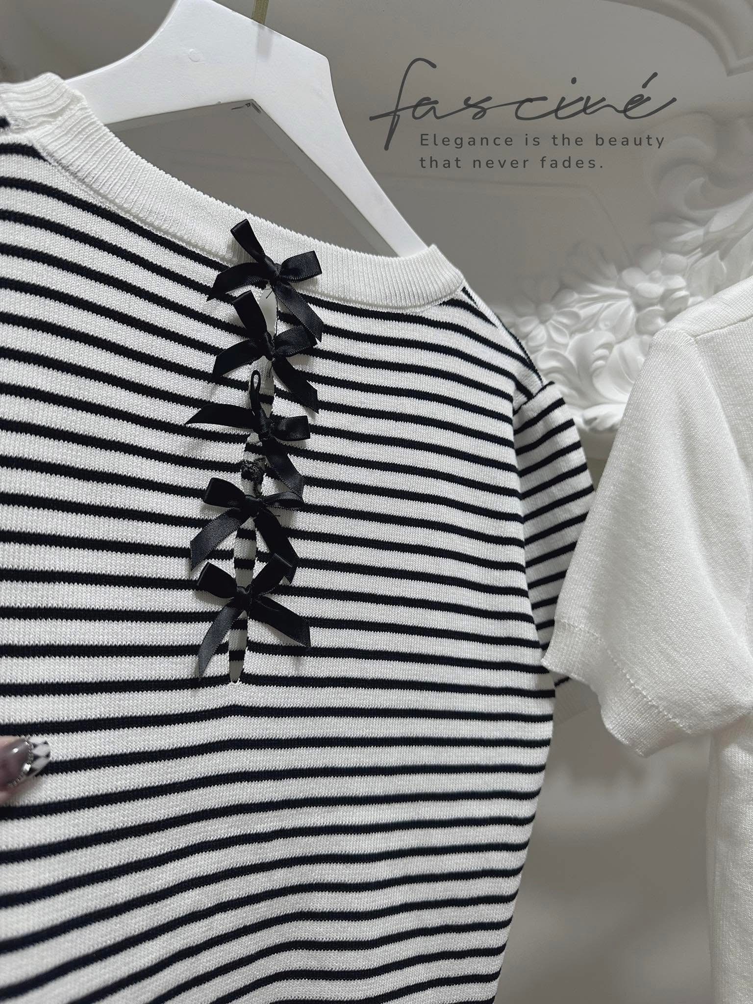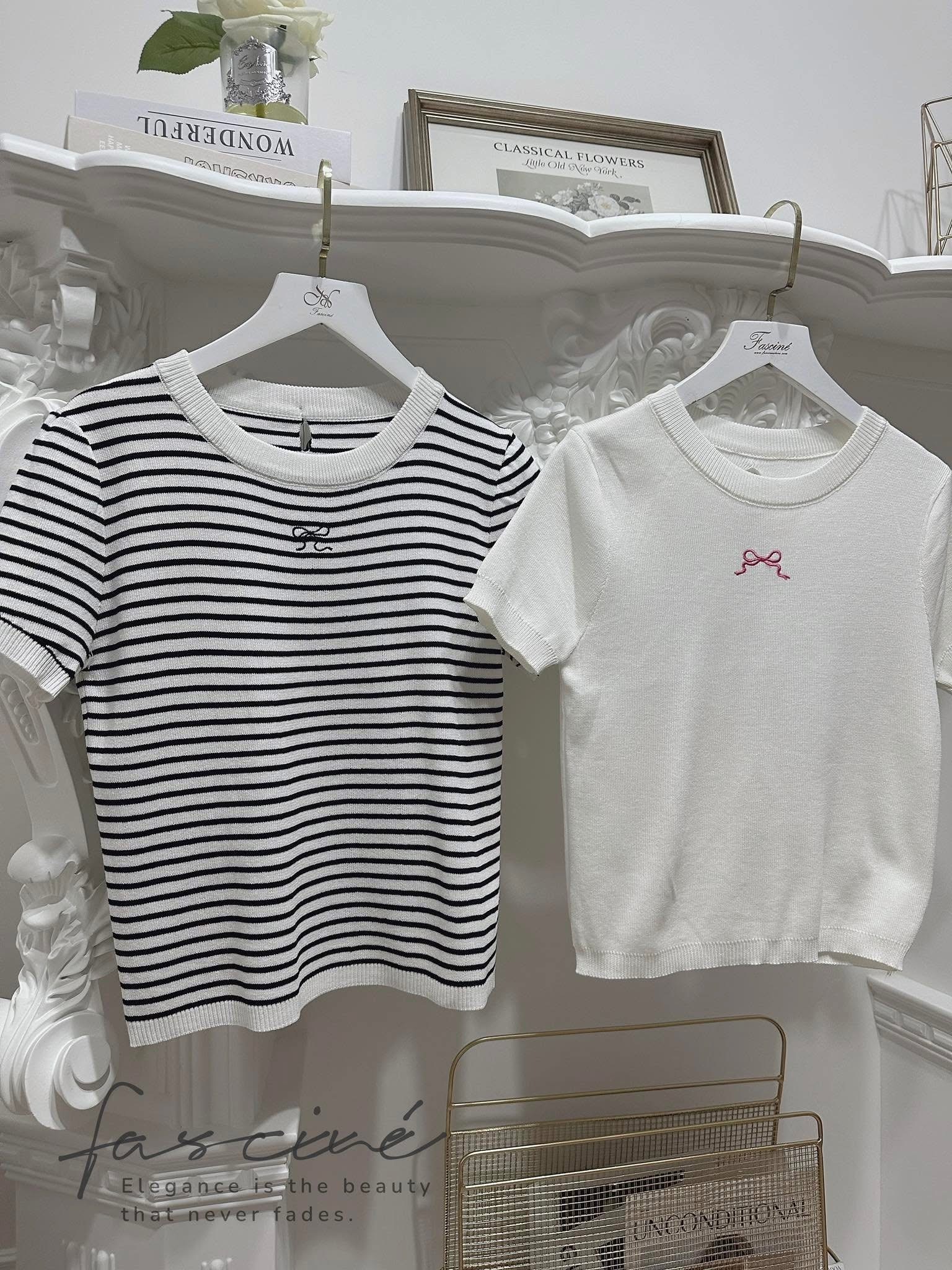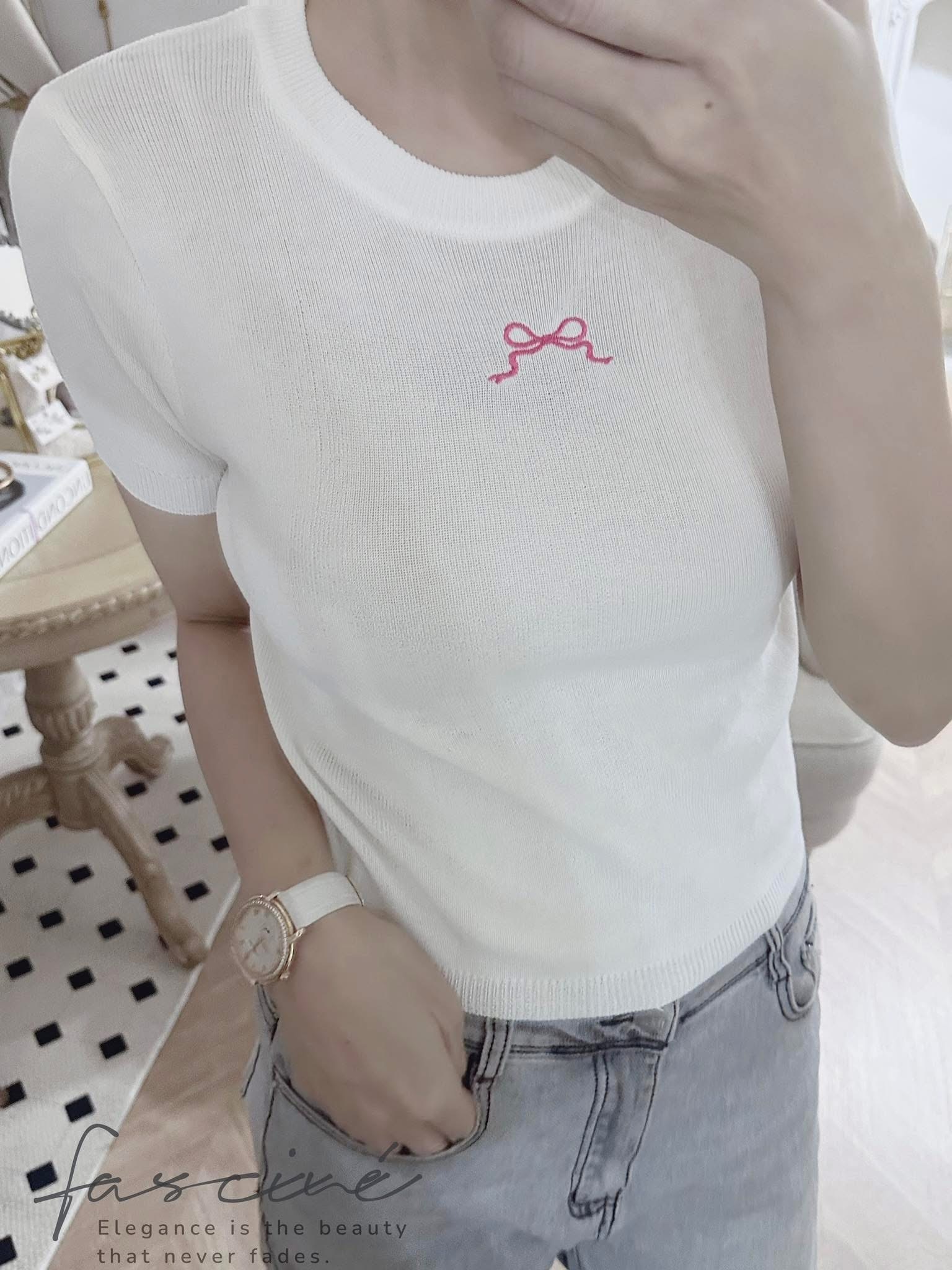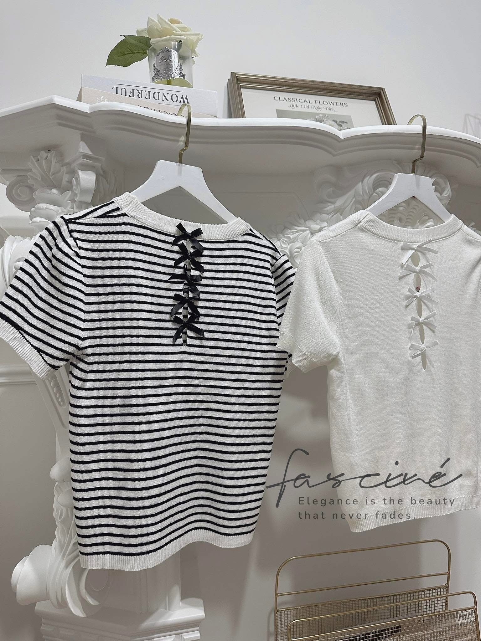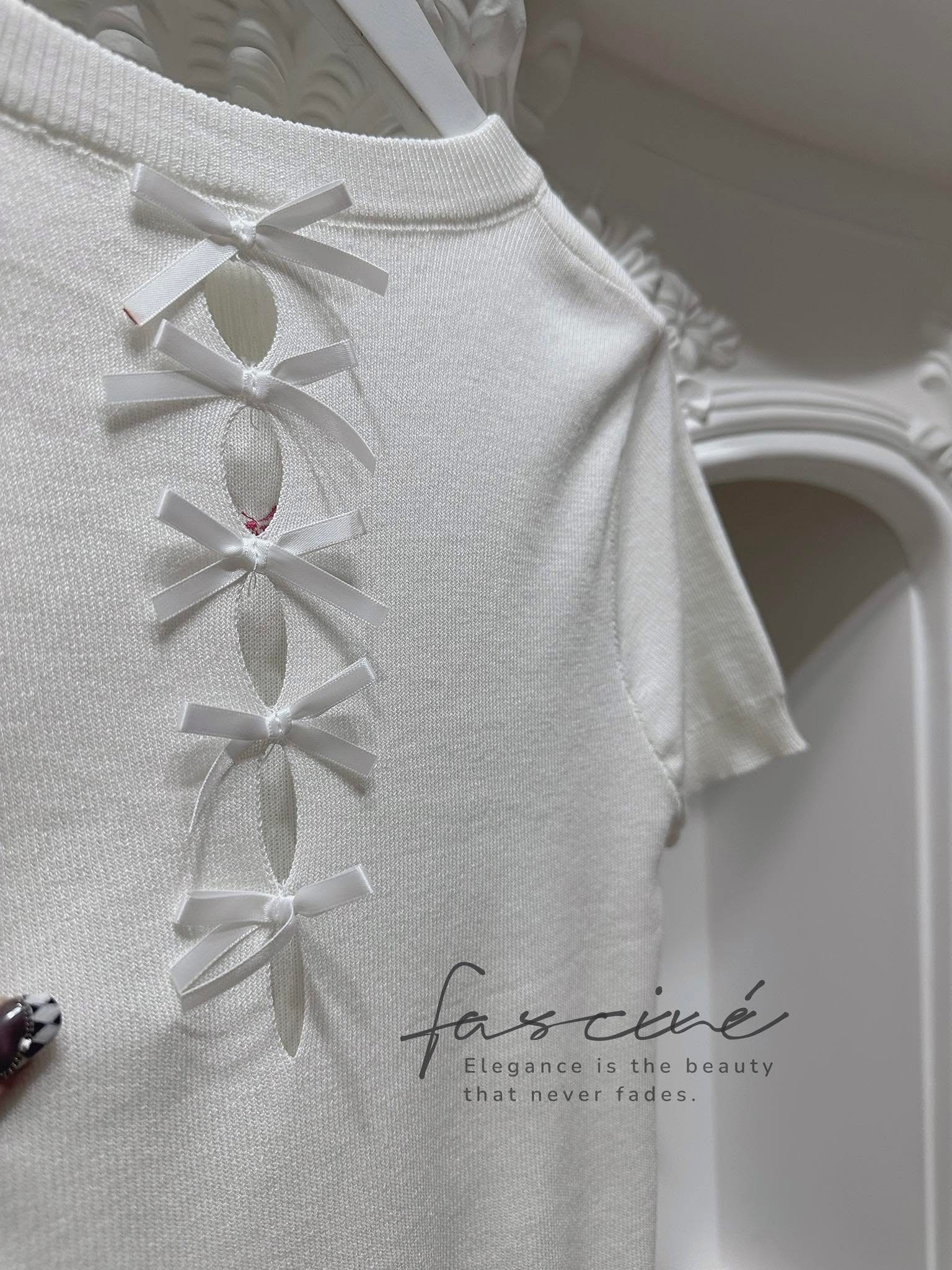 現貨!!!(04T02-25) 法式設計感修身蝴蝶結刺繡後背蝴蝶結針織上衣