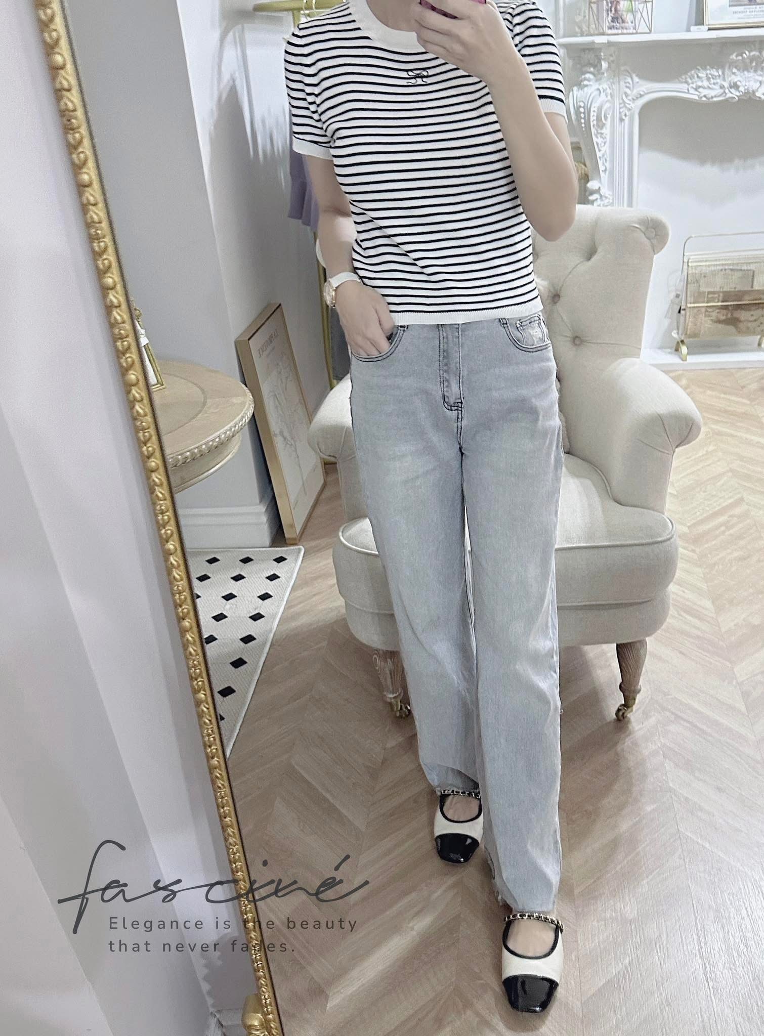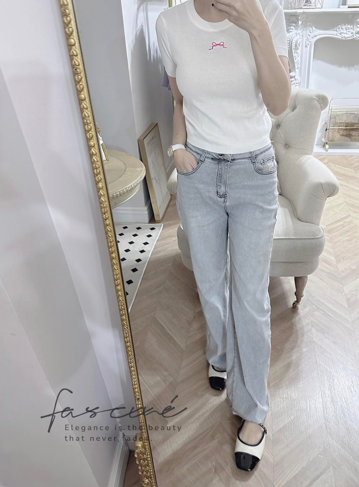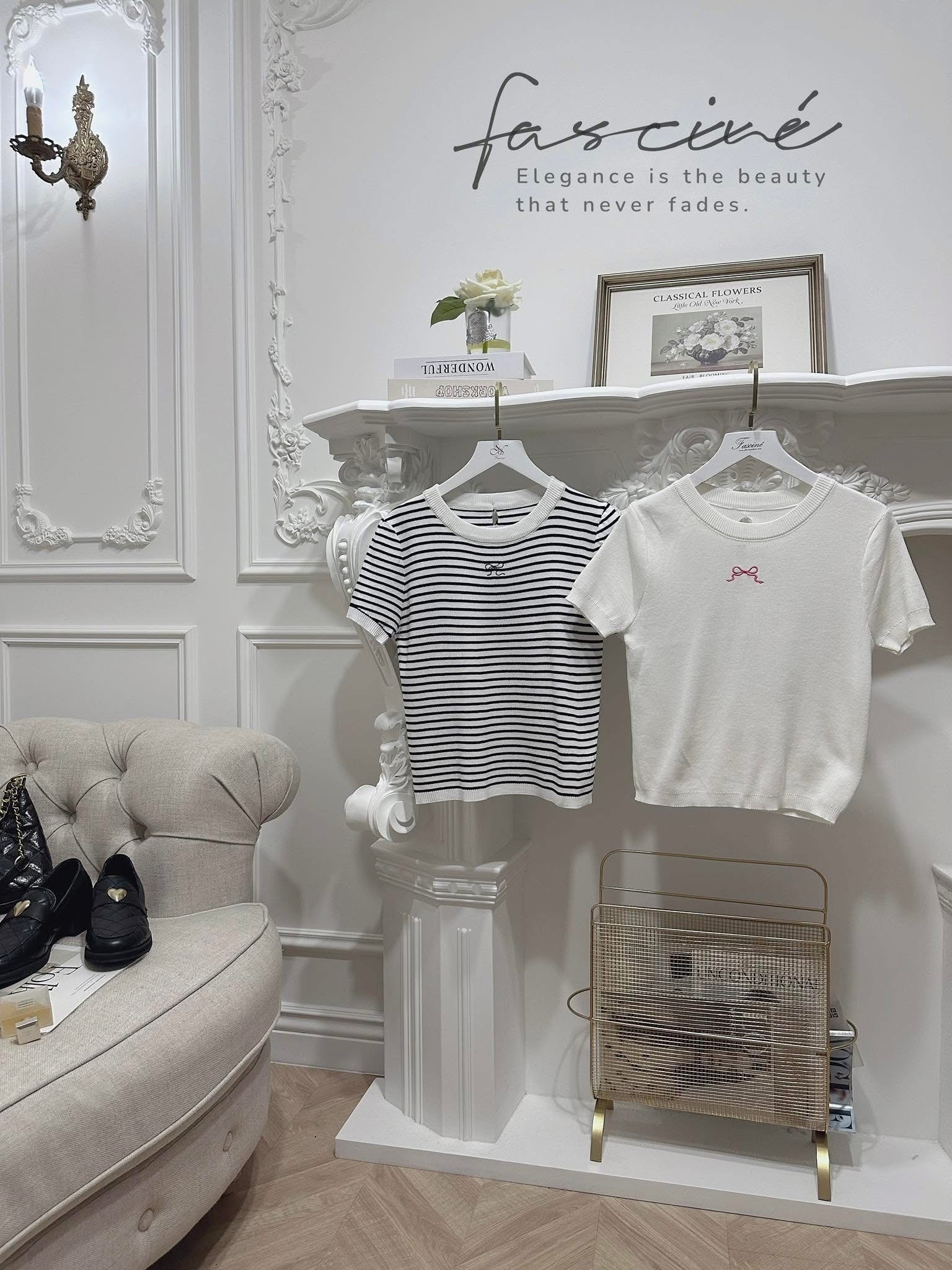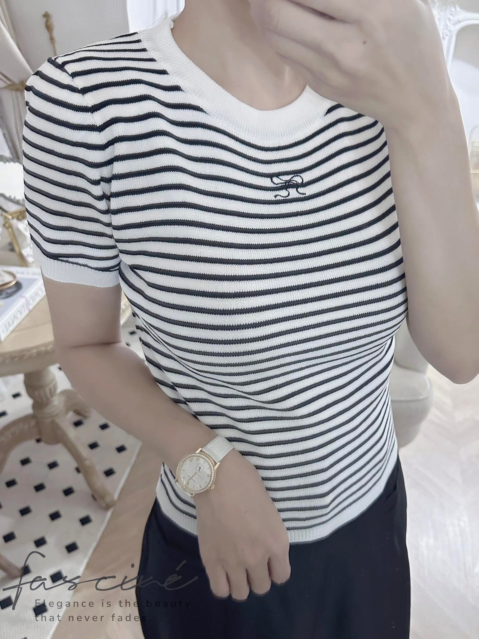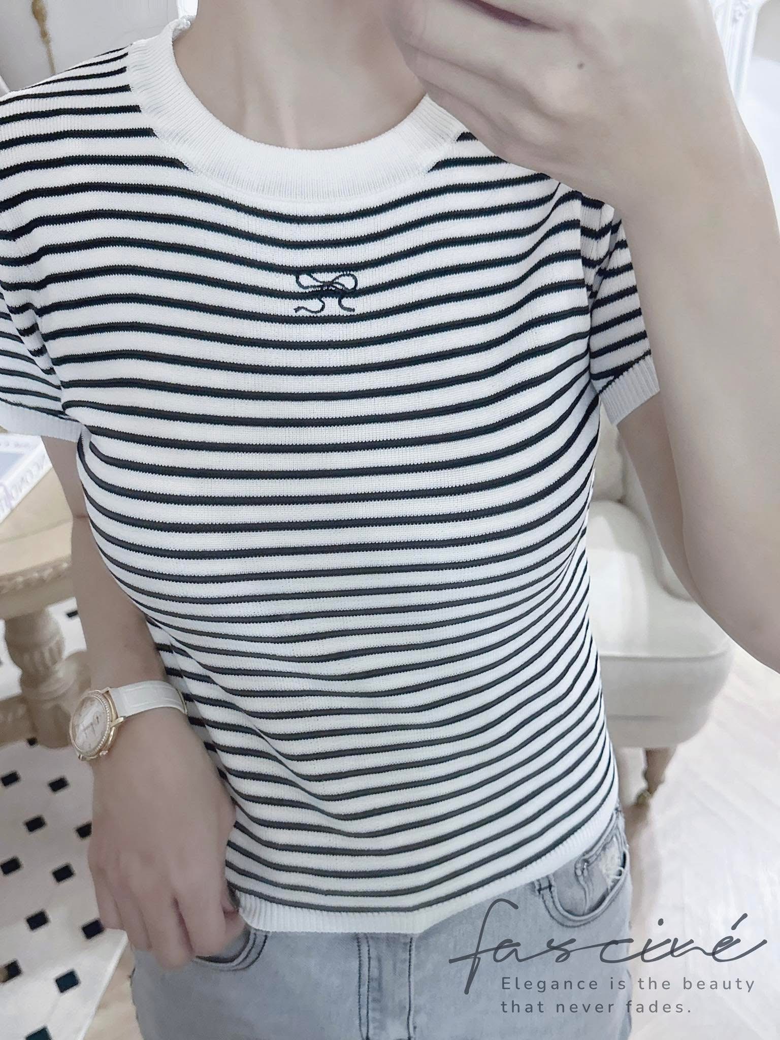 現貨!!!(04T02-25) 法式設計感修身蝴蝶結刺繡後背蝴蝶結針織上衣