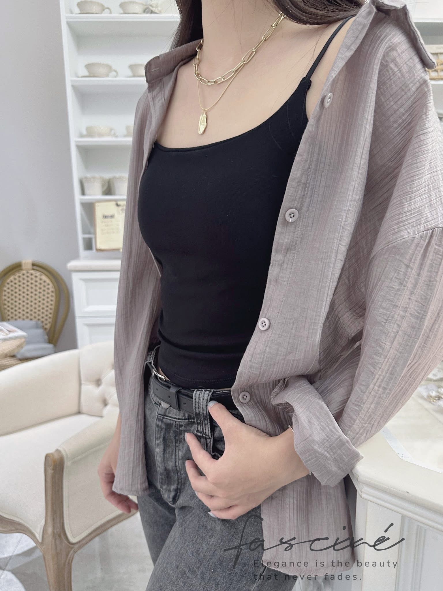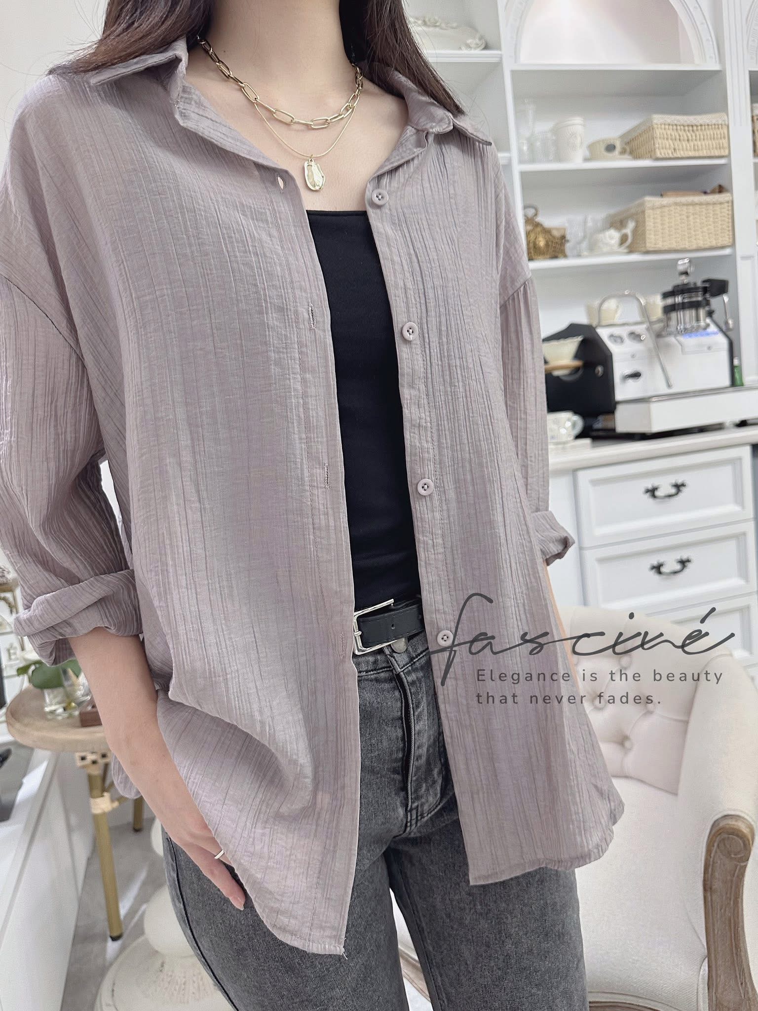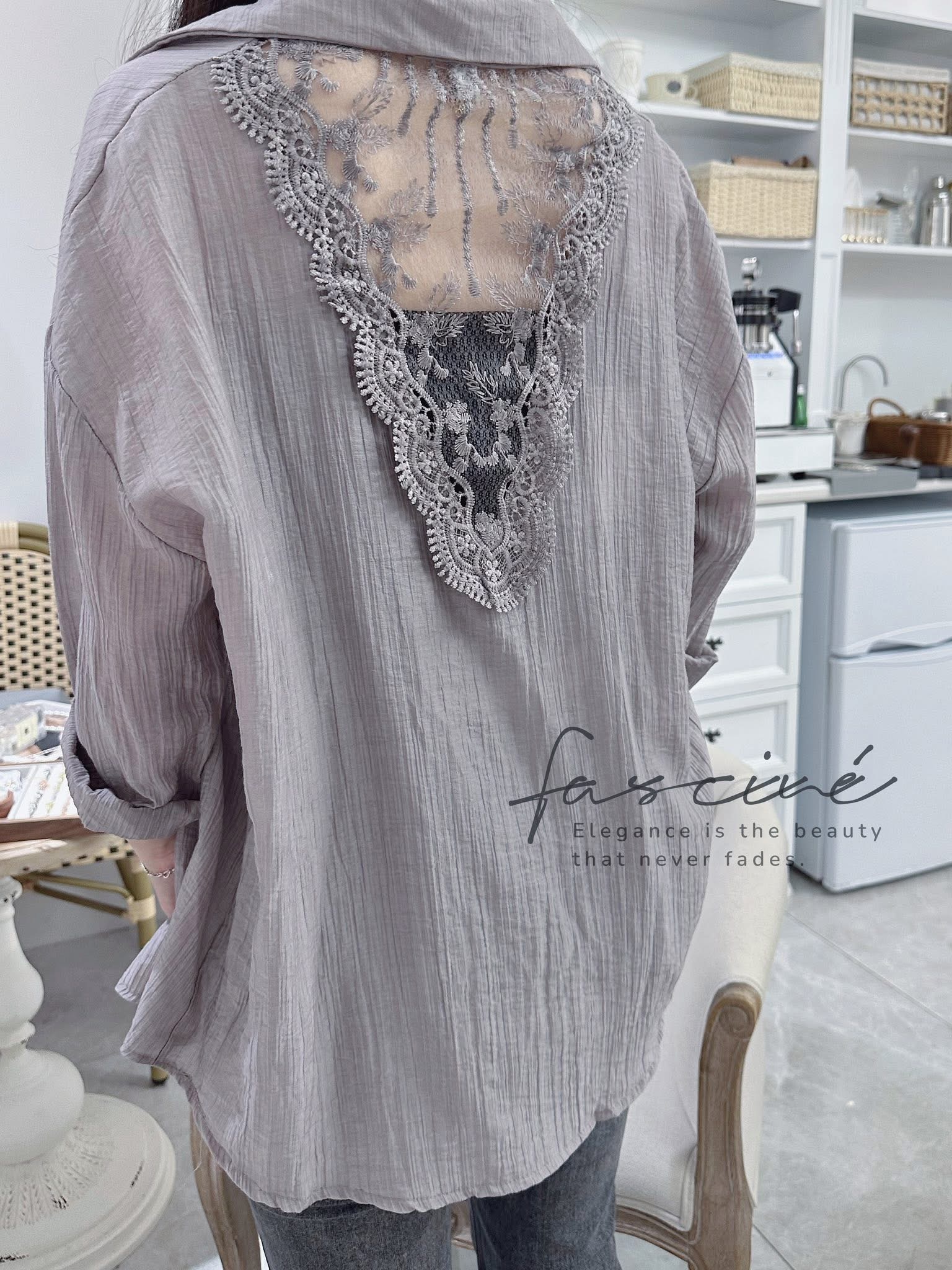 (04T28-25B) 法式露背蕾絲設計感氣質防曬輕薄襯衫