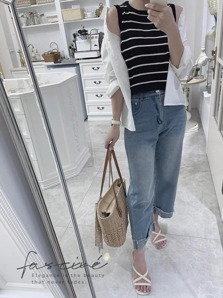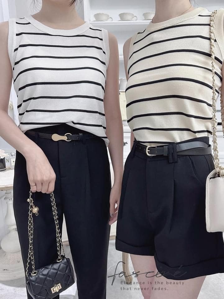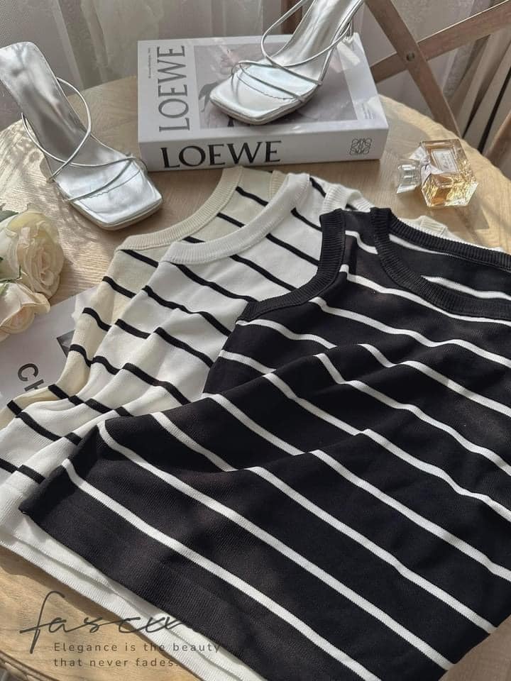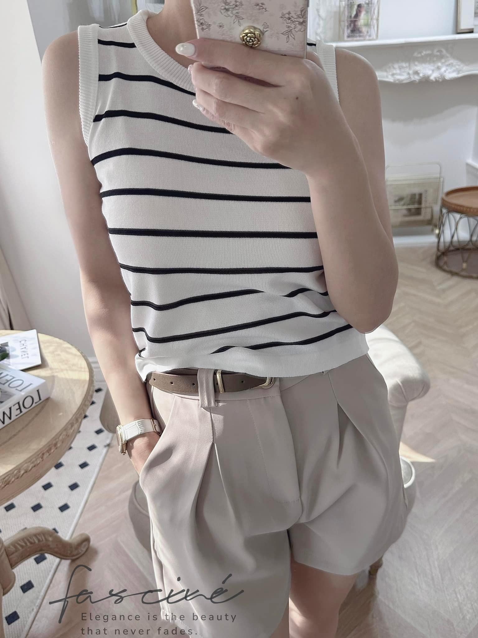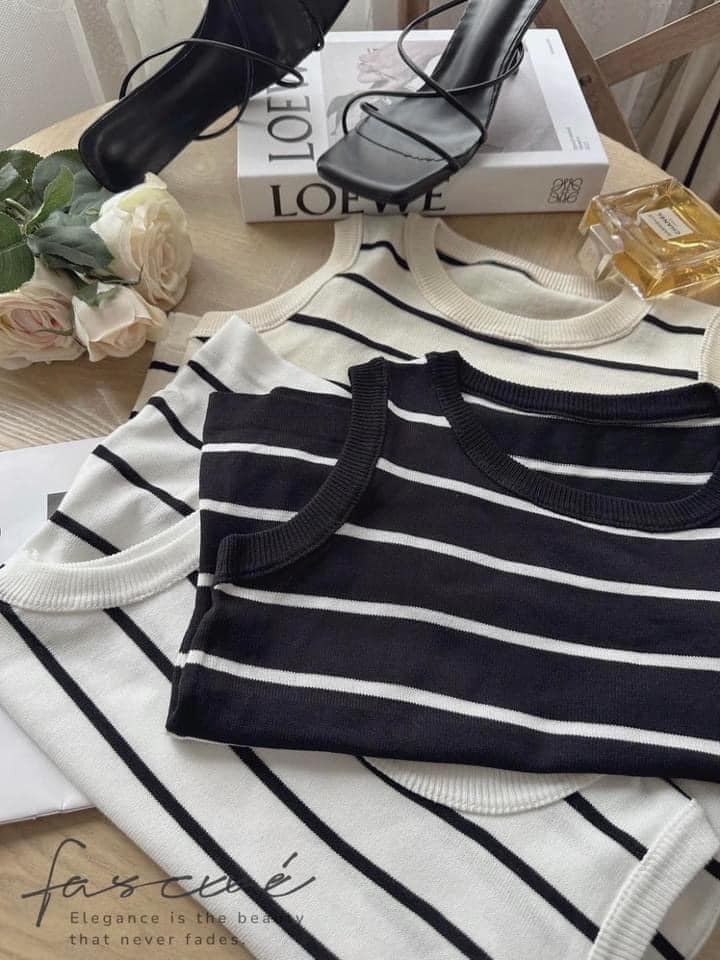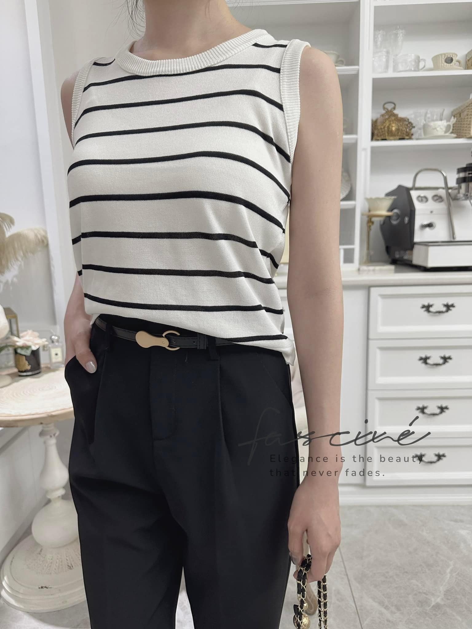 (05T11-24) ⚜️ 甜美圓領條紋寬肩帶背心