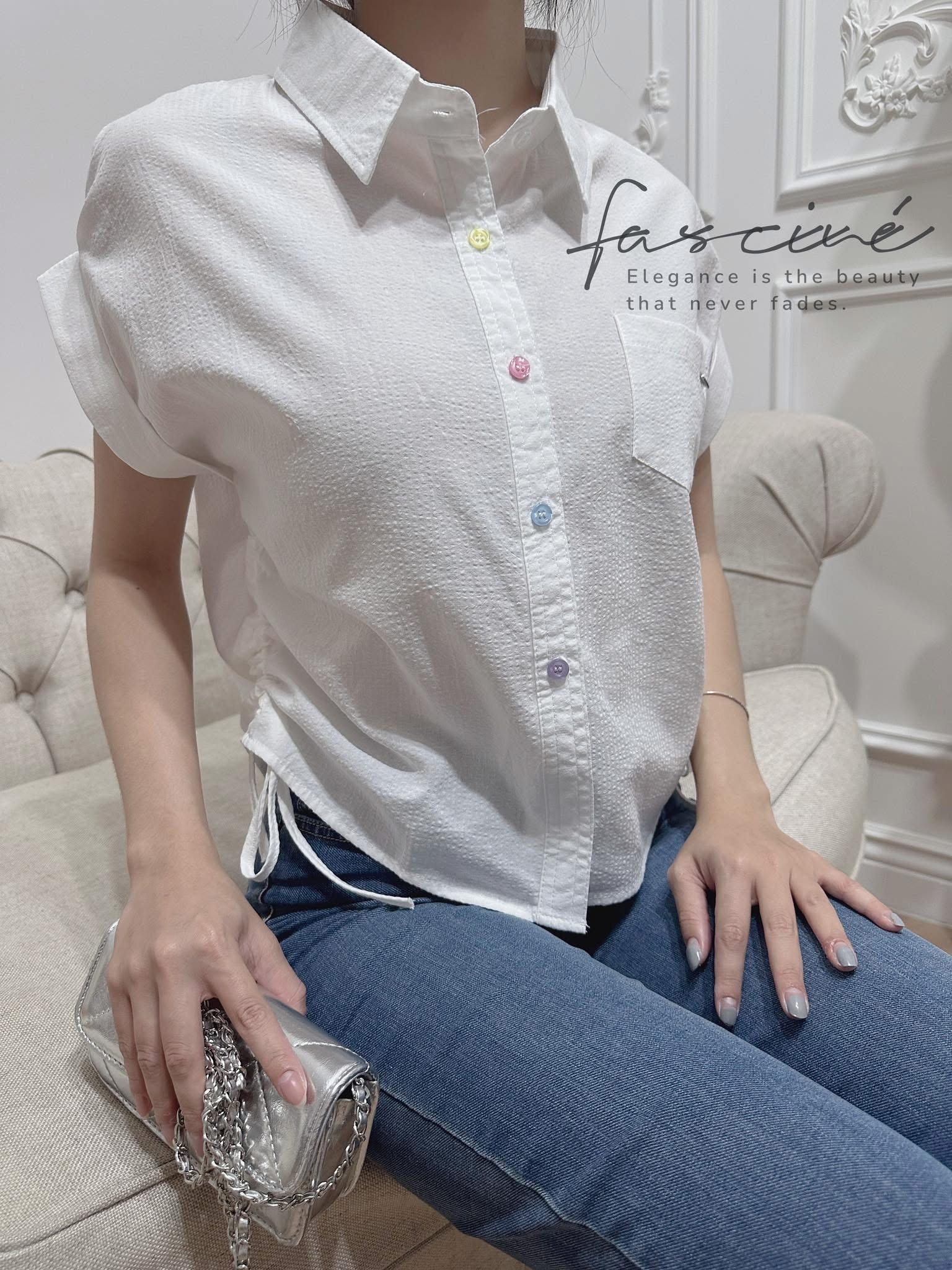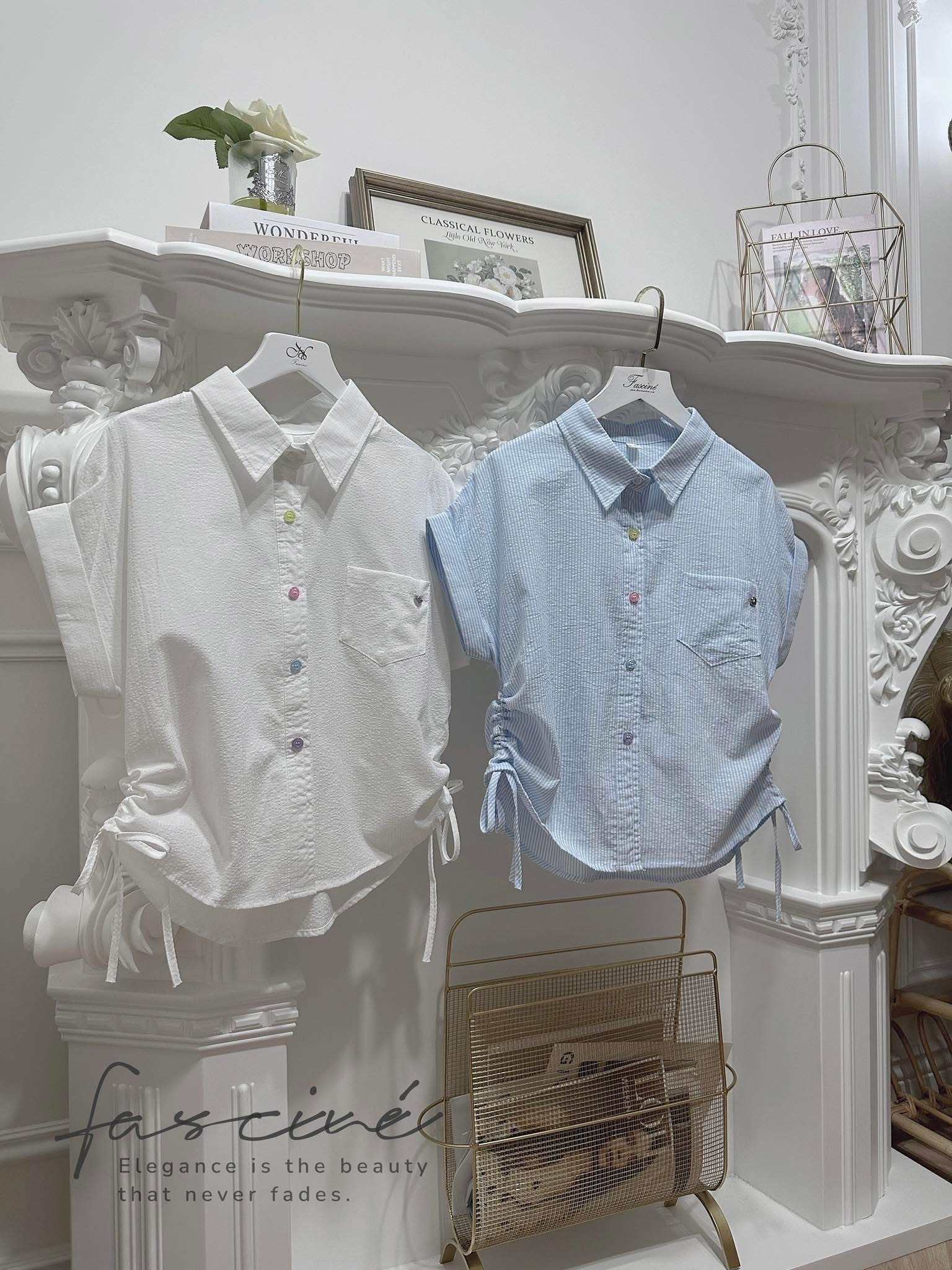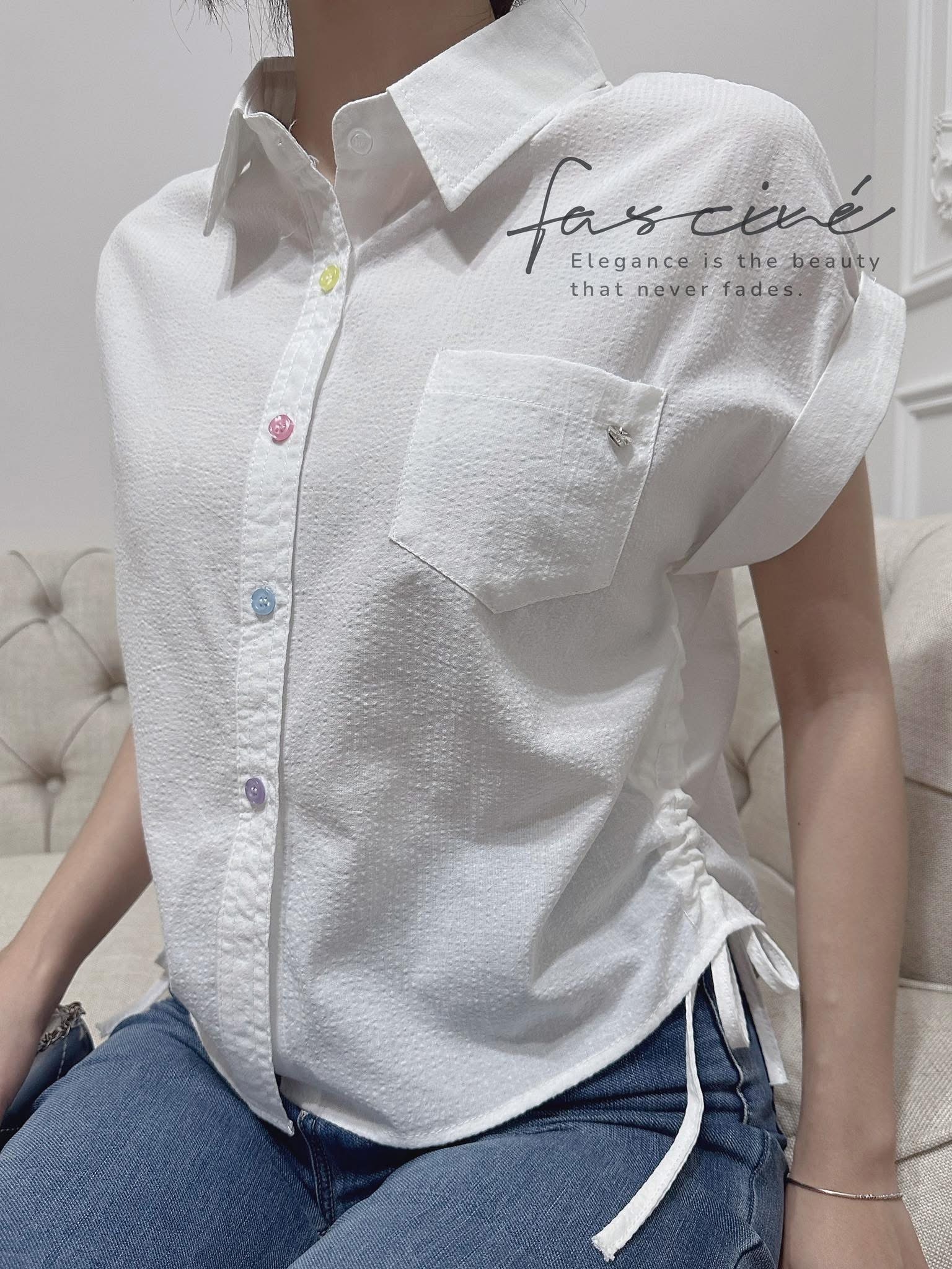 (05T12-25B) 法式設計感休閒百搭短款側邊抽繩襯衫