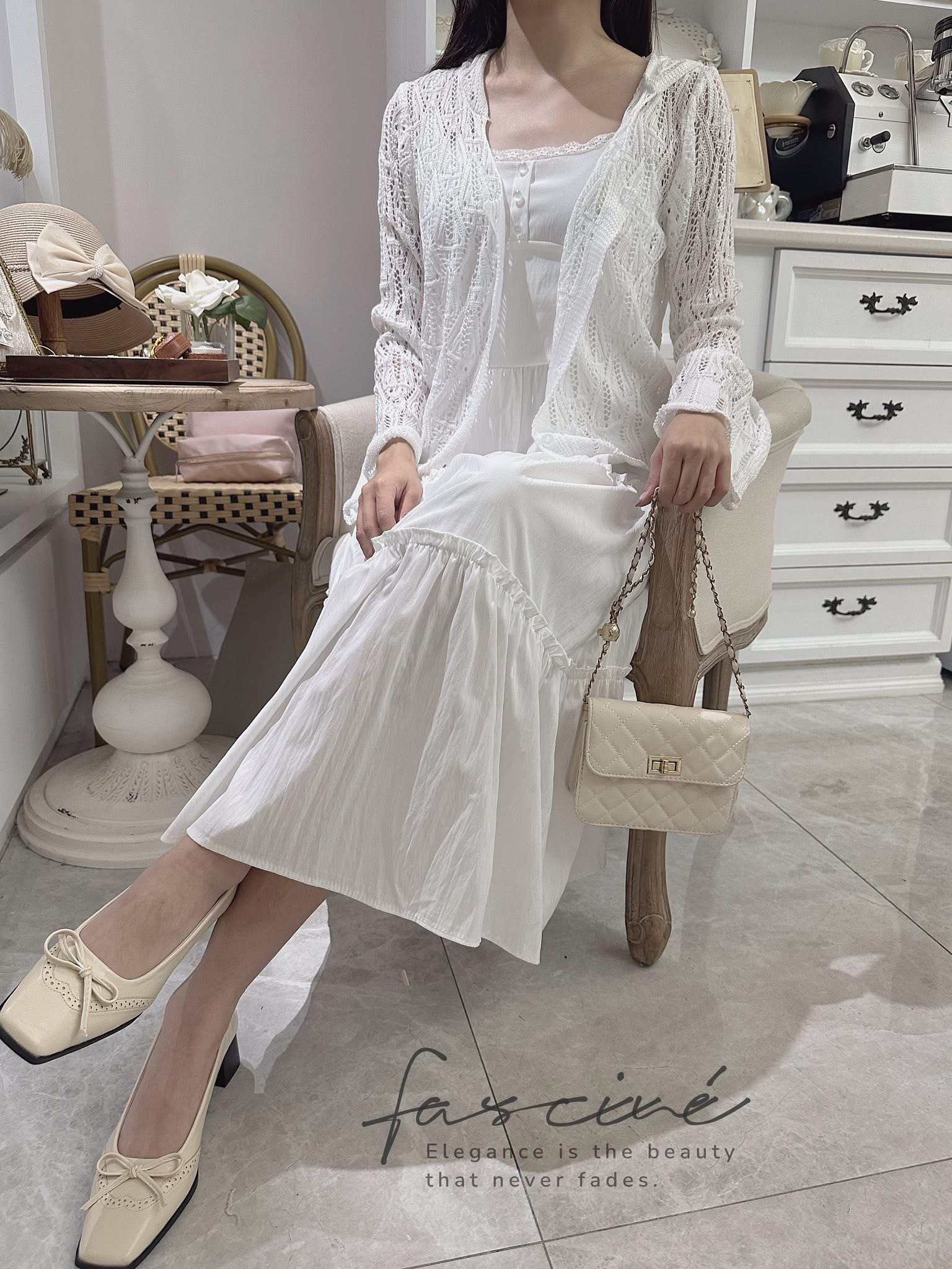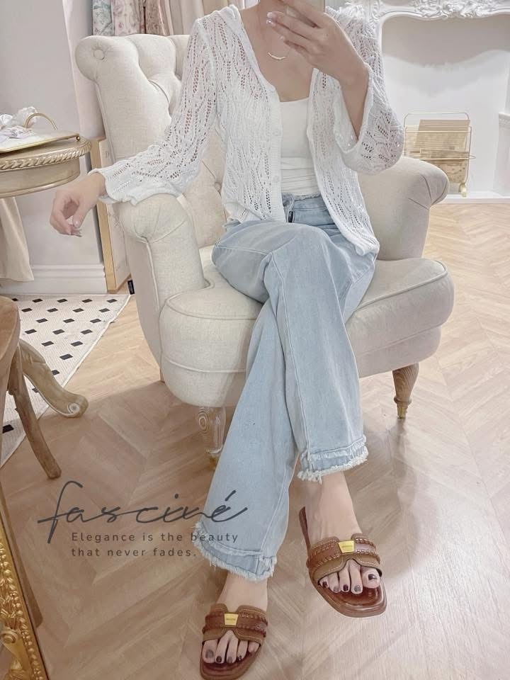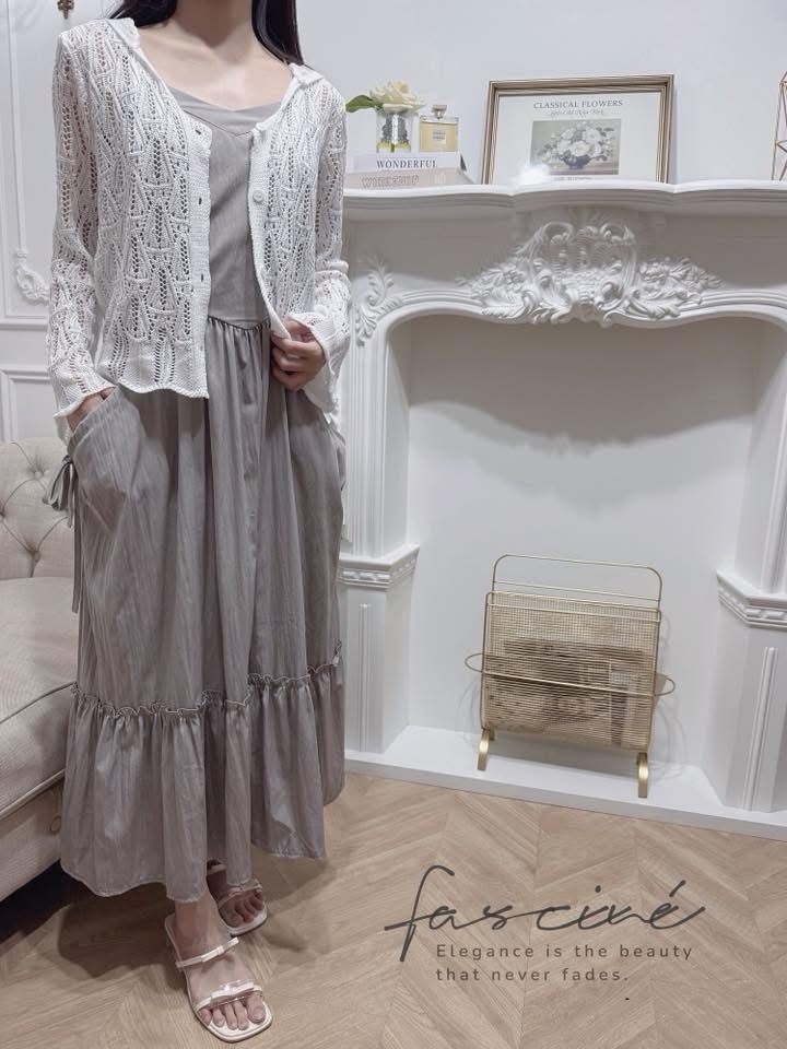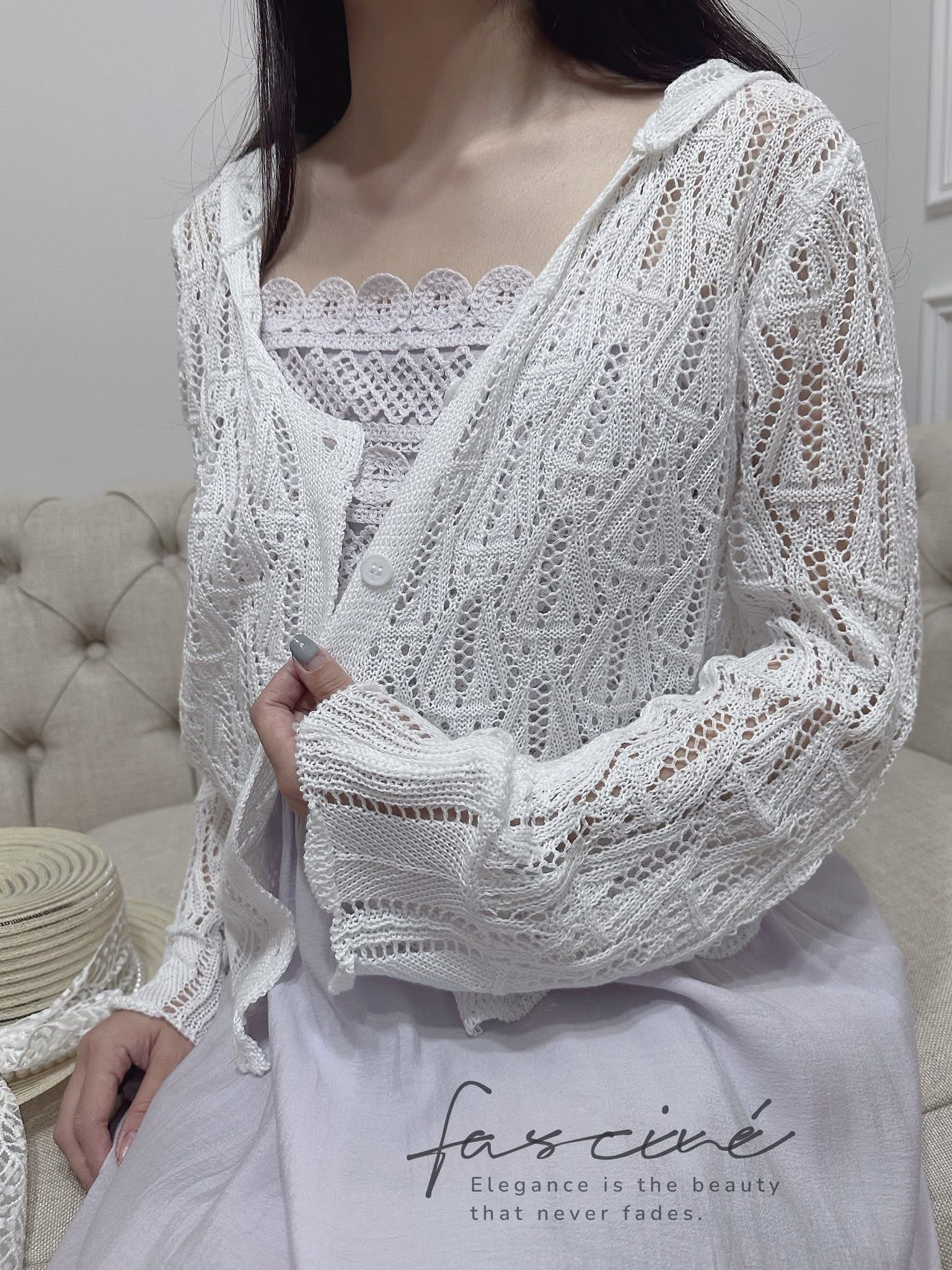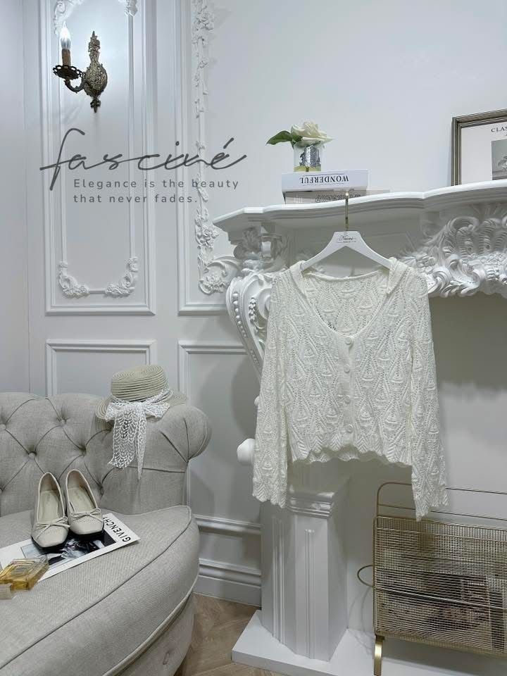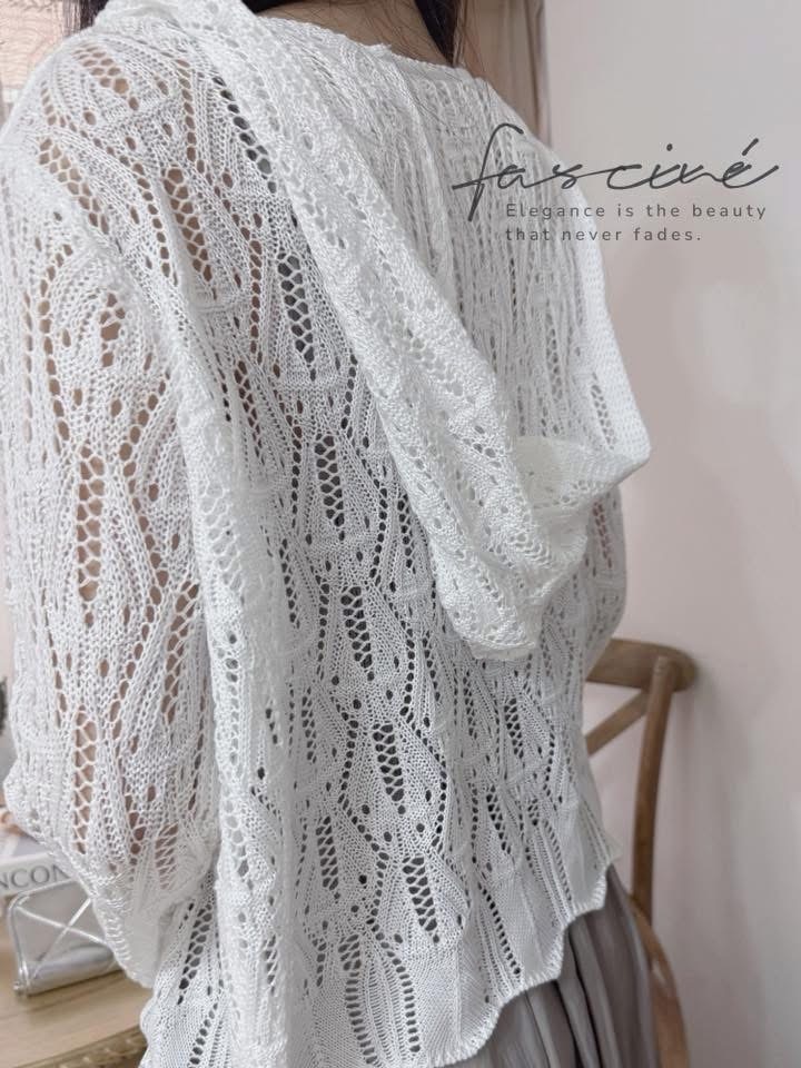 (05T36-25) 法式鏤空連帽寬鬆高級感薄款外搭針織罩衫