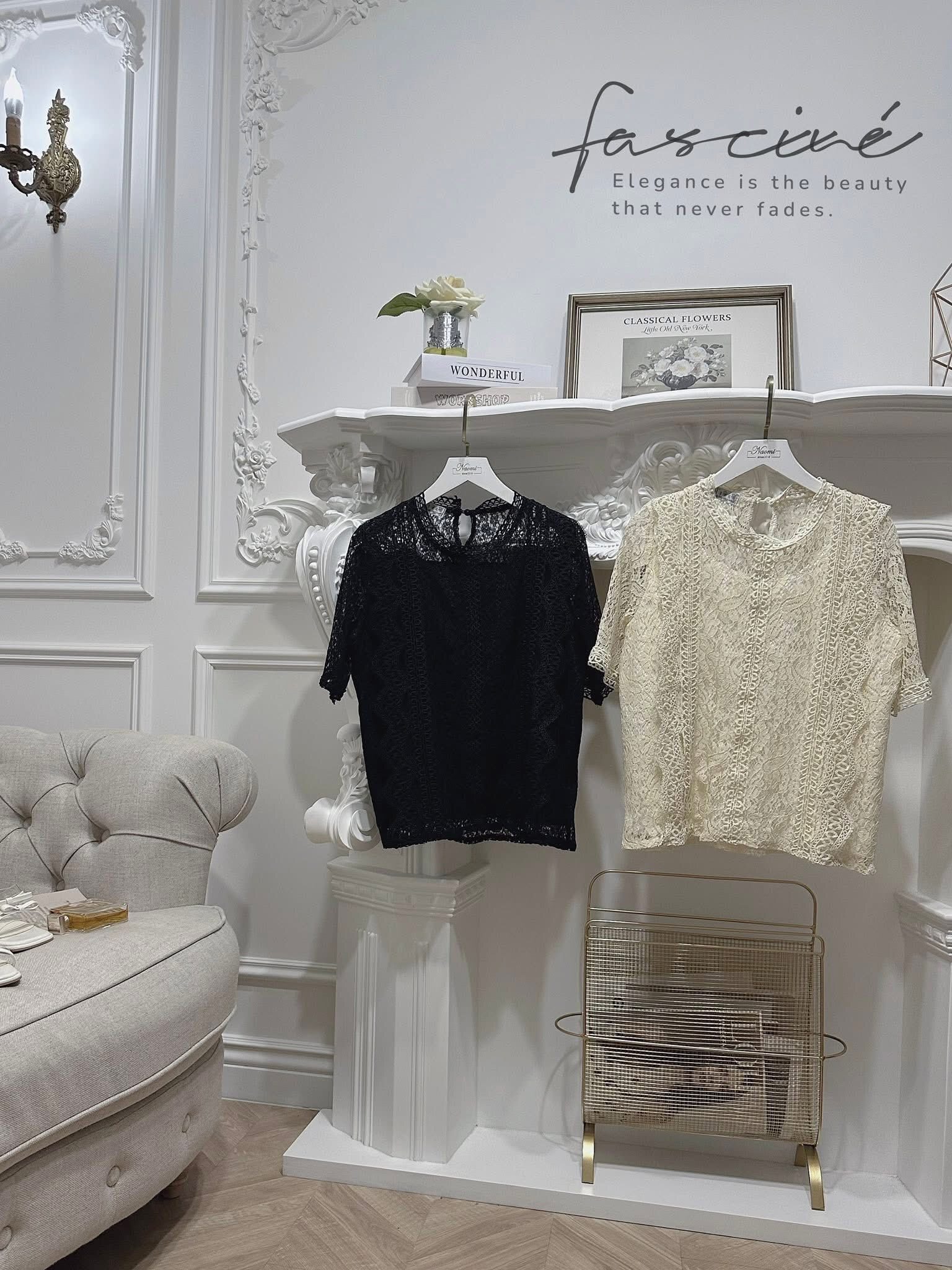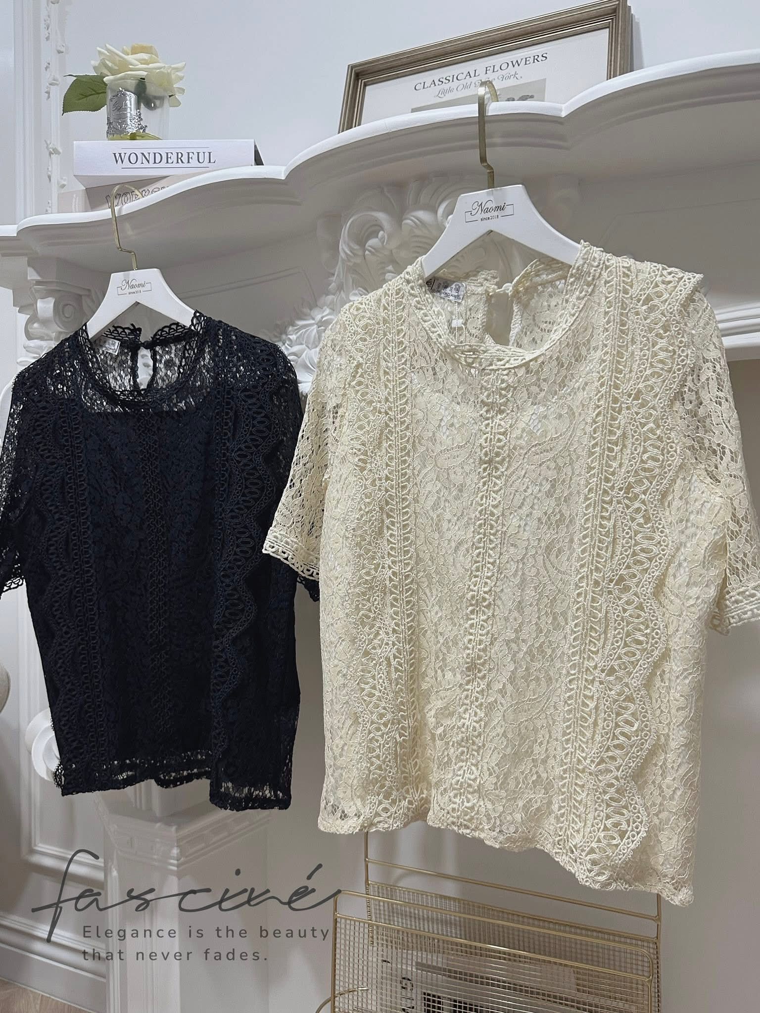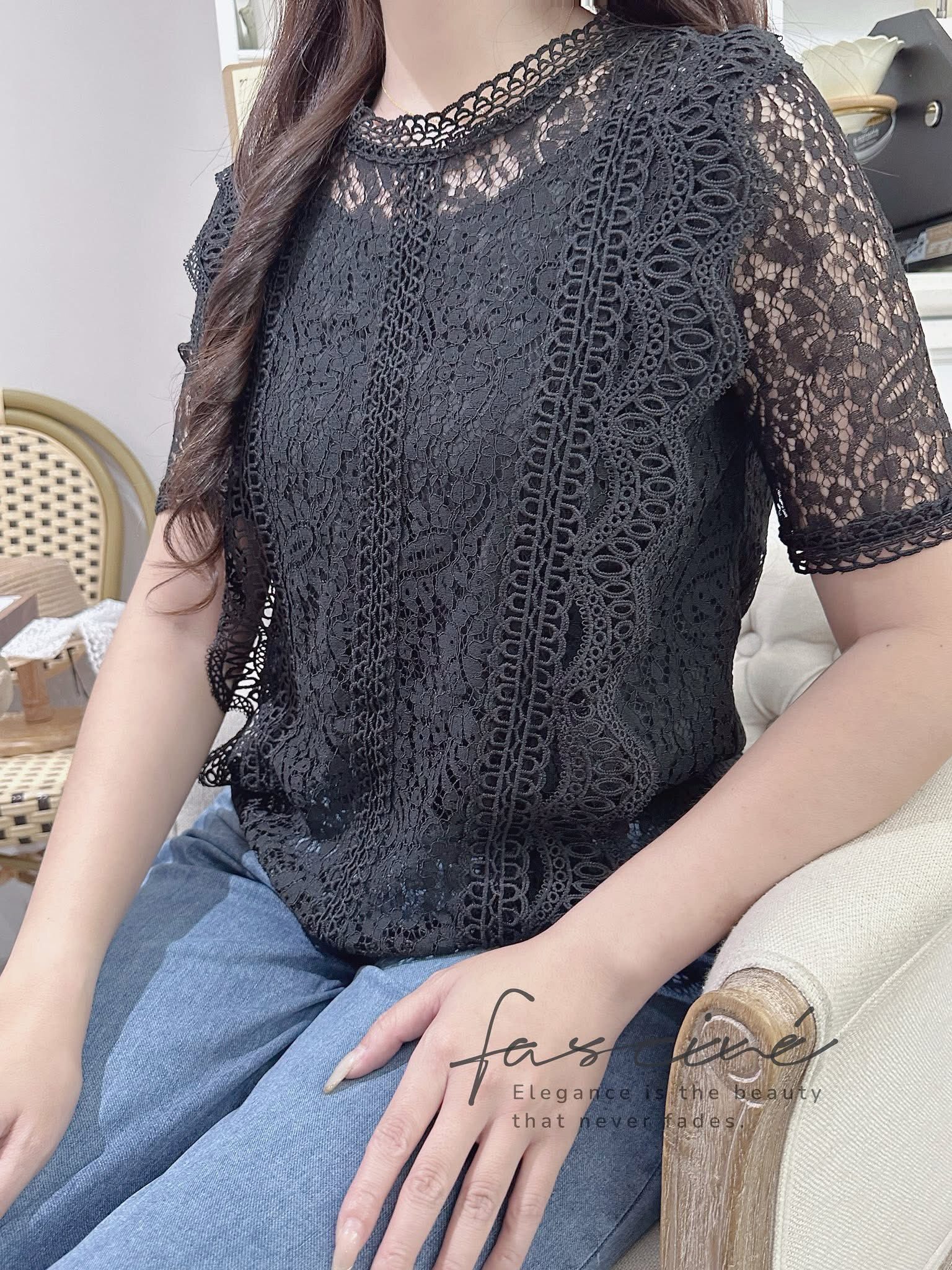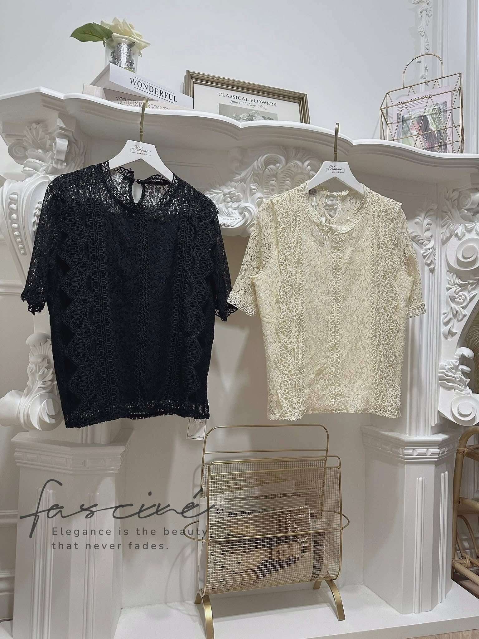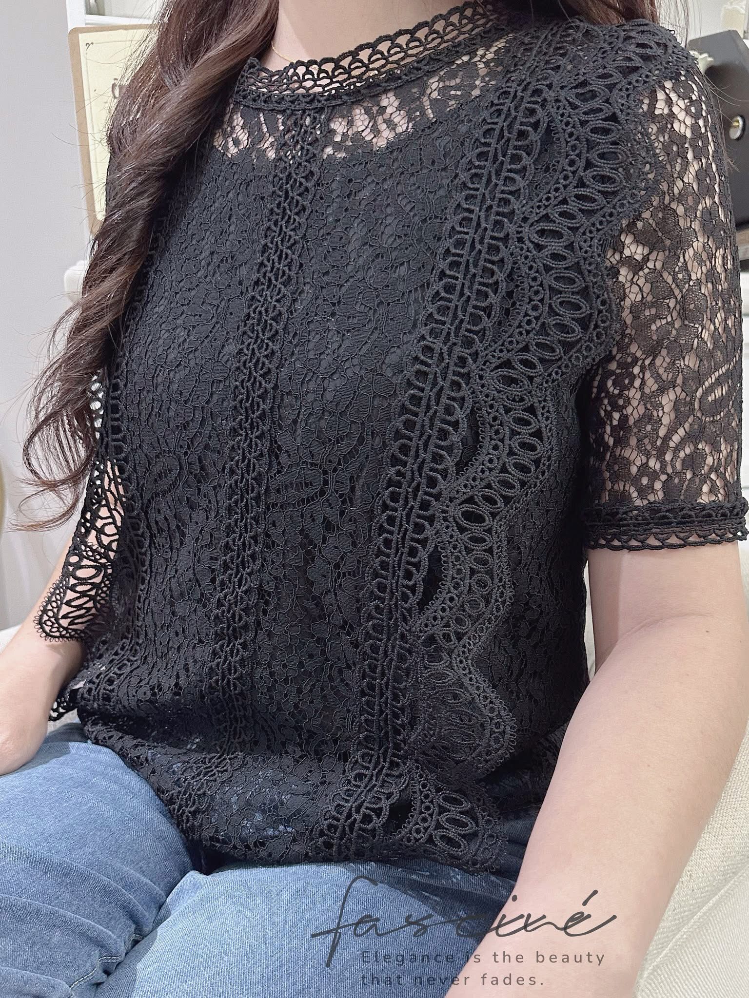 (06T16-25) 法式百搭蕾絲勾花鏤空精緻上衣