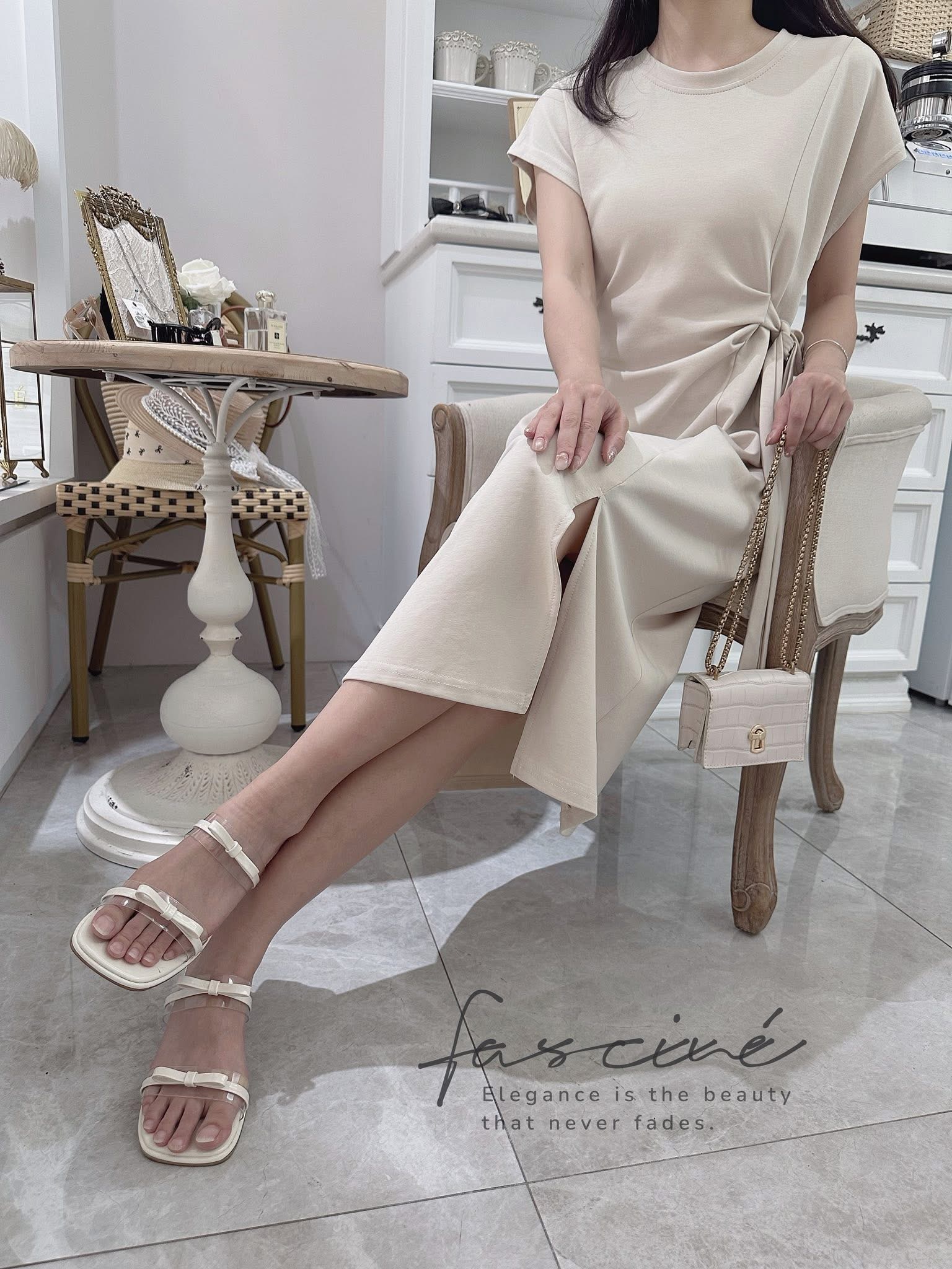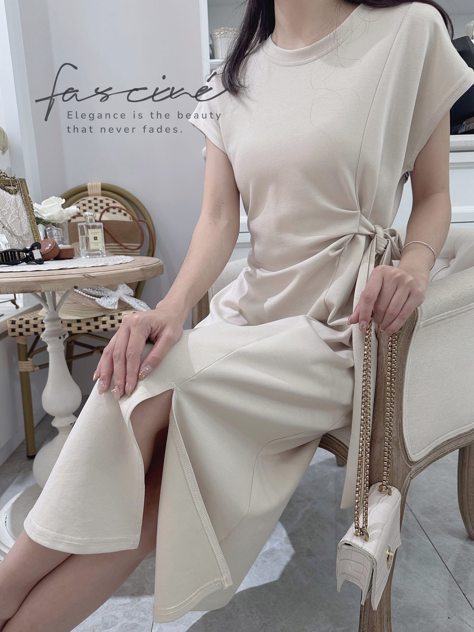 (06T24-25B)法式腰間綁帶簡約俐落顯瘦連身裙