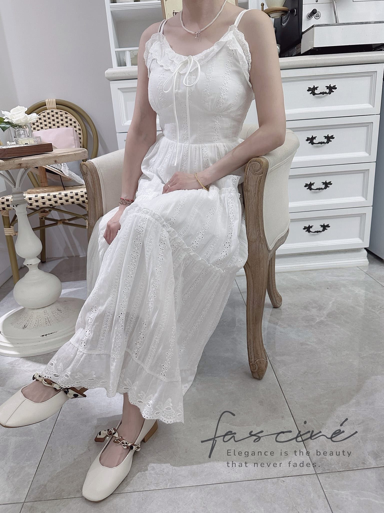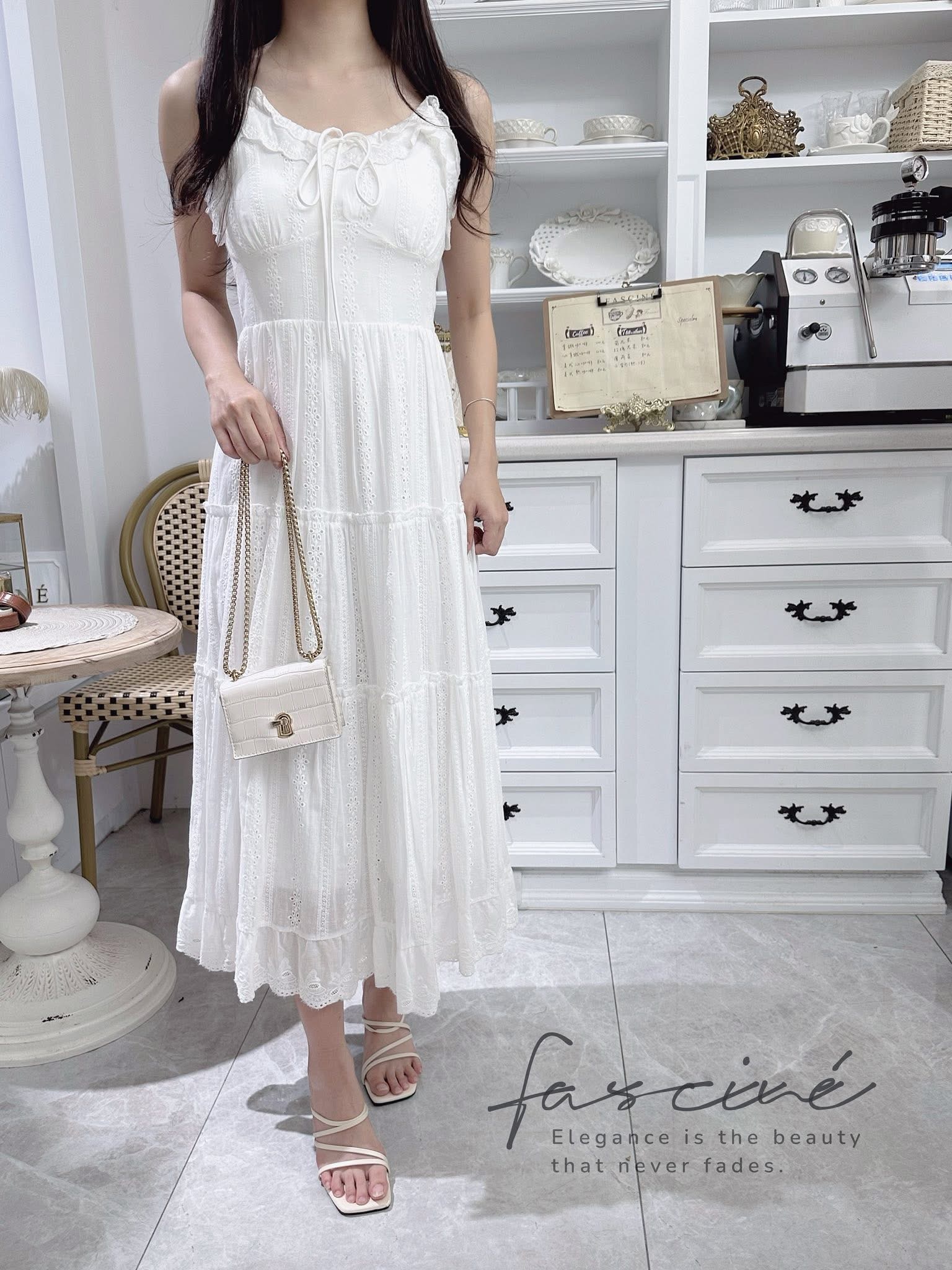 裙子能讓妳一秒變溫柔,那一定是這件白色吊帶蛋糕裙💓浪漫波浪層層疊疊,上身抓皺設計修飾身形,吊帶綁結微甜可調整,讓整體比例更輕盈,而裙身自然垂墜,行走間裙擺搖曳,不管是約會、出遊、還是拍照打卡,這件裙子都能讓你美得毫不費力。簡單搭雙涼鞋、拎個小包包,就能出門,從容又迷人。