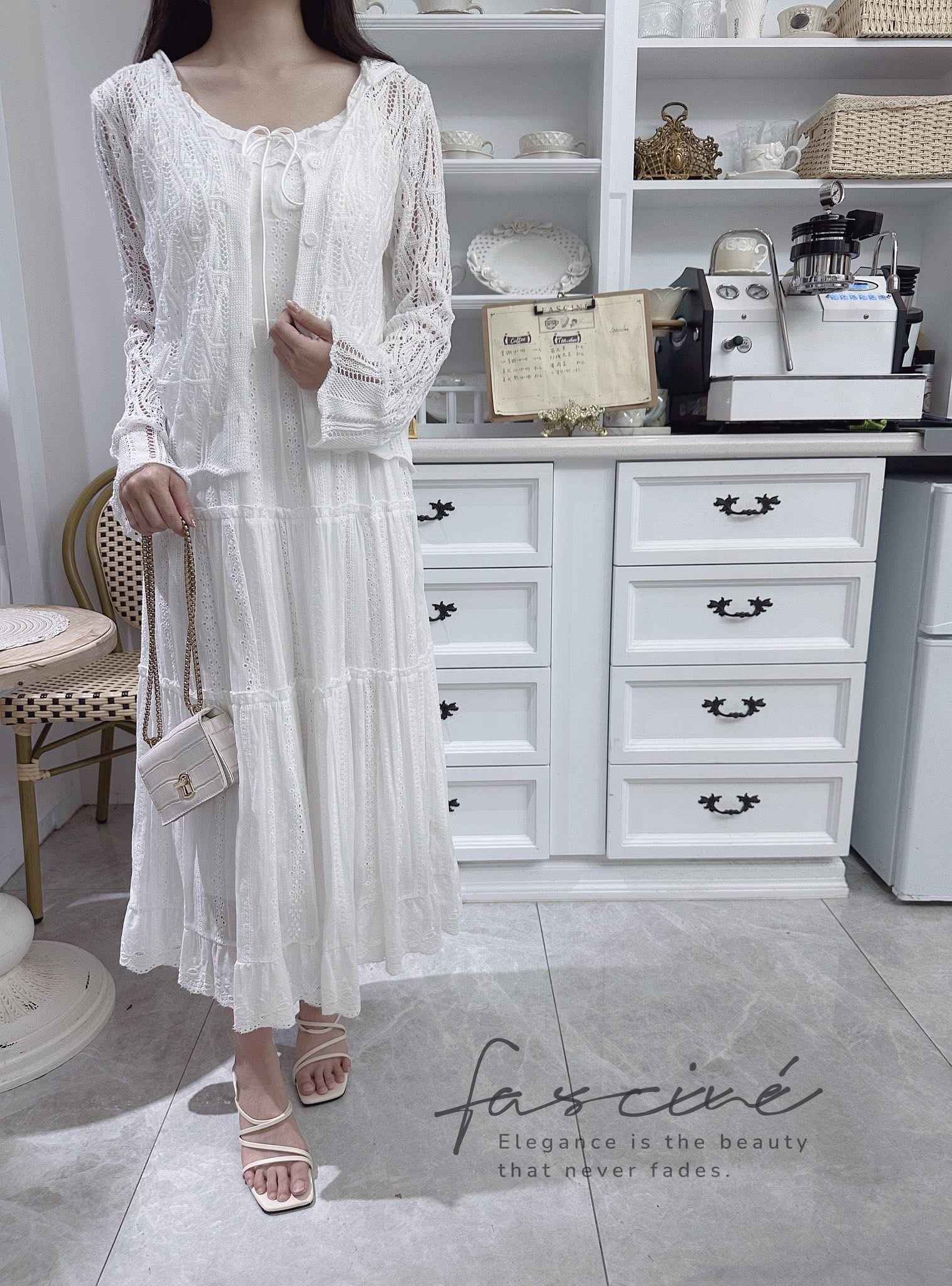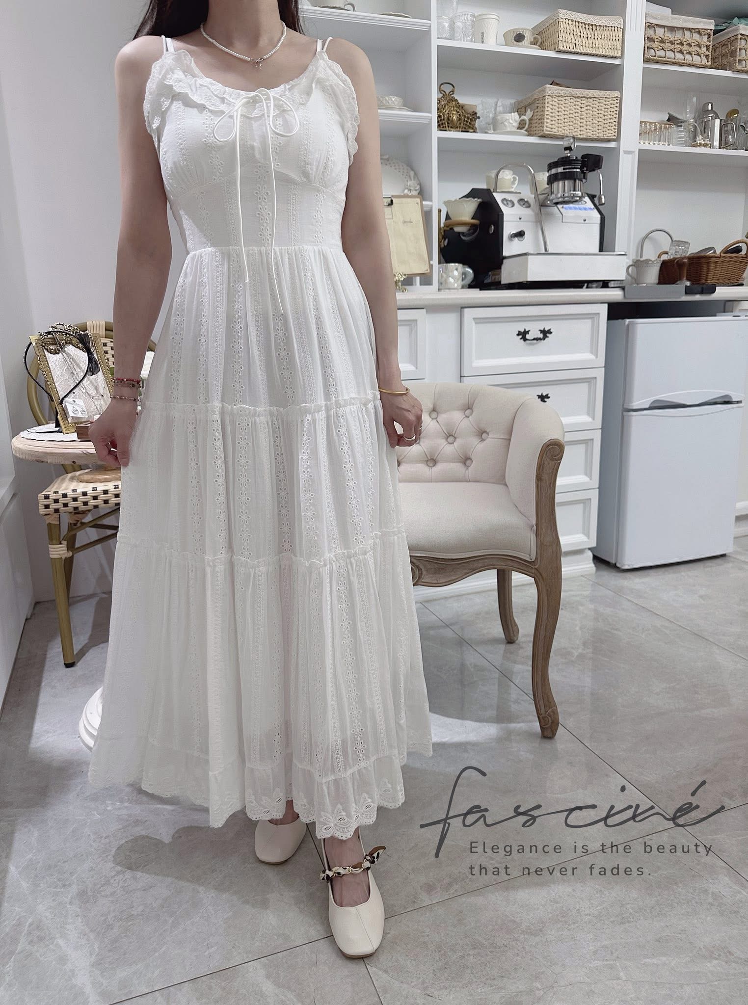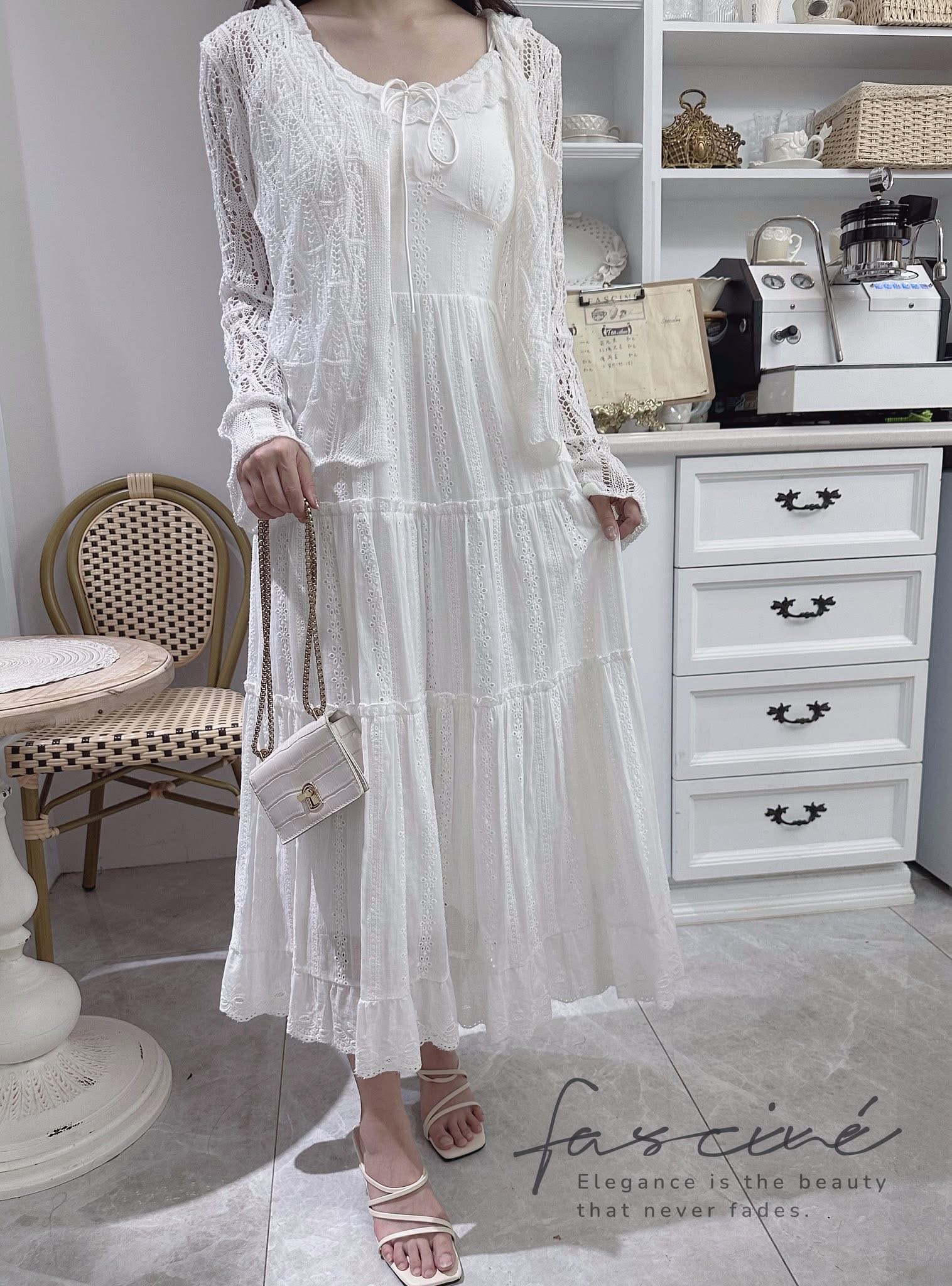 (06T30-25) 法式溫柔白色吊帶顯瘦浪漫蛋糕連身裙