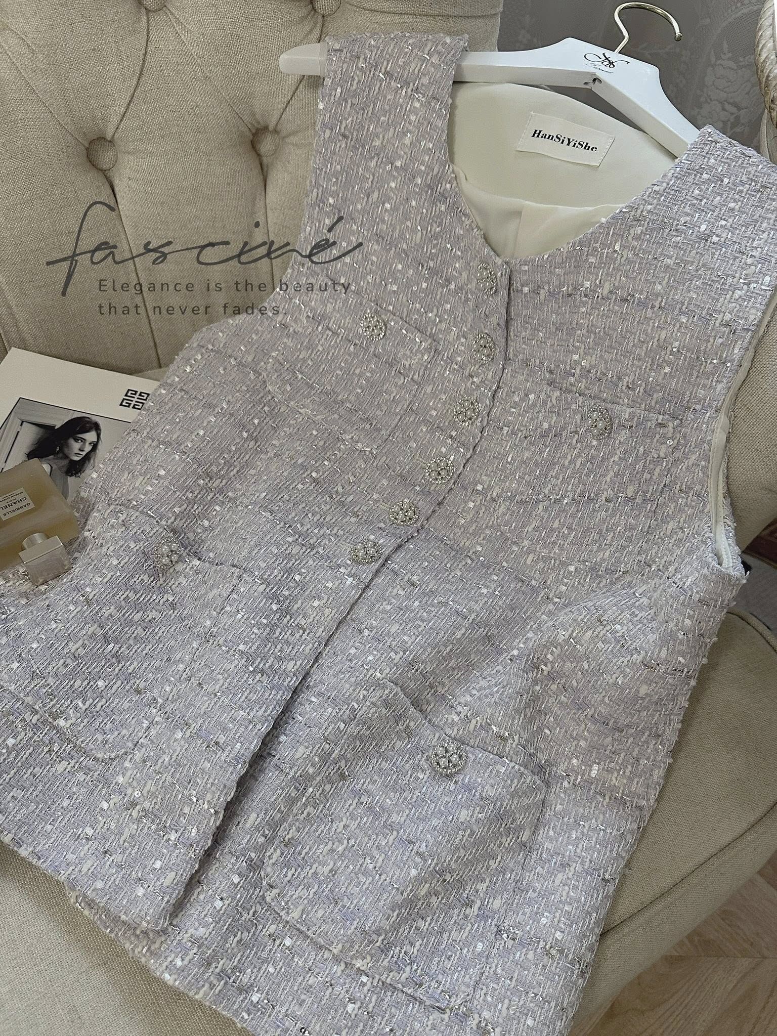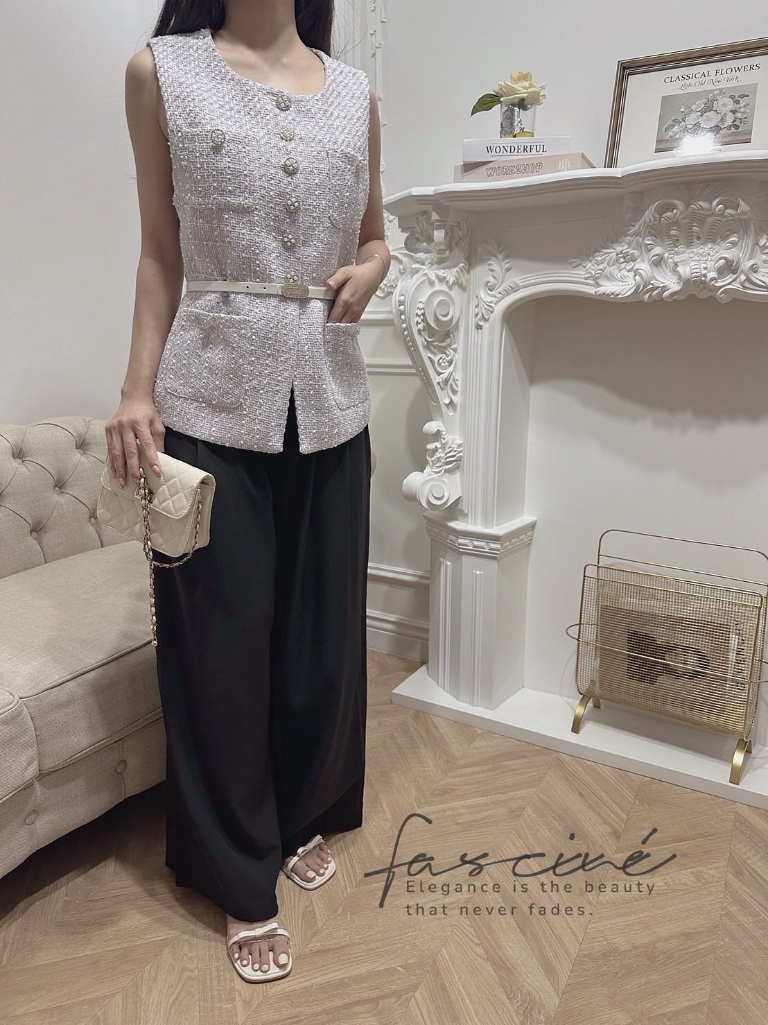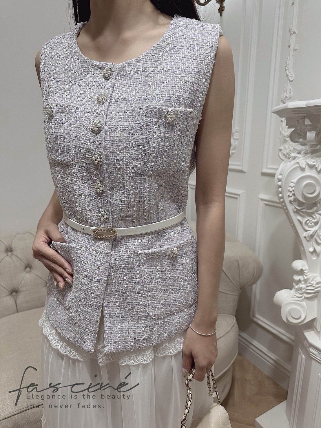 (06T53-25)法式小香風氣質粗花呢無袖背心修身上衣(附腰帶)