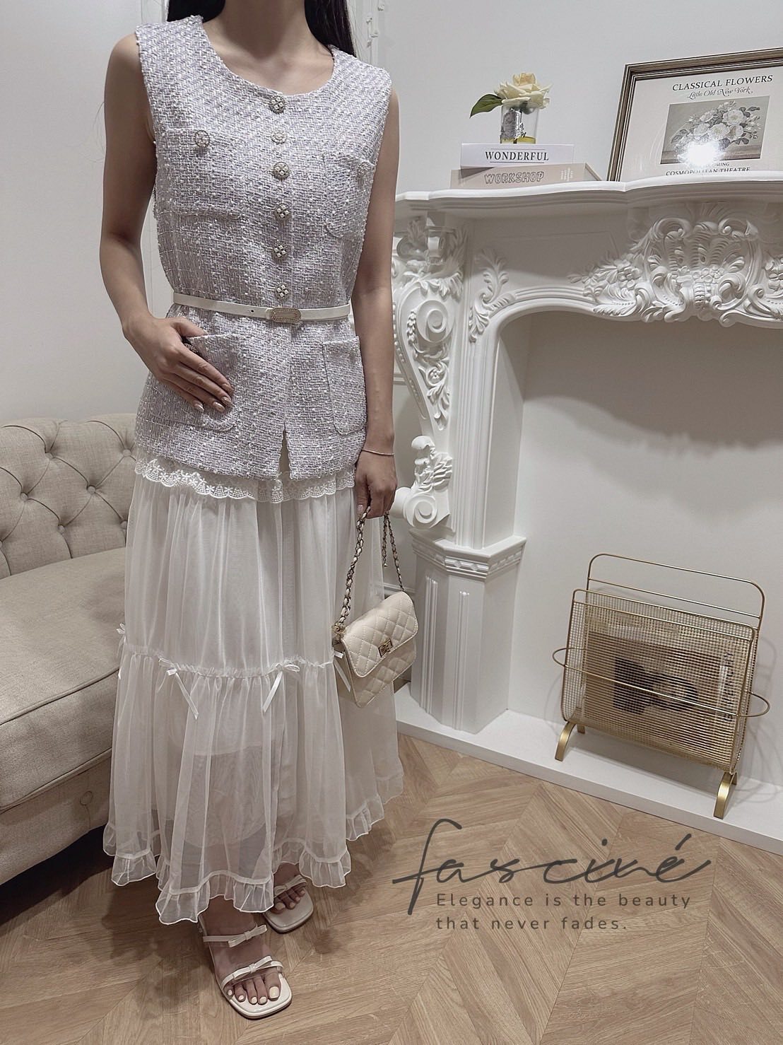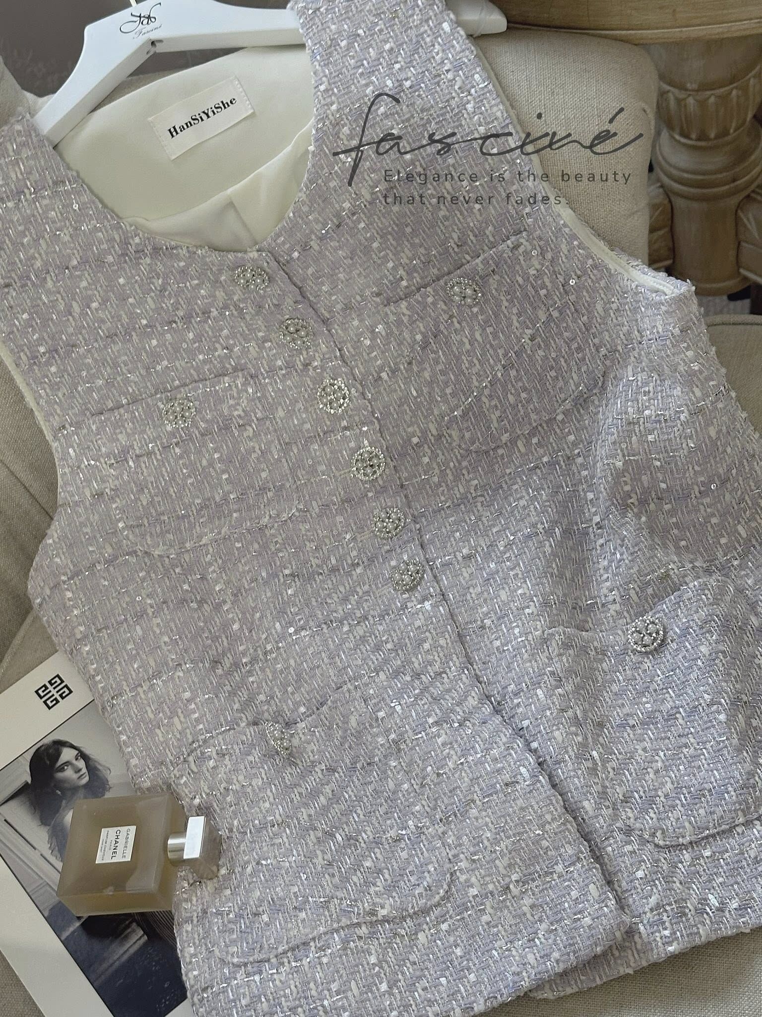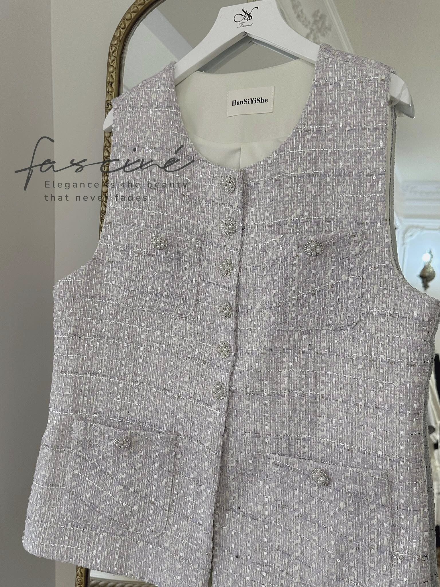 (06T53-25)法式小香風氣質粗花呢無袖背心修身上衣(附腰帶)