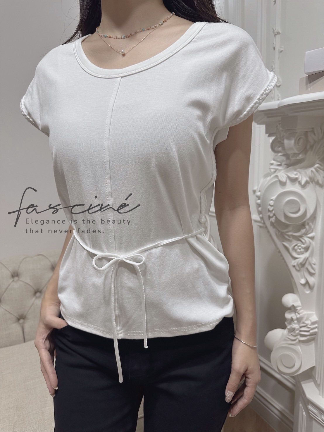 (06T55-25B)法式時尚收腰麻花邊蓋袖上衣