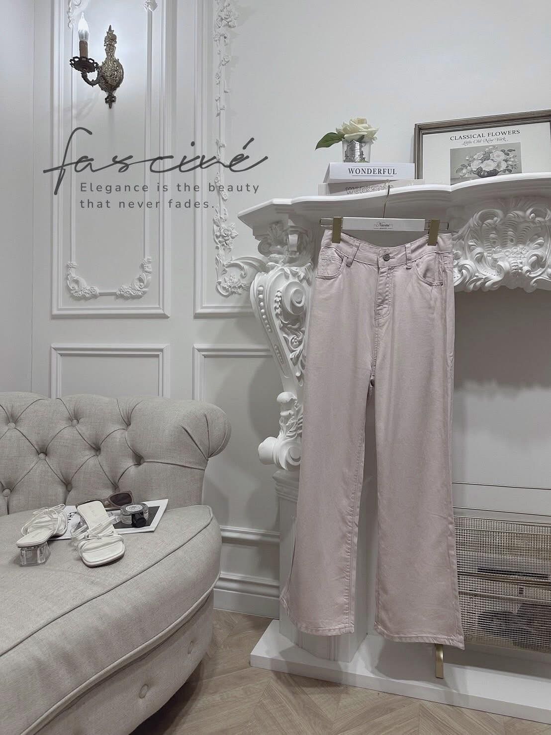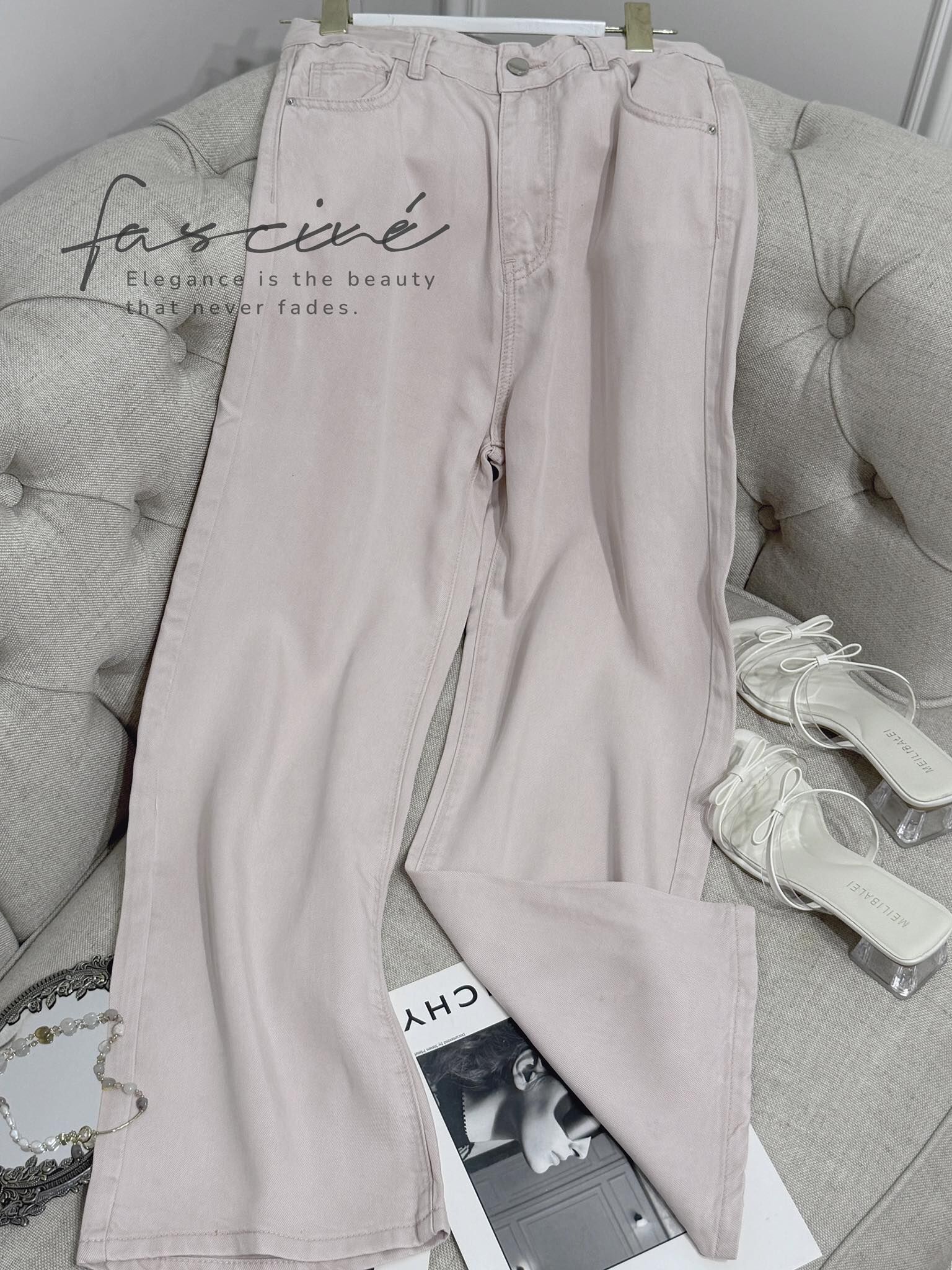 法式超柔軟修身型粉色直筒牛仔褲