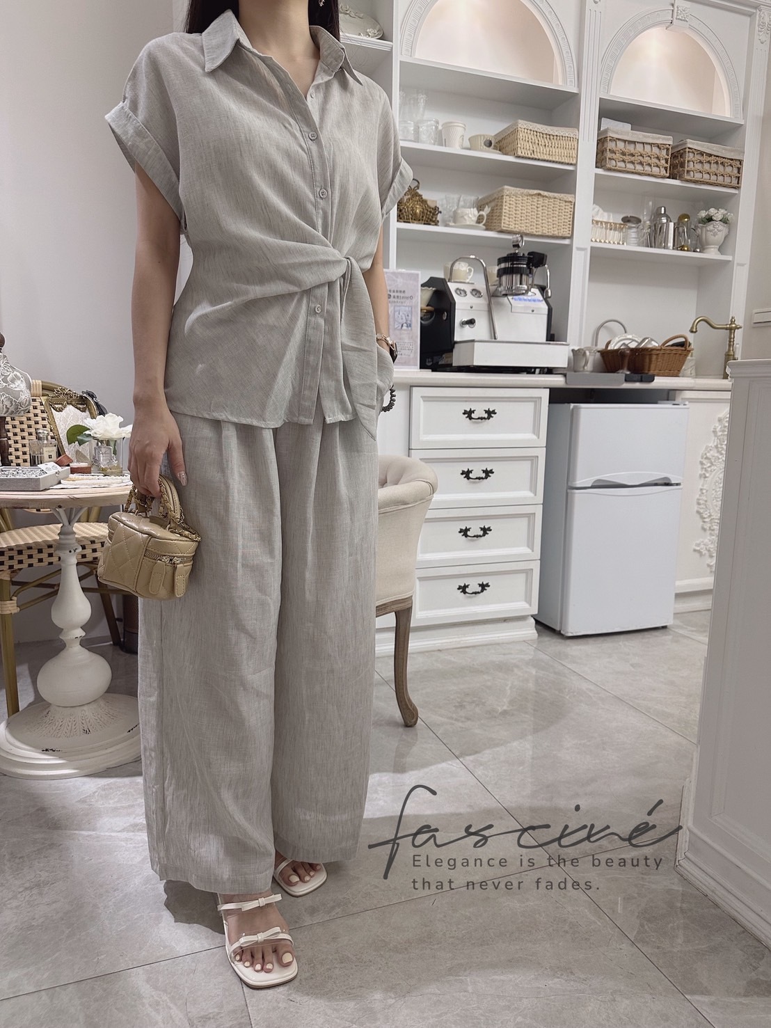 在悶熱的夏季,也能穿出巴黎女人的從容優雅。選用輕薄麻料,透氣不貼膚;挺版剪裁搭配側綁設計,瞬間勾勒腰線,視覺顯高顯瘦。襯衫寬袖能讓所有的肉肉都消失,褲裝則以彈性腰頭貼心包容各種身形,舉手投足皆是法式慵懶與高級質感。兩色可選,淺灰:溫柔氣質、深灰:低調摩登,無論通勤或度假都能輕鬆駕馭。