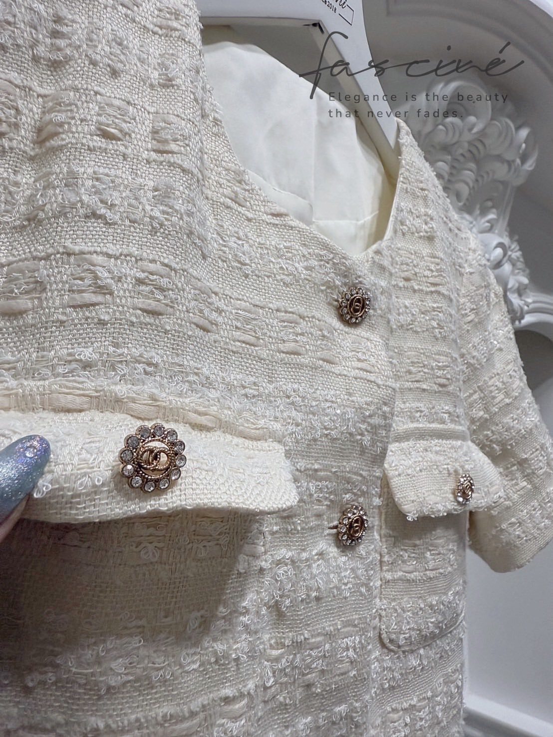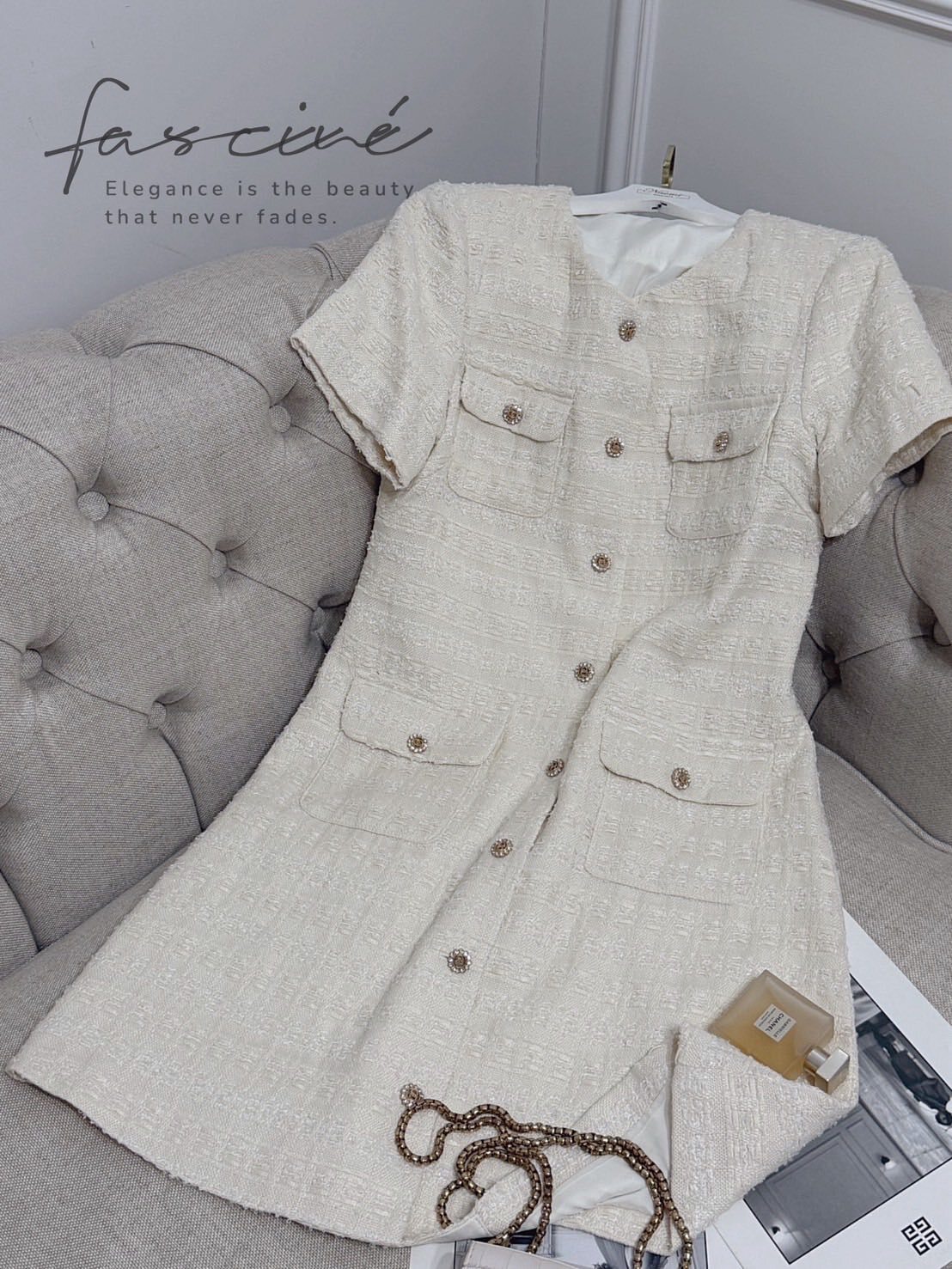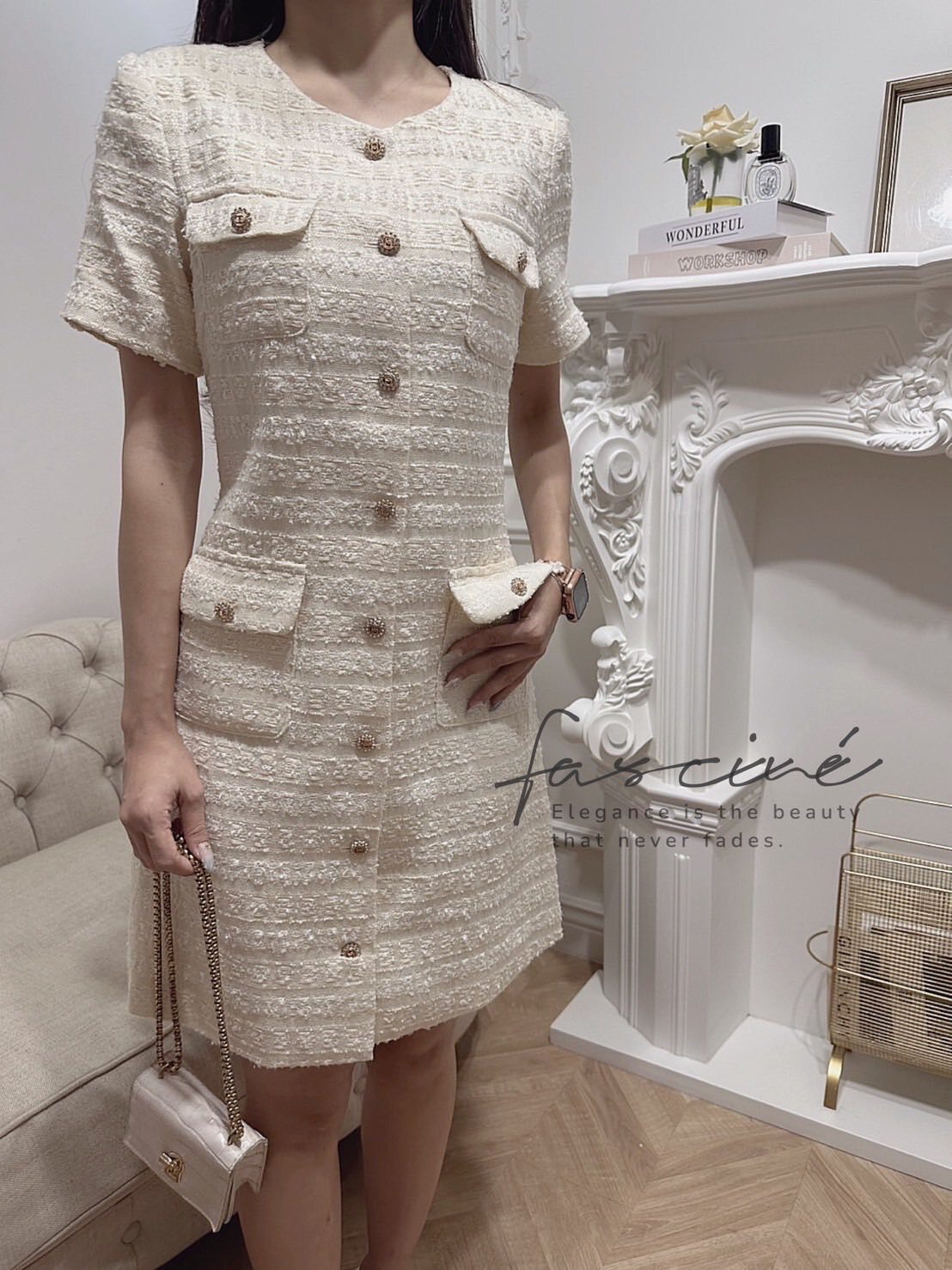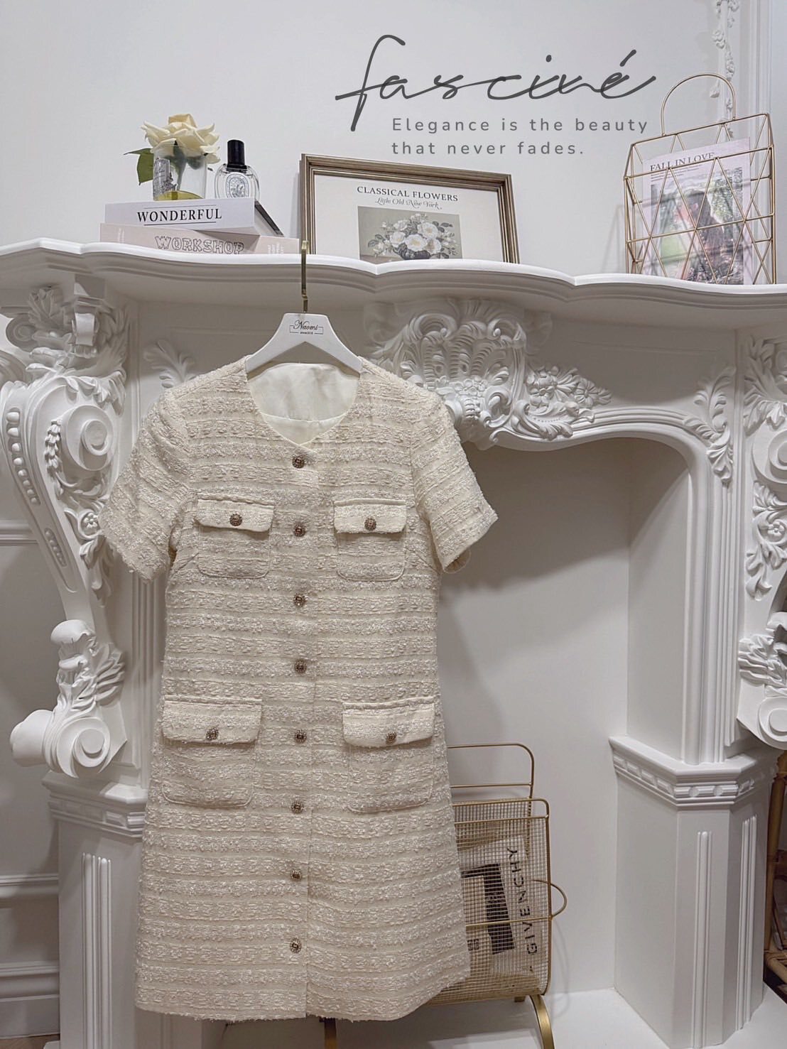 法式奶杏色 x 小香風粗花呢,一秒穿出「貴族感」。圓領剪裁配上金邊鑲珠鈕釦,優雅藏不住;A字版型微收腰,視覺-2kg顯瘦。四口袋設計,機能與時髦並存。短袖剪裁搭配輕奢質感內裡,舒適度拉滿,四季都能優雅出場。無論是週末午茶、還是重要約會與活動,輕搭珍珠耳環或奶油色瑪莉珍鞋,即刻升級你的高級衣櫥,現在下單,讓妳從容迎接每一個被注目的瞬間。