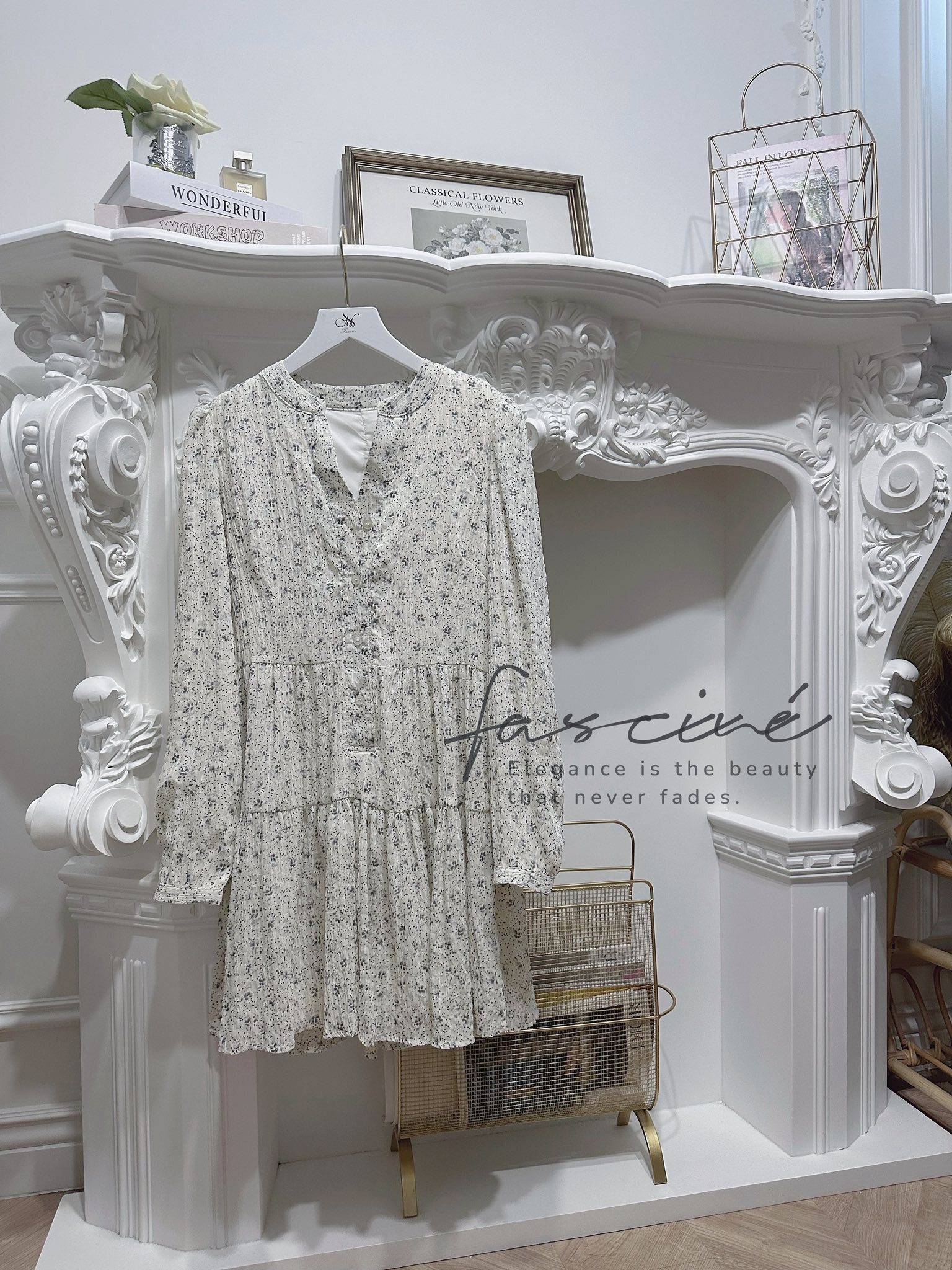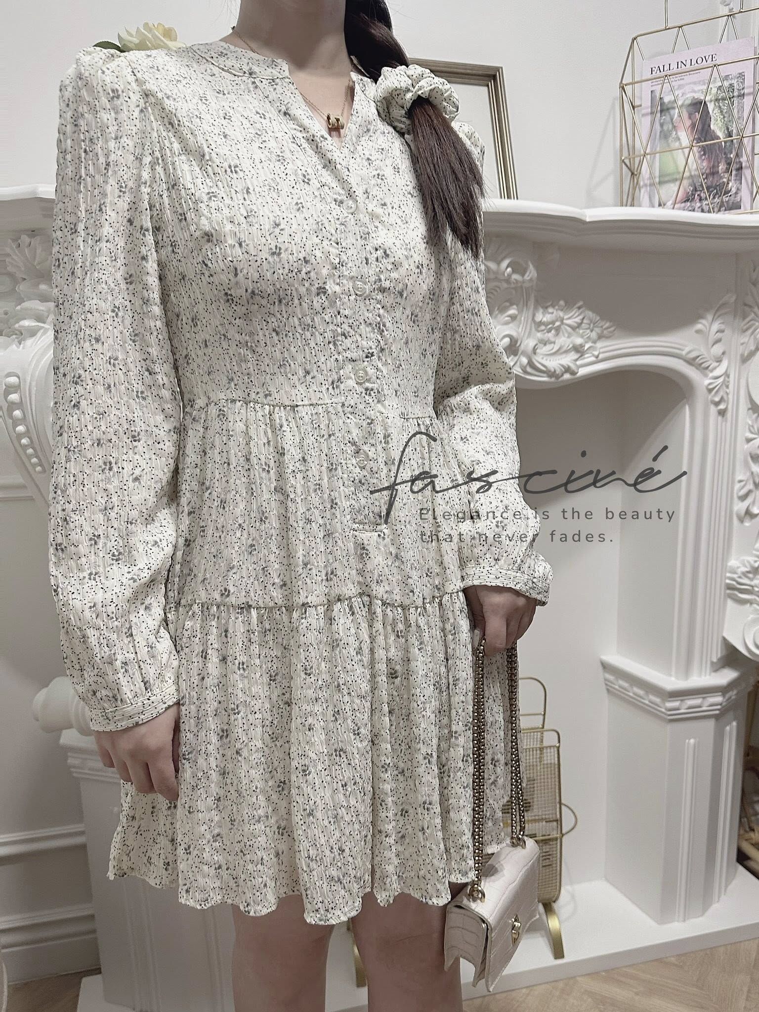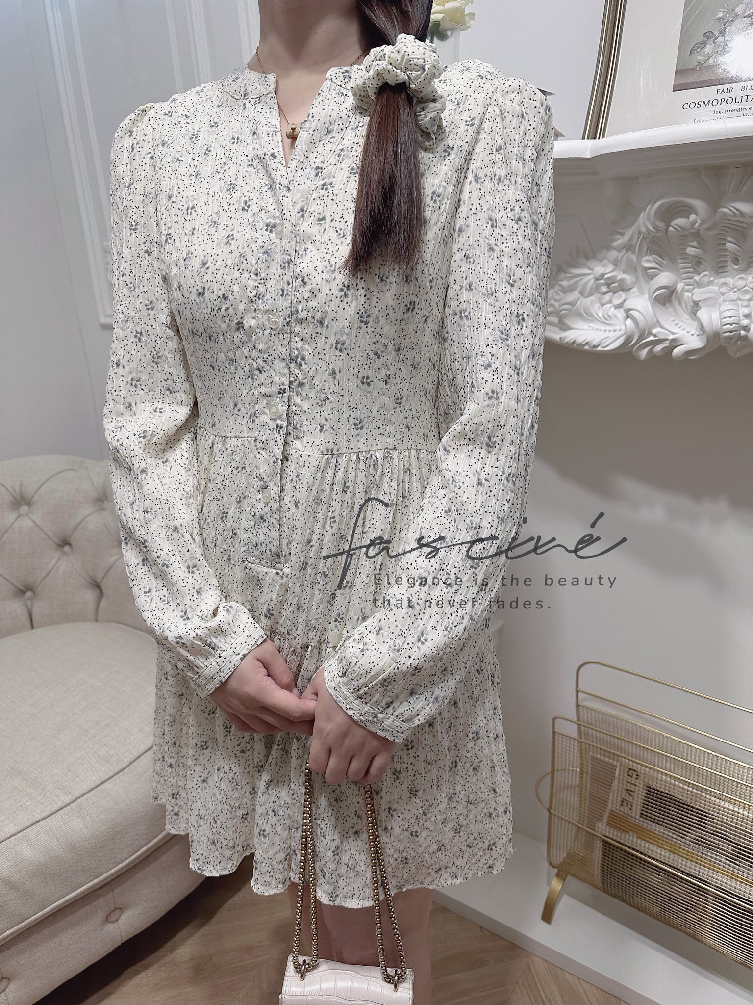 ✨𝒩𝑒𝓌 𝒜𝓇𝓇𝒾𝓋𝒶𝓁✨ (08T46-25) 法式氣質碎花百搭修身單排扣連衣裙(配同款髮圈)