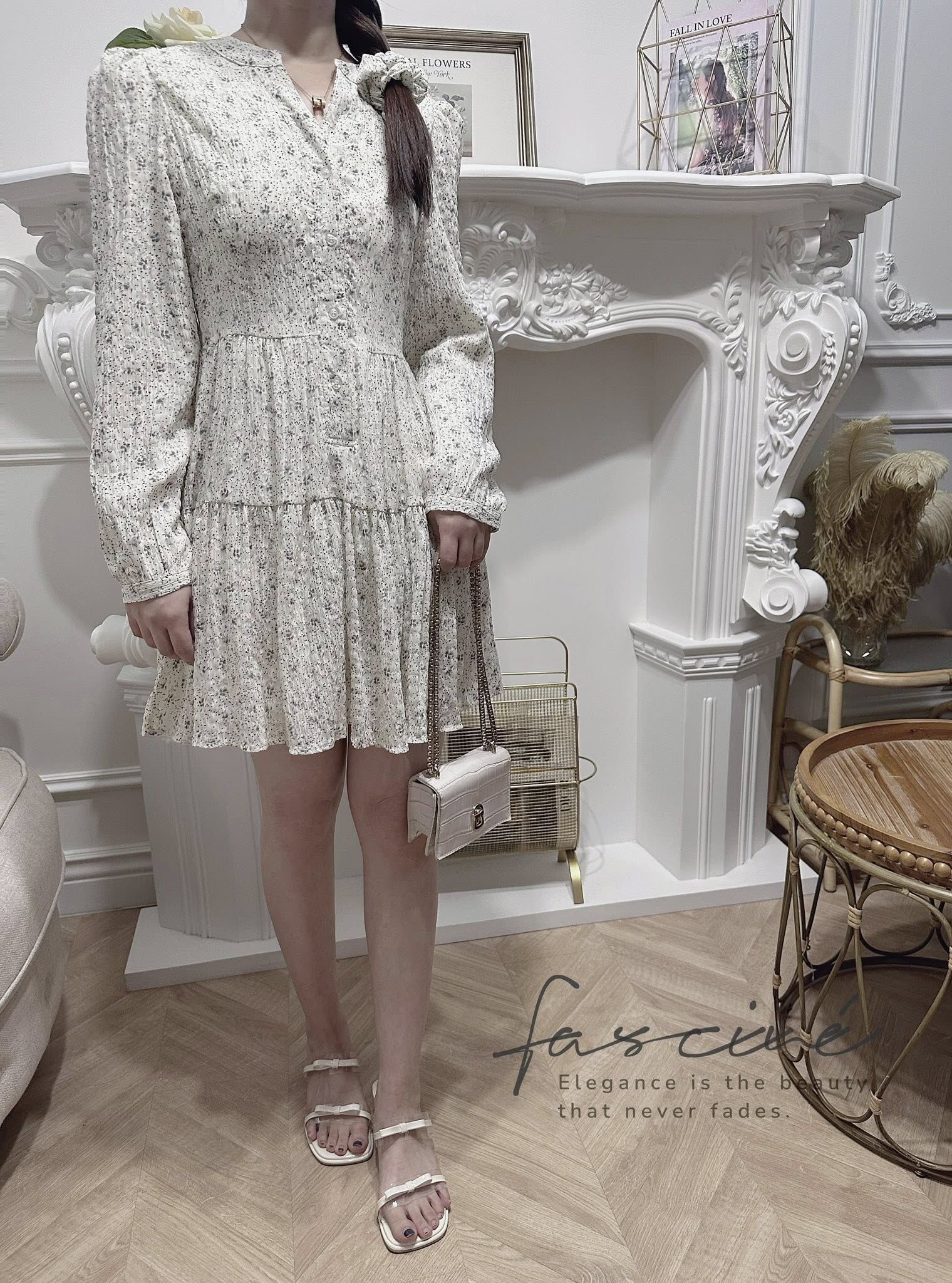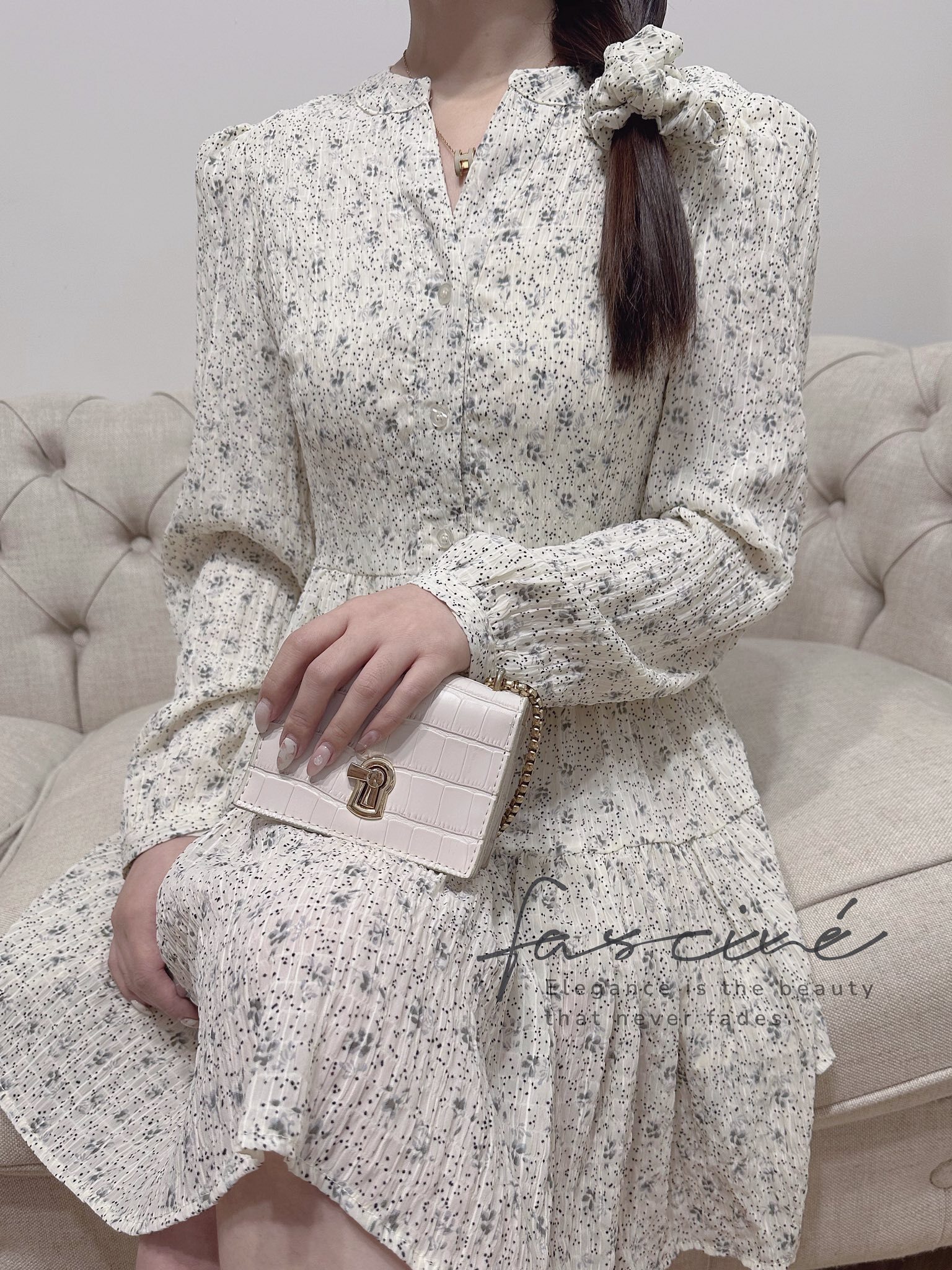 細緻小碎花布料,法式優雅氛圍感滿分,修身剪裁,襯托出纖細曲線 袖口微澎設計,巧妙修飾手臂線條,附同款髮圈,輕鬆完成整體穿搭小心機,輕鬆綁起頭髮,就能完整演繹一種「剛剛好」的法式日常。百搭長度,無論約會、上班或日常皆可輕鬆駕馭走在午後陽光裡,微風帶著花香,裙襬輕輕搖曳。