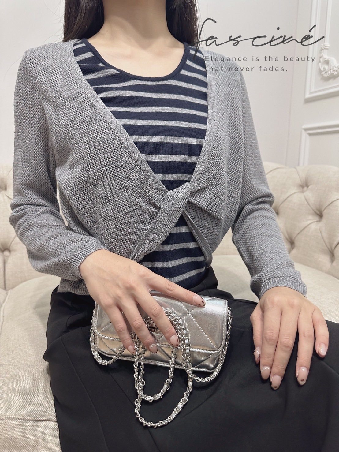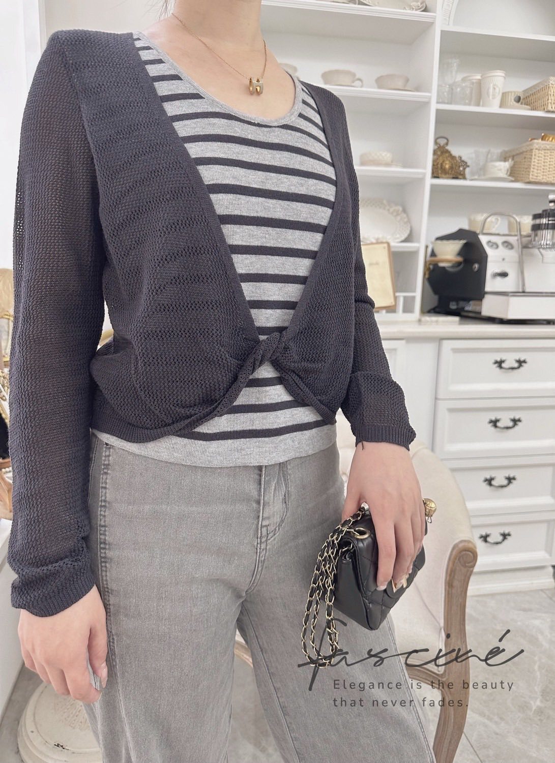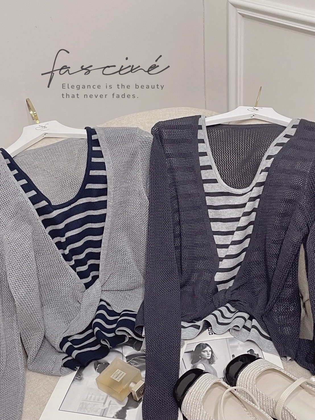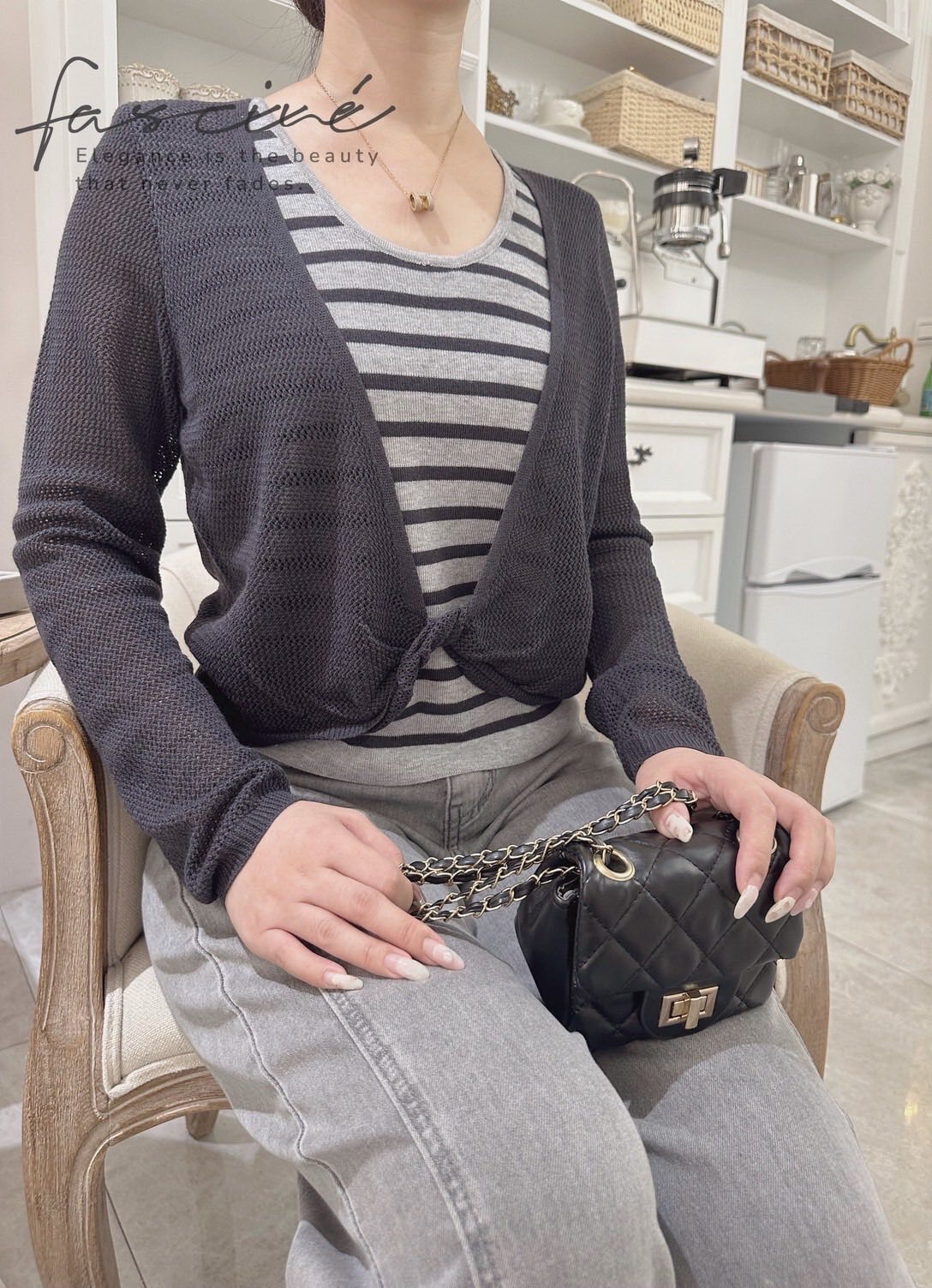 一件搞定條紋內搭與輕薄罩衫的俐落視覺,省時又有型 。前扭結設計自然收束腰腹線條,視覺上拉高比例,日常也能穿出精緻氣場 。透氣細針織親膚不悶,通勤冷氣房與日常出遊都輕鬆好搭,灰、藍兩色皆耐看。現在入手,簡單配長裙或牛仔就能完成優雅的法式日常 😻