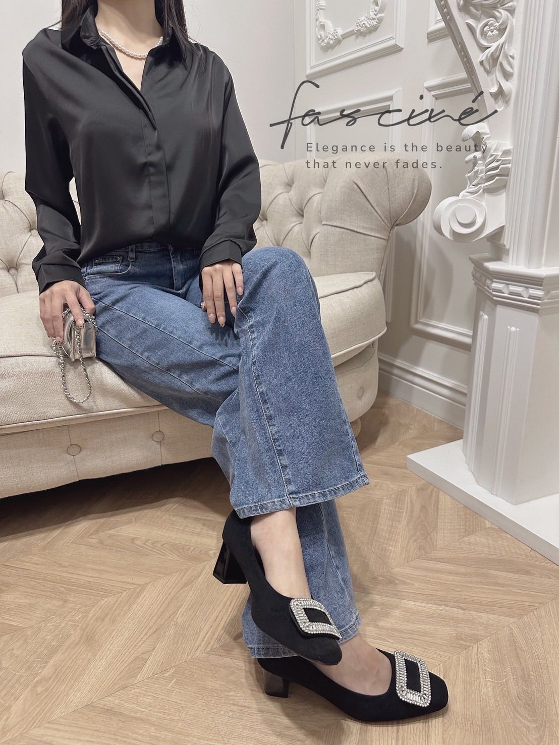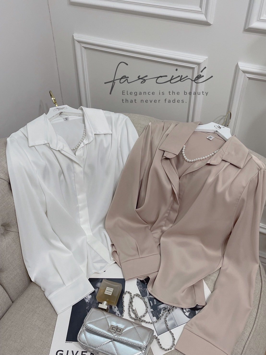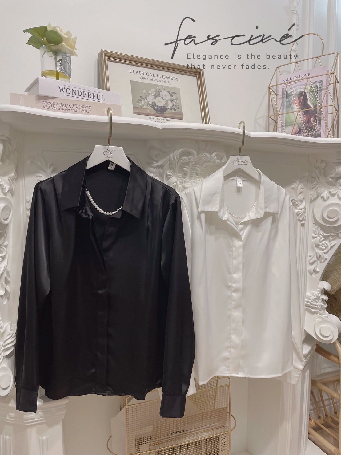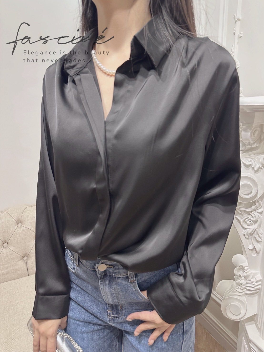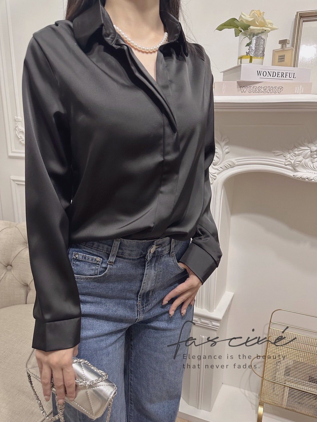 絲滑雪紡微光澤,V領修飾臉型;可拆珍珠鏈一秒切換優雅與極簡。隱形排釦與立體袖口,版型俐落不貼身,通勤約會一件搞定。
