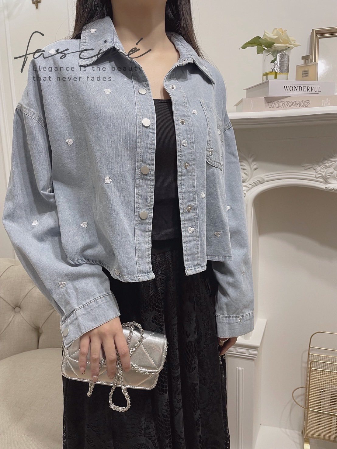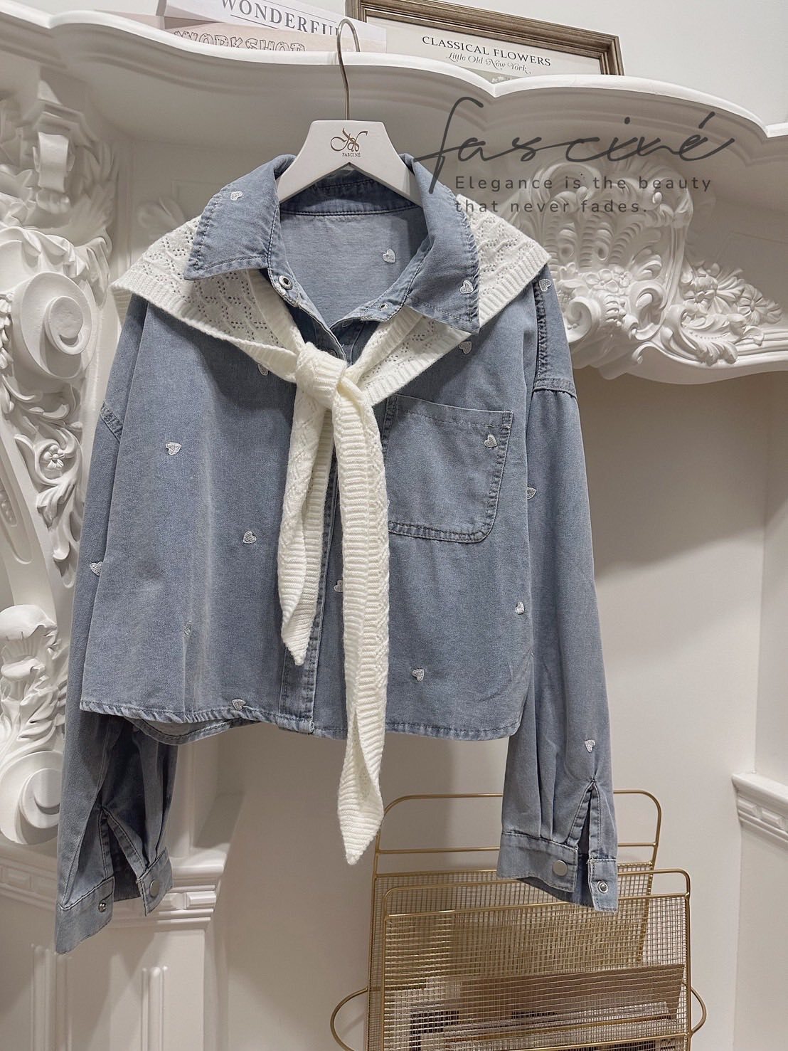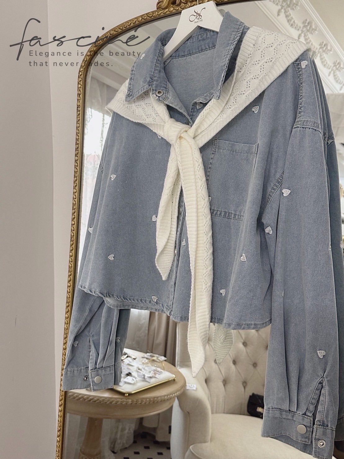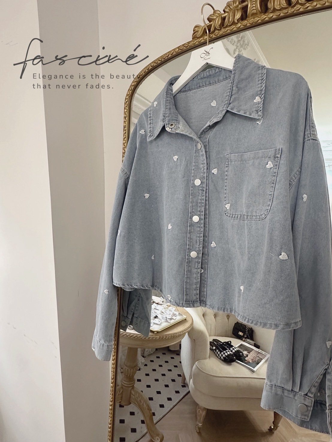 微短版修飾黃金比例,柔軟牛仔落下慵懶線條;滿版撞色小愛心精緻不膩,單穿有型、當外罩更顯層次,從通勤到約會都能一鍵心動