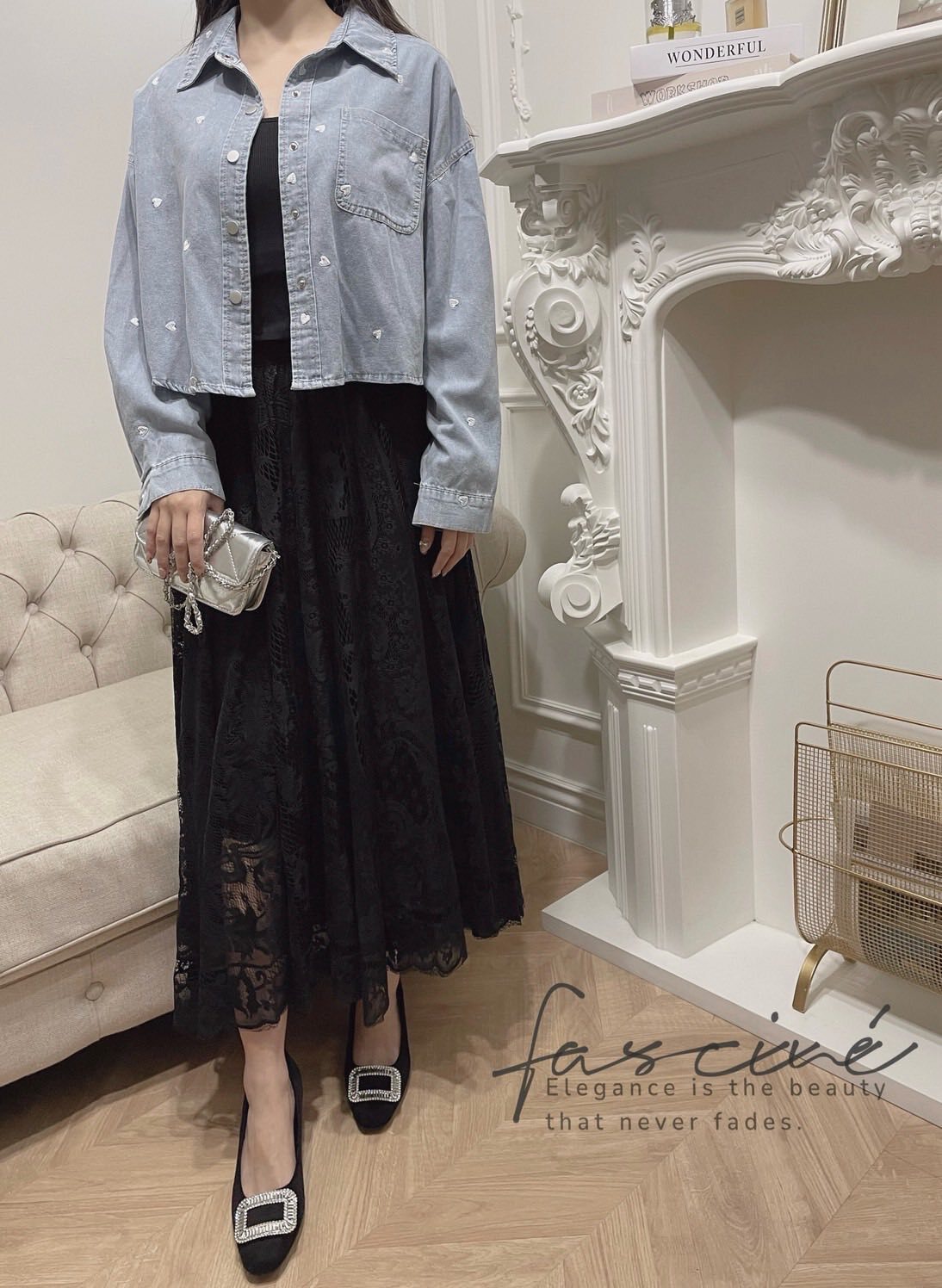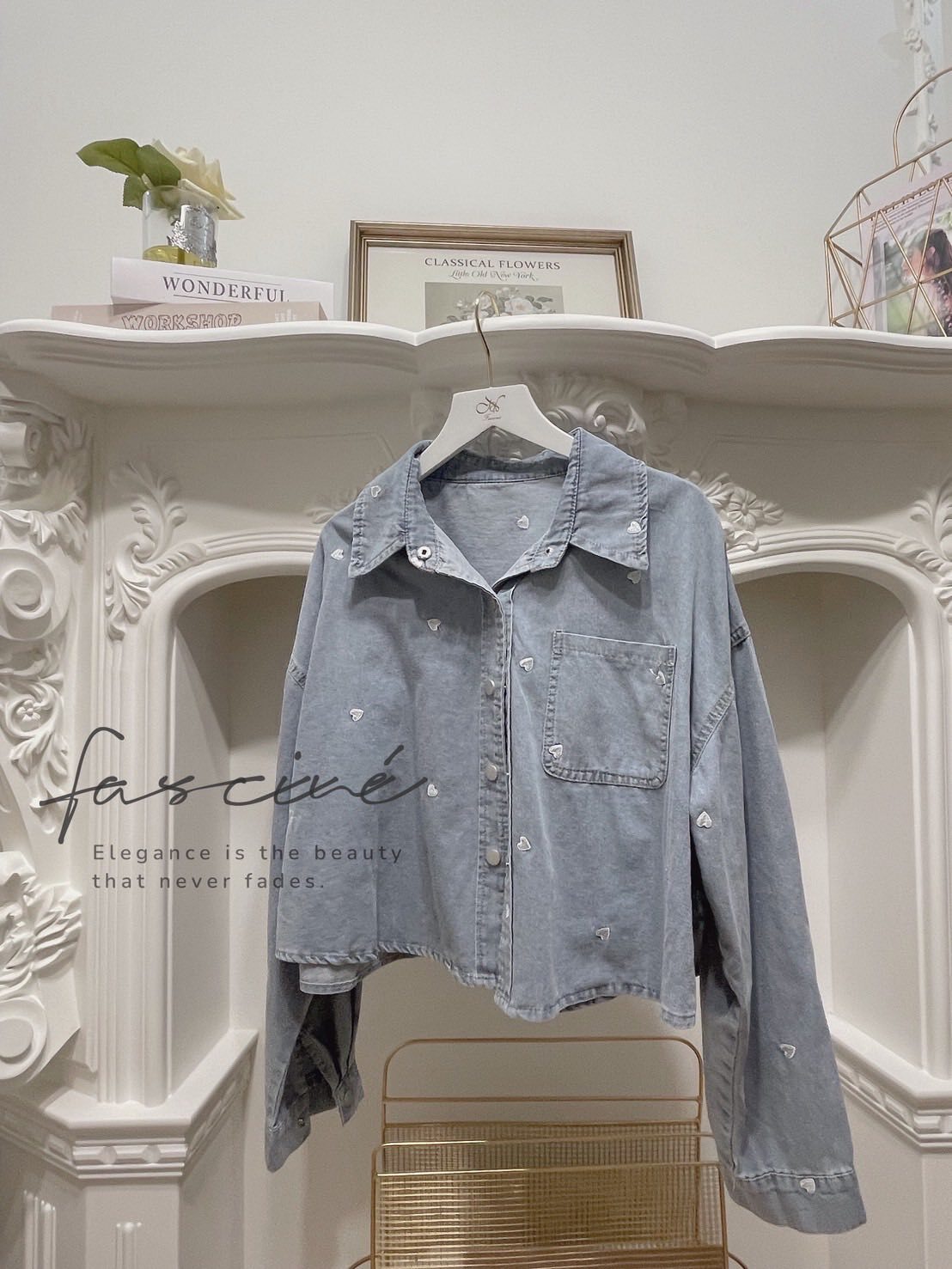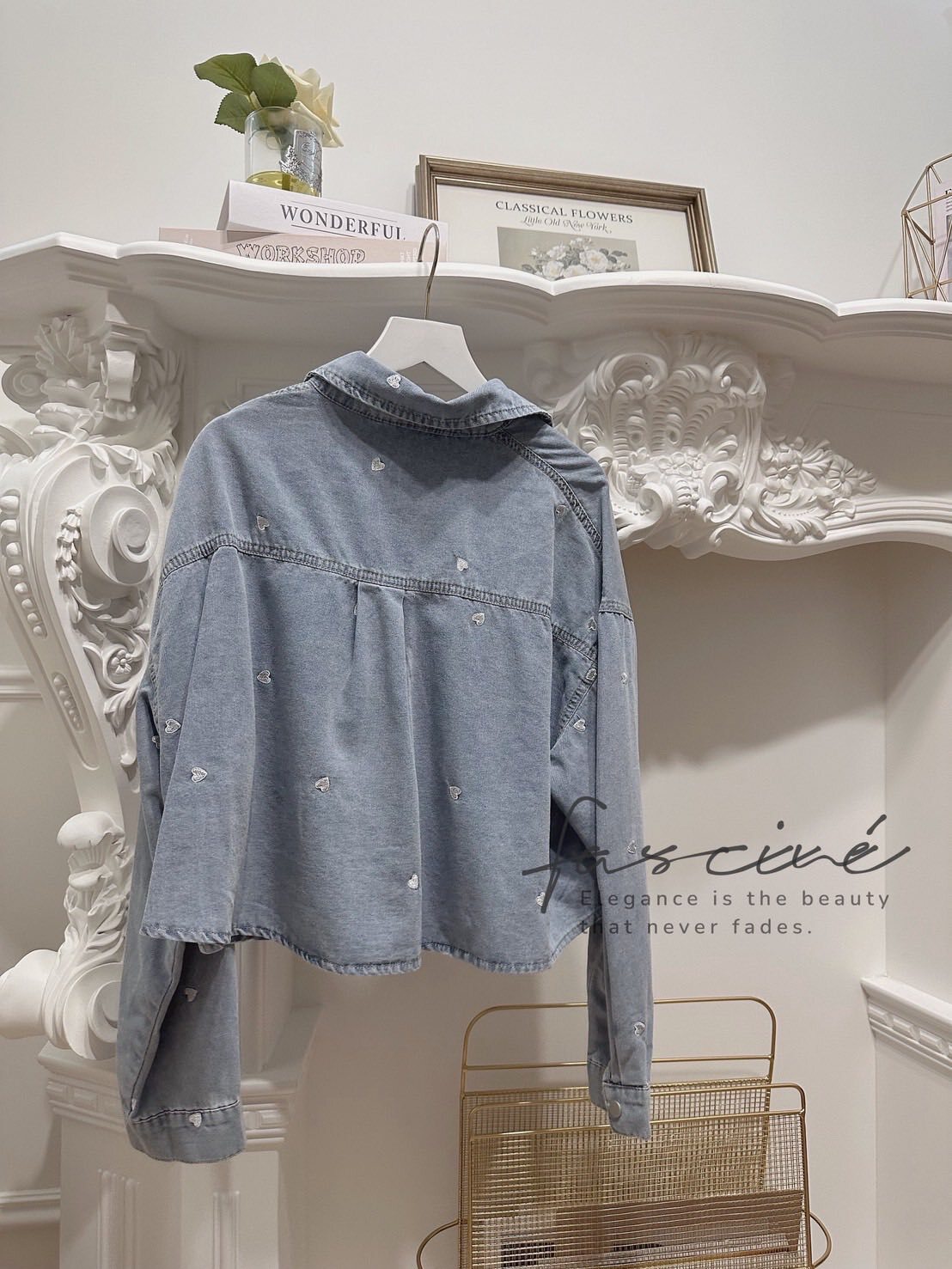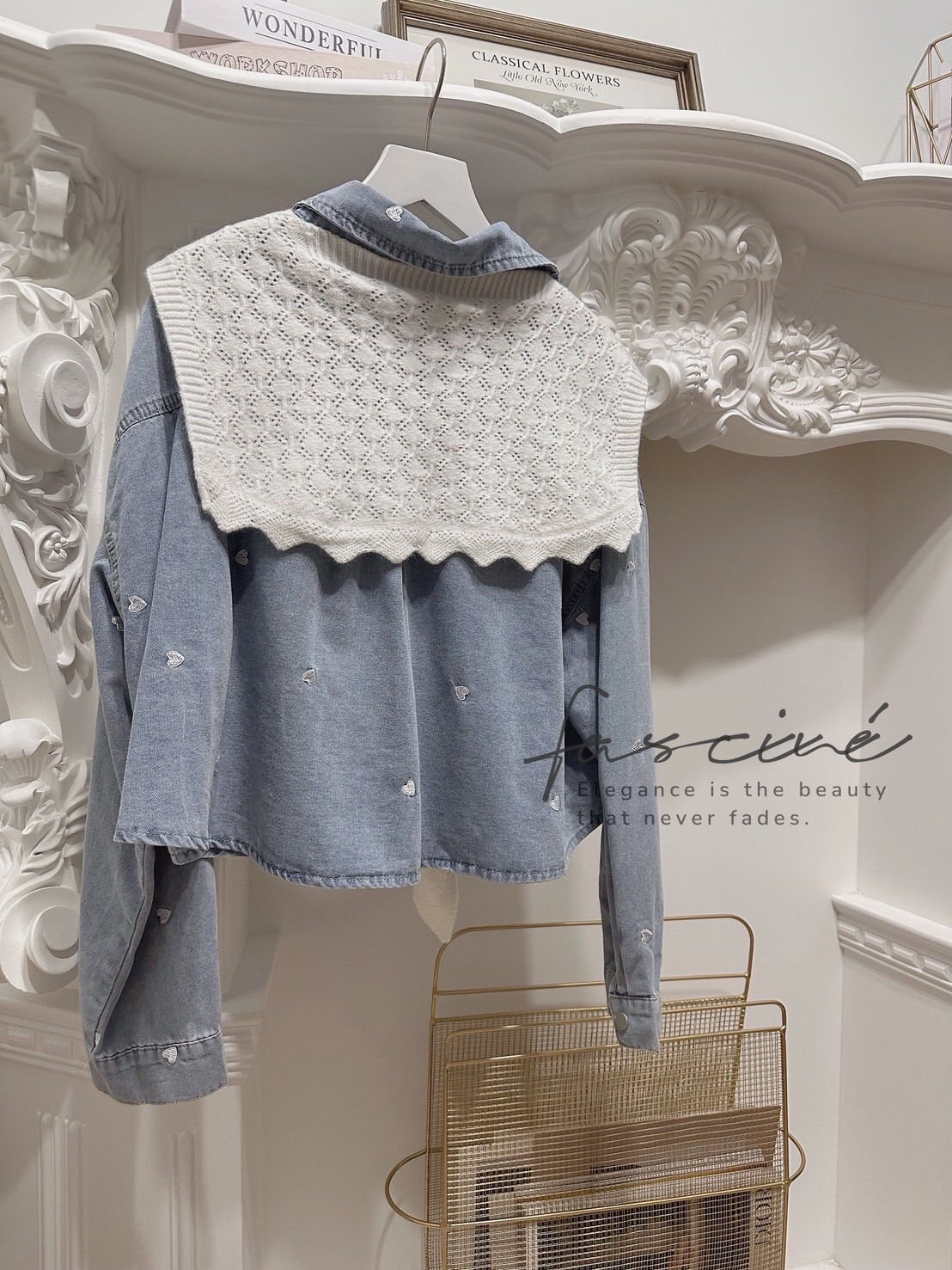 微短版修飾黃金比例,柔軟牛仔落下慵懶線條;滿版撞色小愛心精緻不膩,單穿有型、當外罩更顯層次,從通勤到約會都能一鍵心動