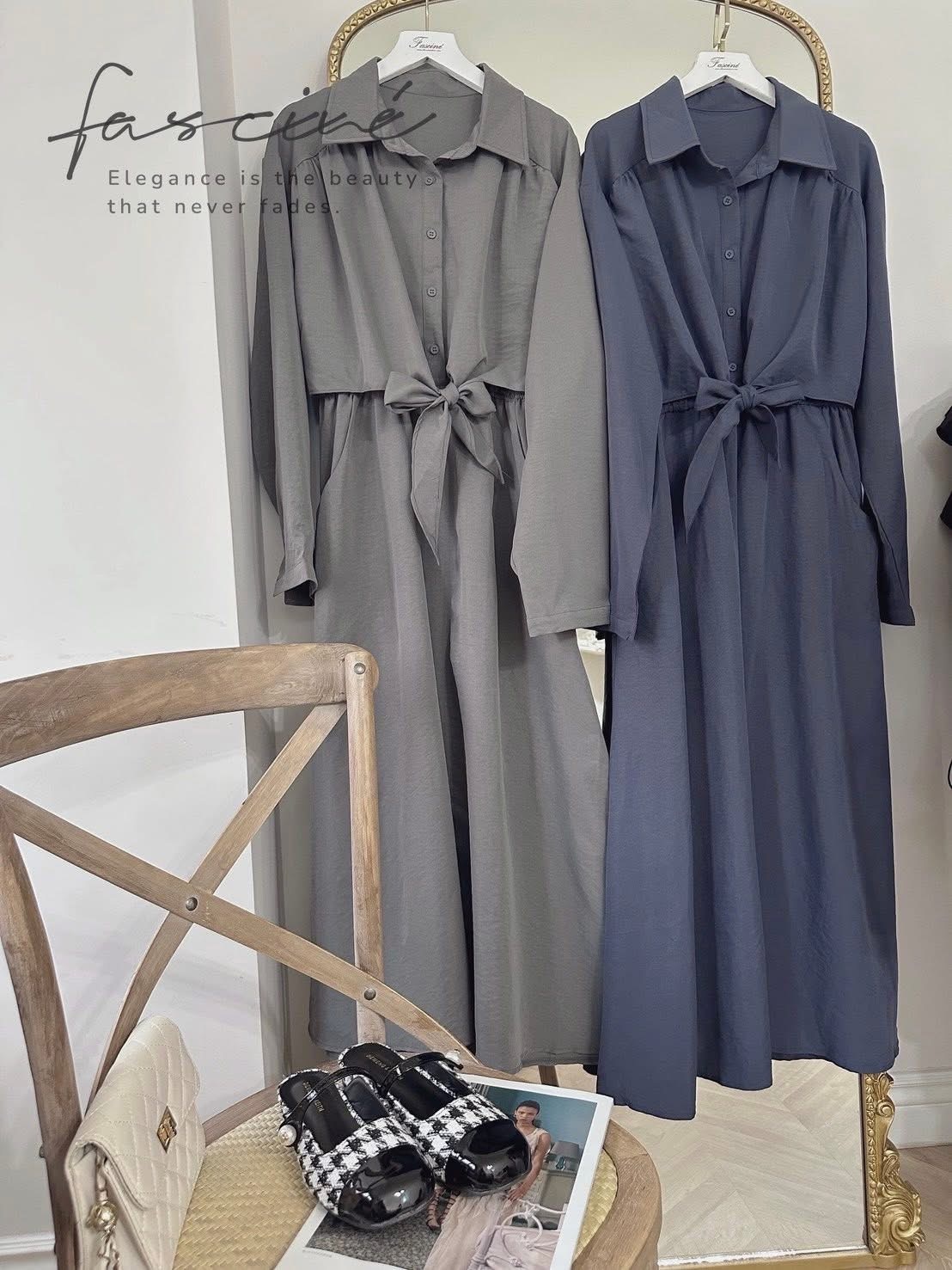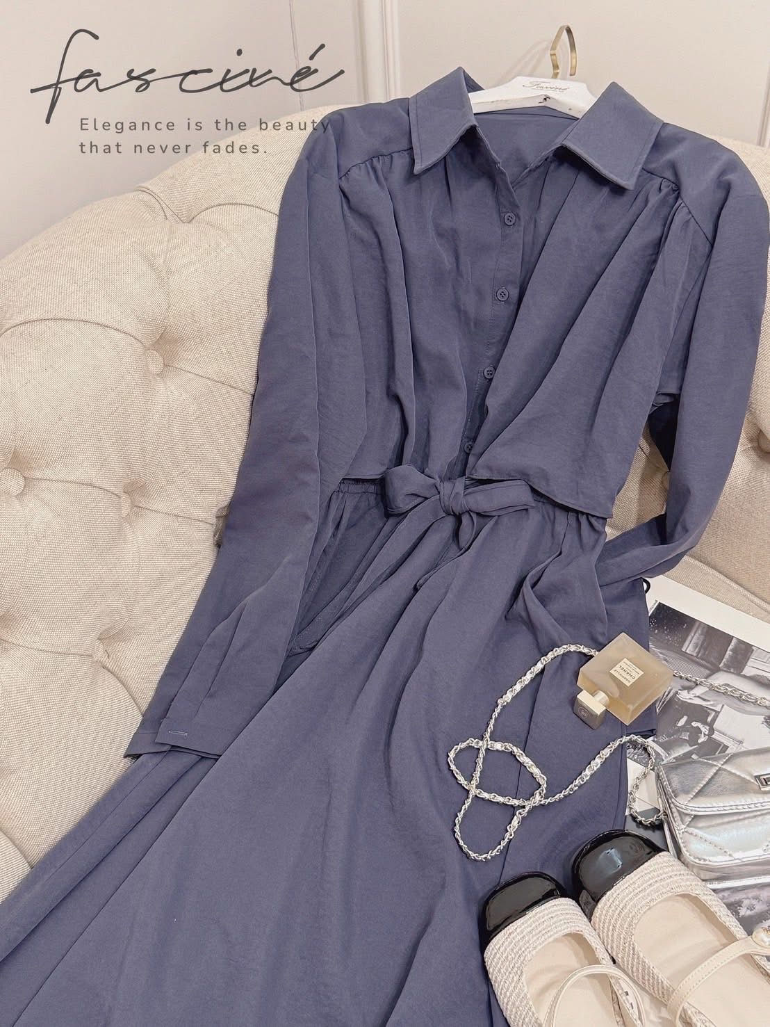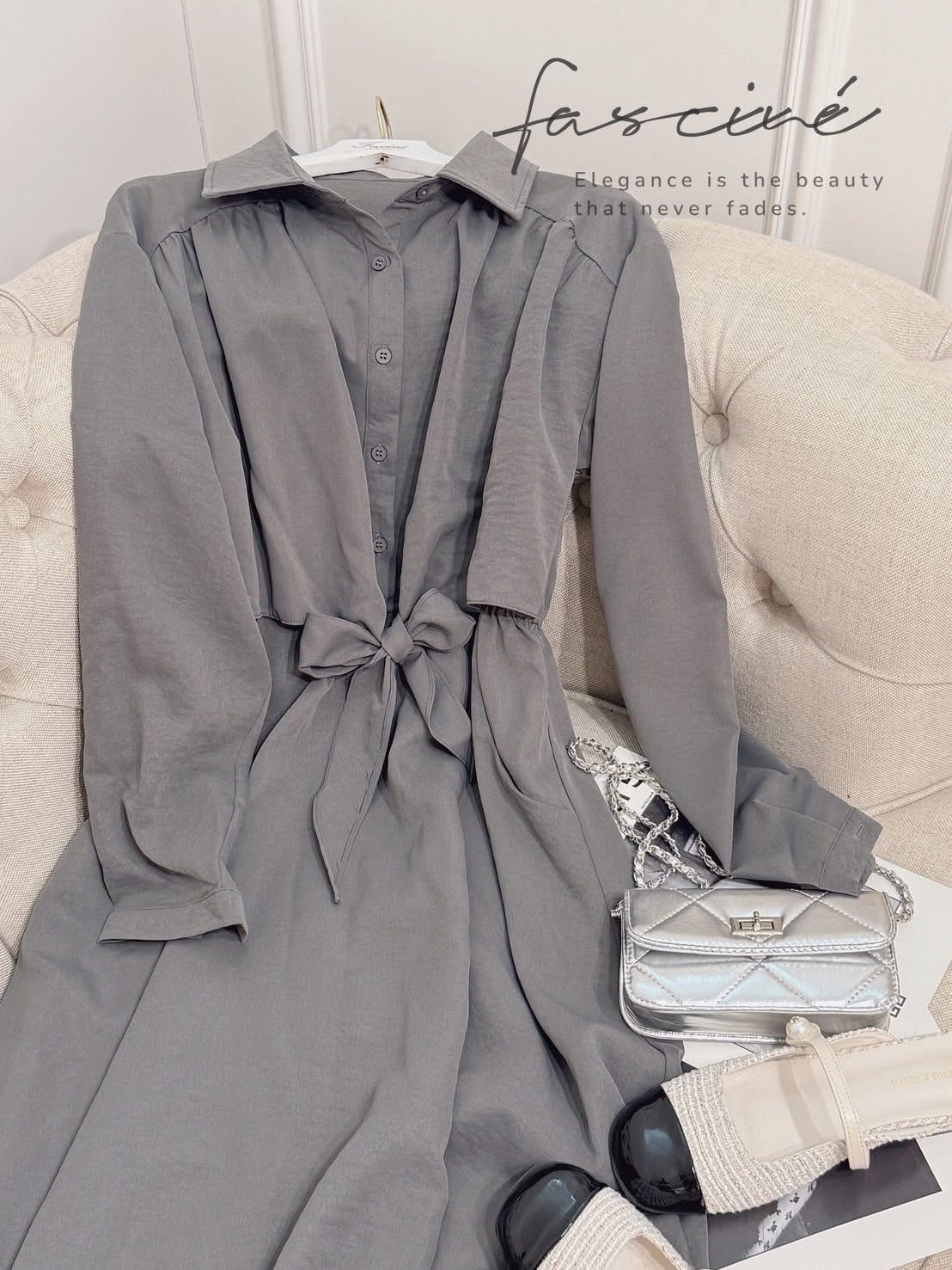 一結成形的前綁帶,俐落收腰拉長比例,優雅與幹練同時在線。襯衫領與排釦修飾臉部線條,A字裙襬輕盈擺動,通勤約會一件搞定。建議搭配尖頭鞋+細金耳環+米色小方包,咖灰藍皆能穿出都會優雅。