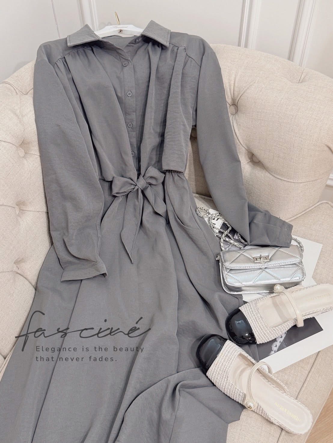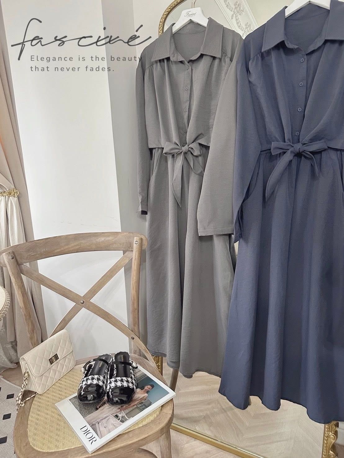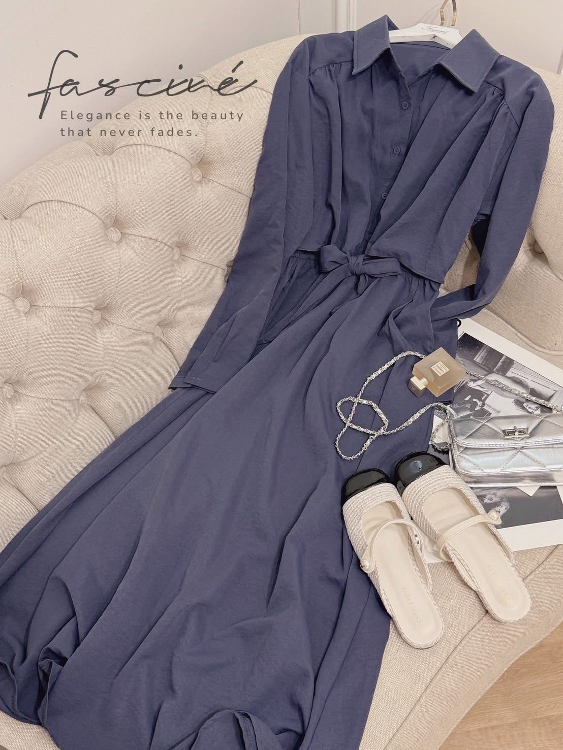 一結成形的前綁帶,俐落收腰拉長比例,優雅與幹練同時在線。襯衫領與排釦修飾臉部線條,A字裙襬輕盈擺動,通勤約會一件搞定。建議搭配尖頭鞋+細金耳環+米色小方包,咖灰藍皆能穿出都會優雅。