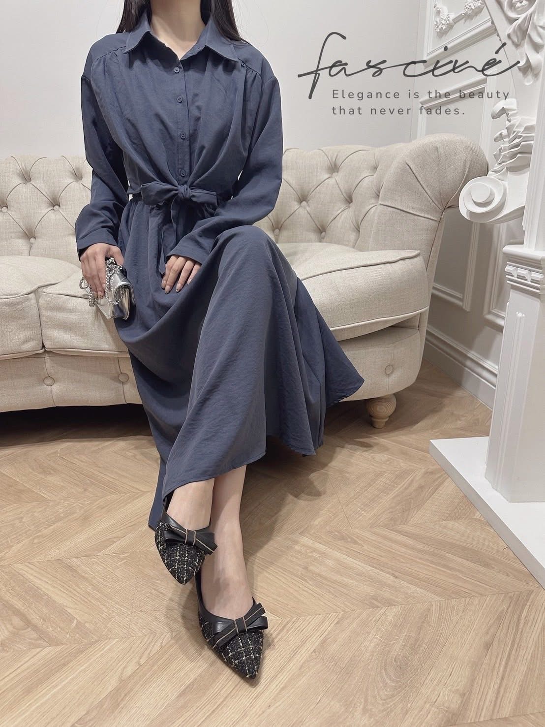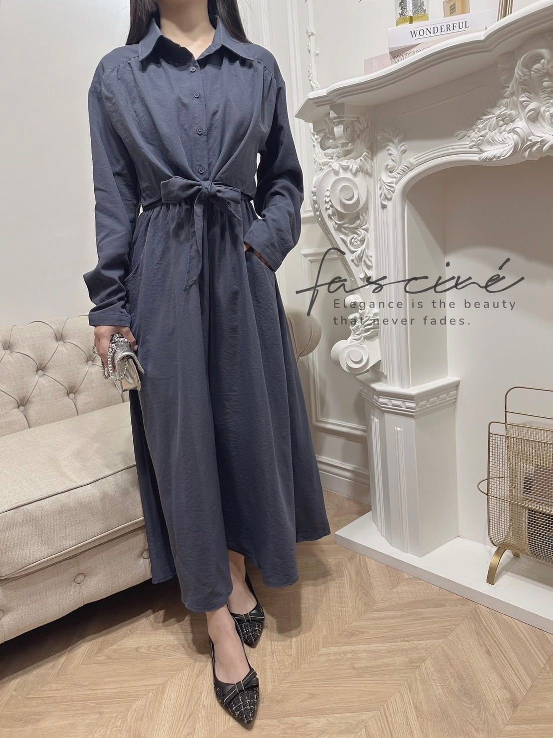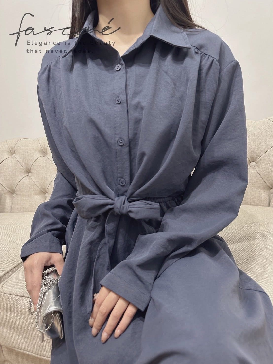 (10T23-25B)法式前綁帶設計收腰襯衫造型長洋