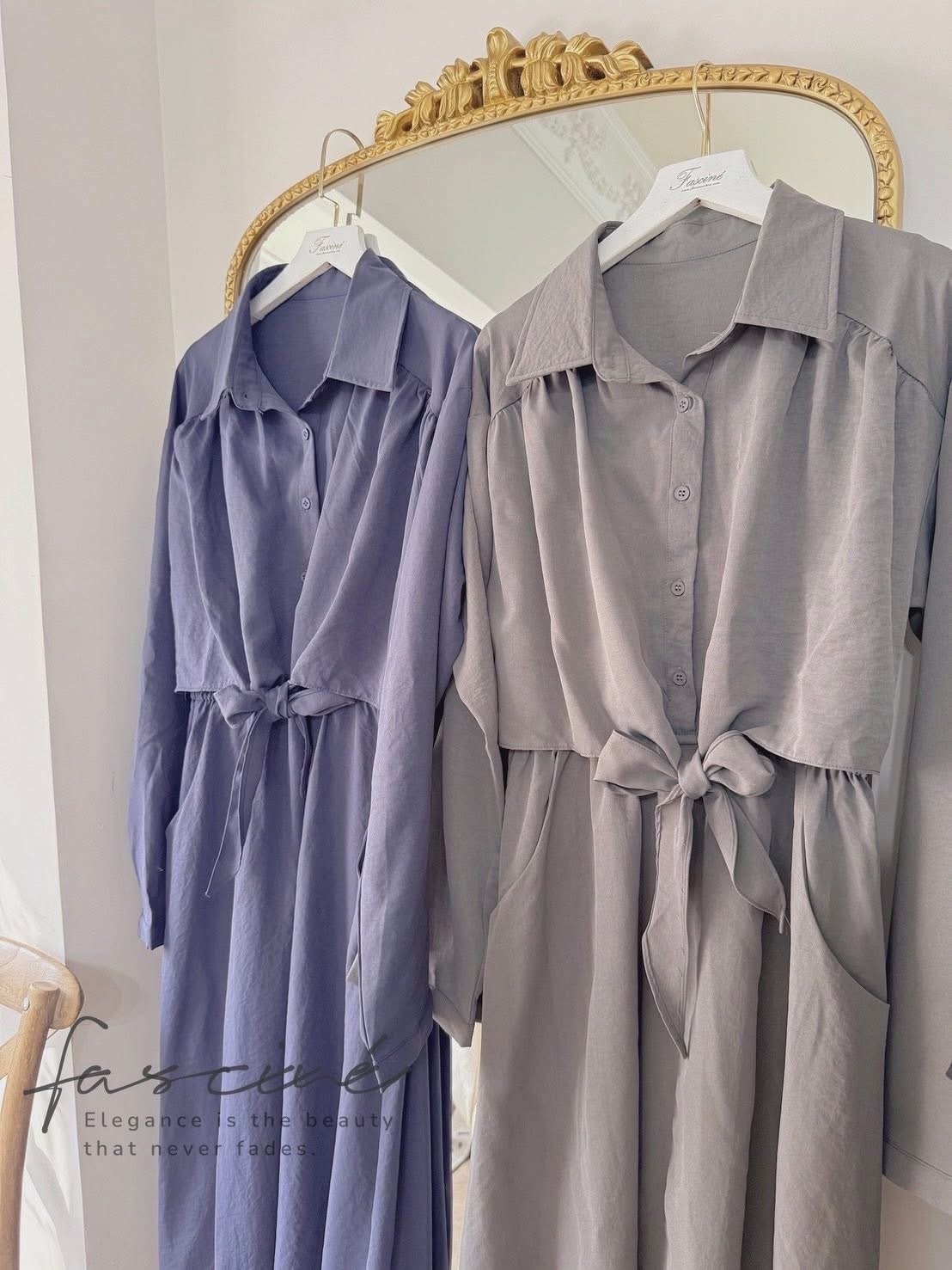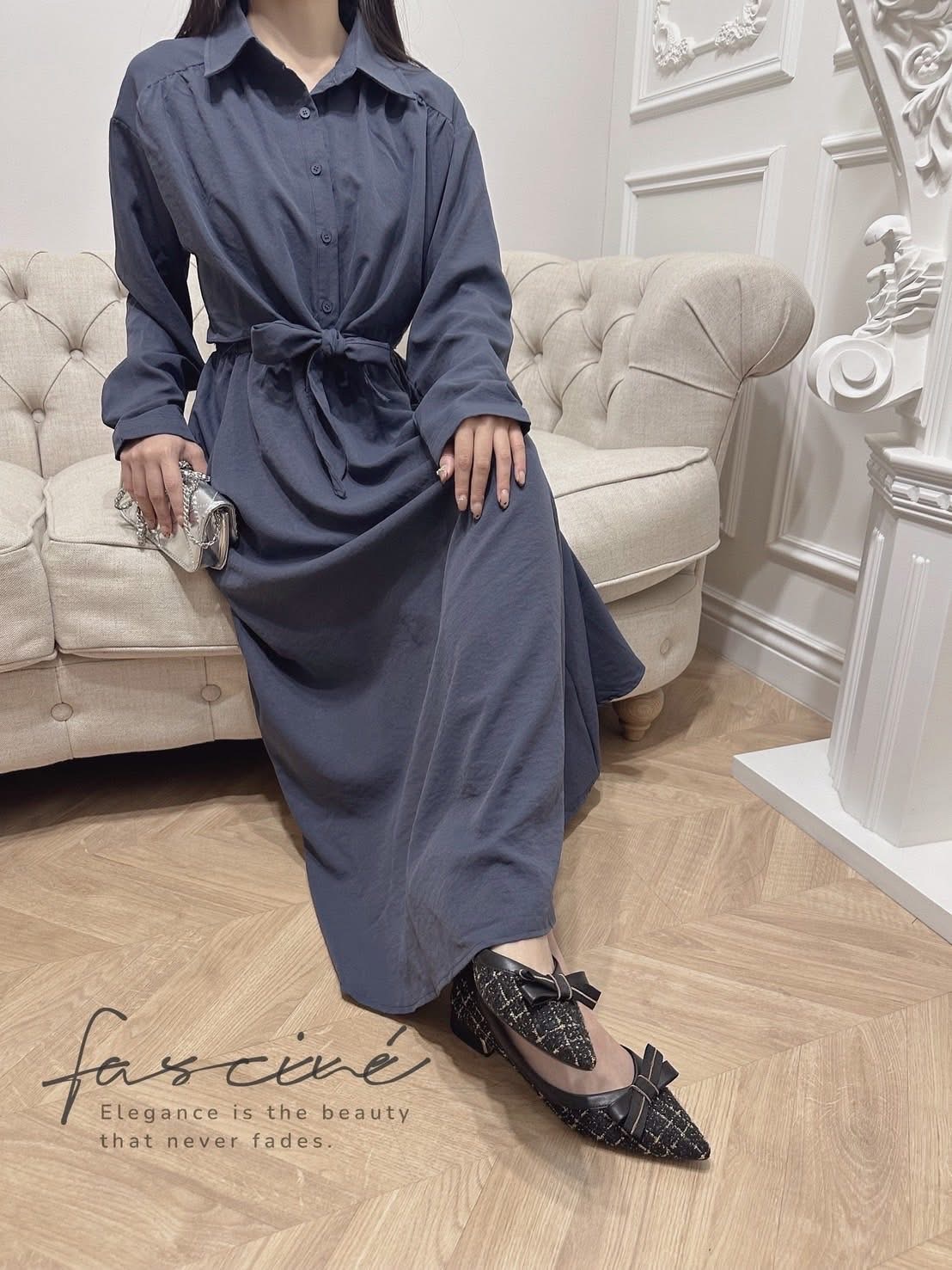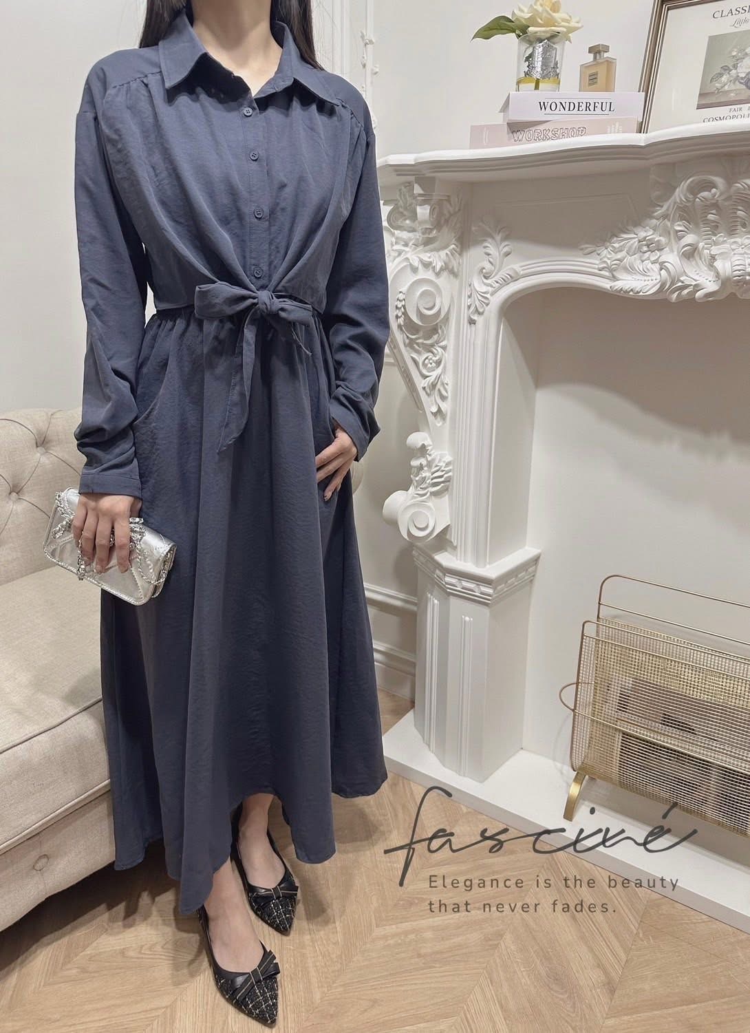 (10T23-25B)法式前綁帶設計收腰襯衫造型長洋