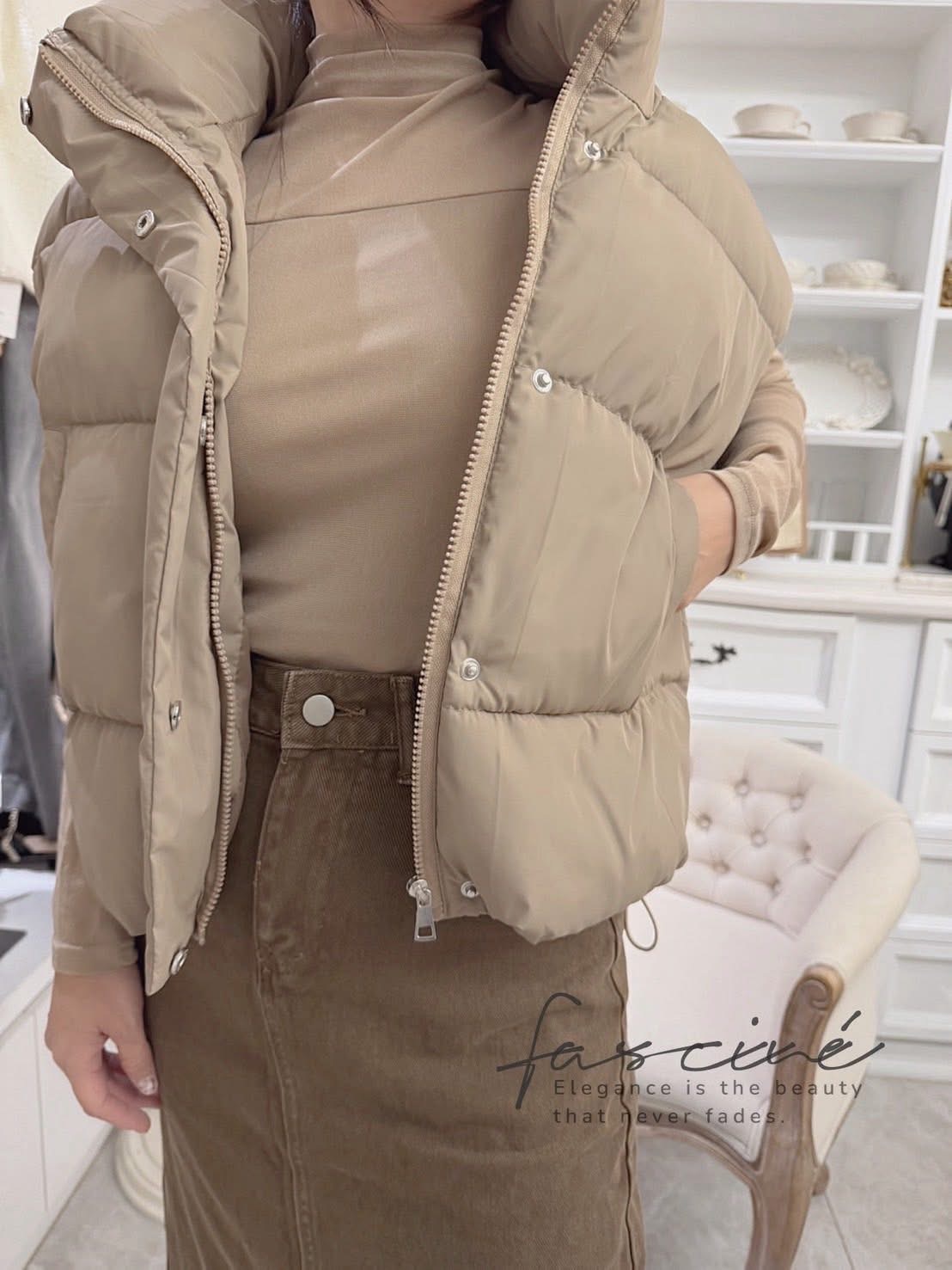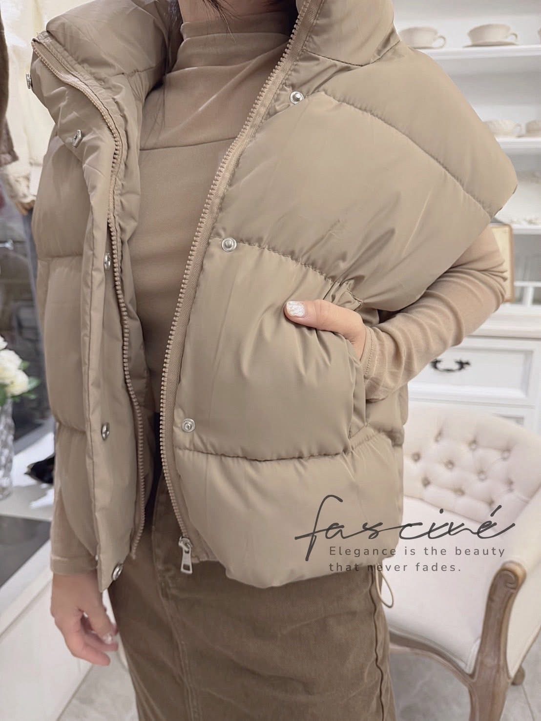 輕量蓬鬆鋪棉結合小立領與按扣門襟,暖度在線,時尚俐落短版比例拉高腰線,兩側口袋實用又保暖。下擺可調繩設計,微收輪廓更俐落,通勤與週末皆百搭。