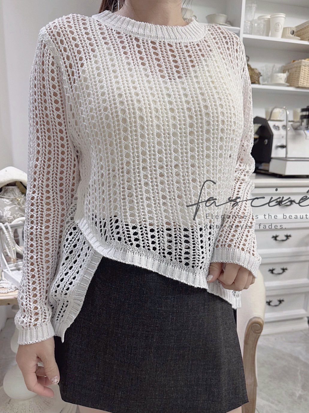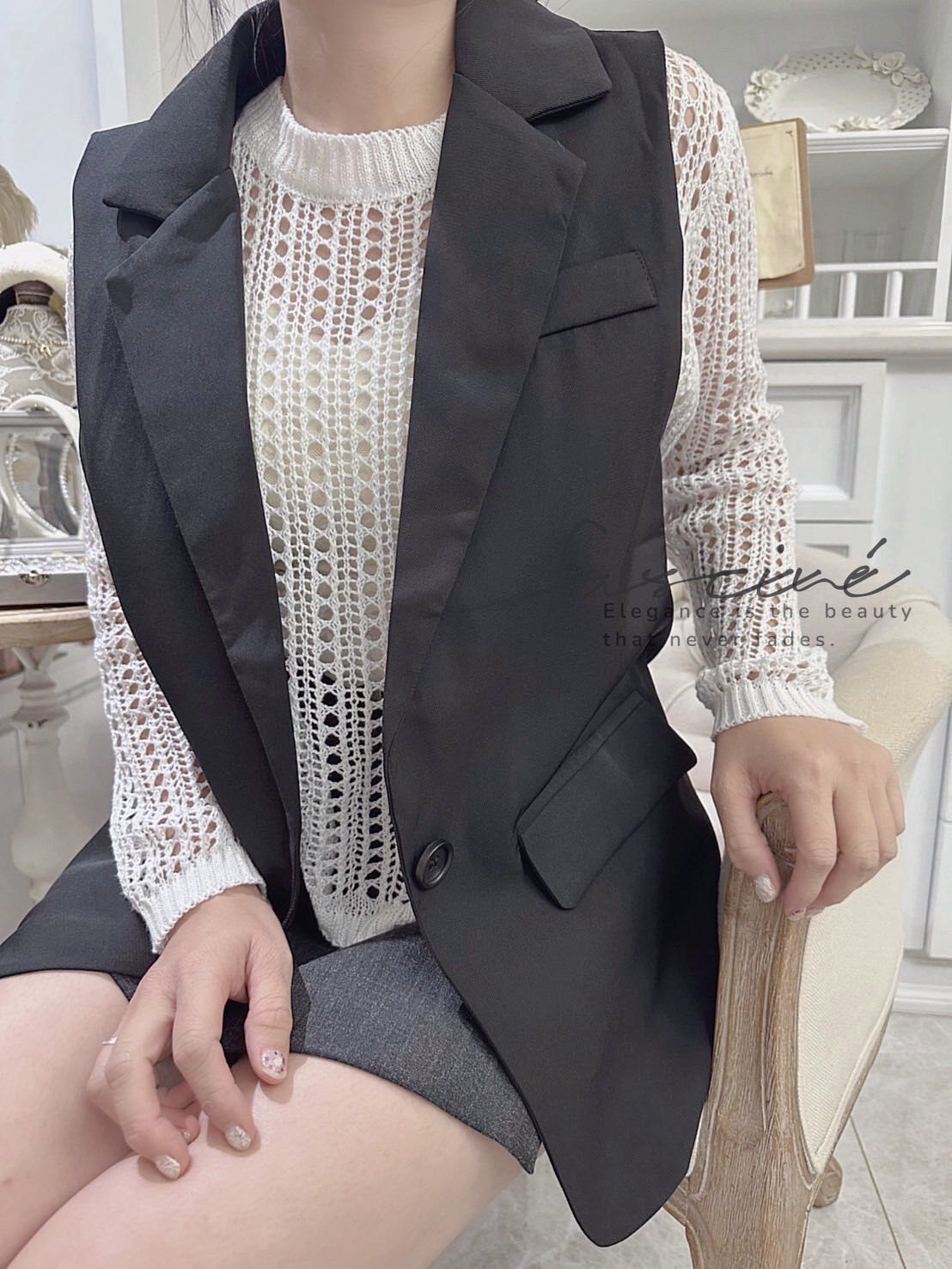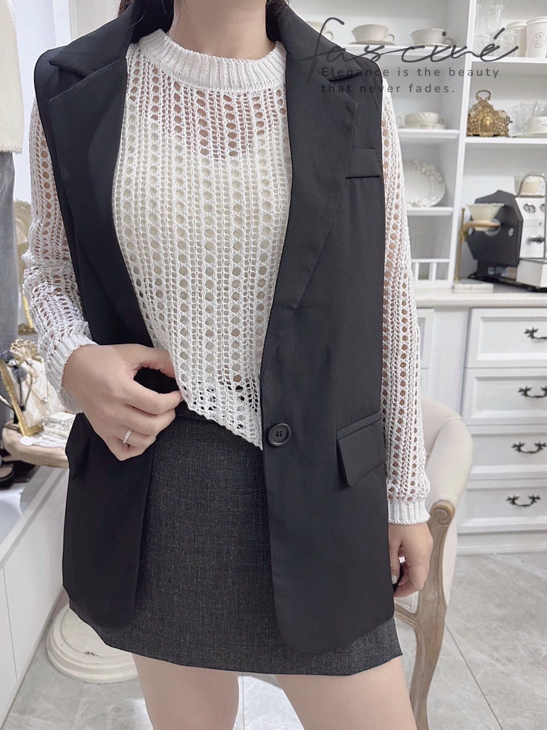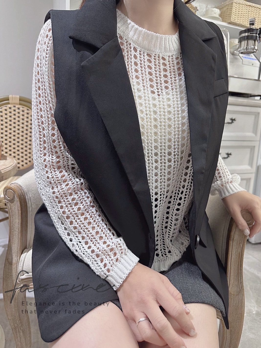 (10T80-25B)法式不規則時尚鏤空針織上衣(兩件式)