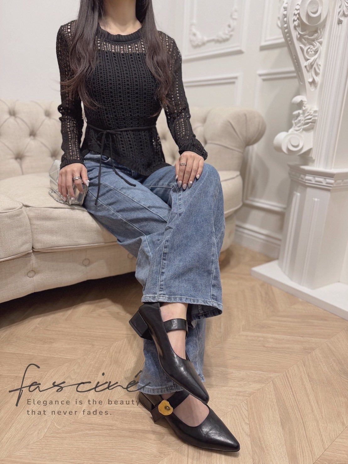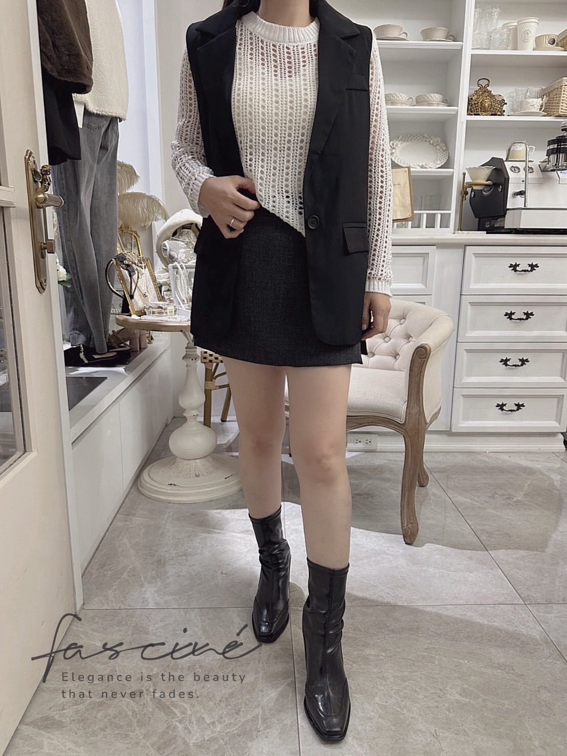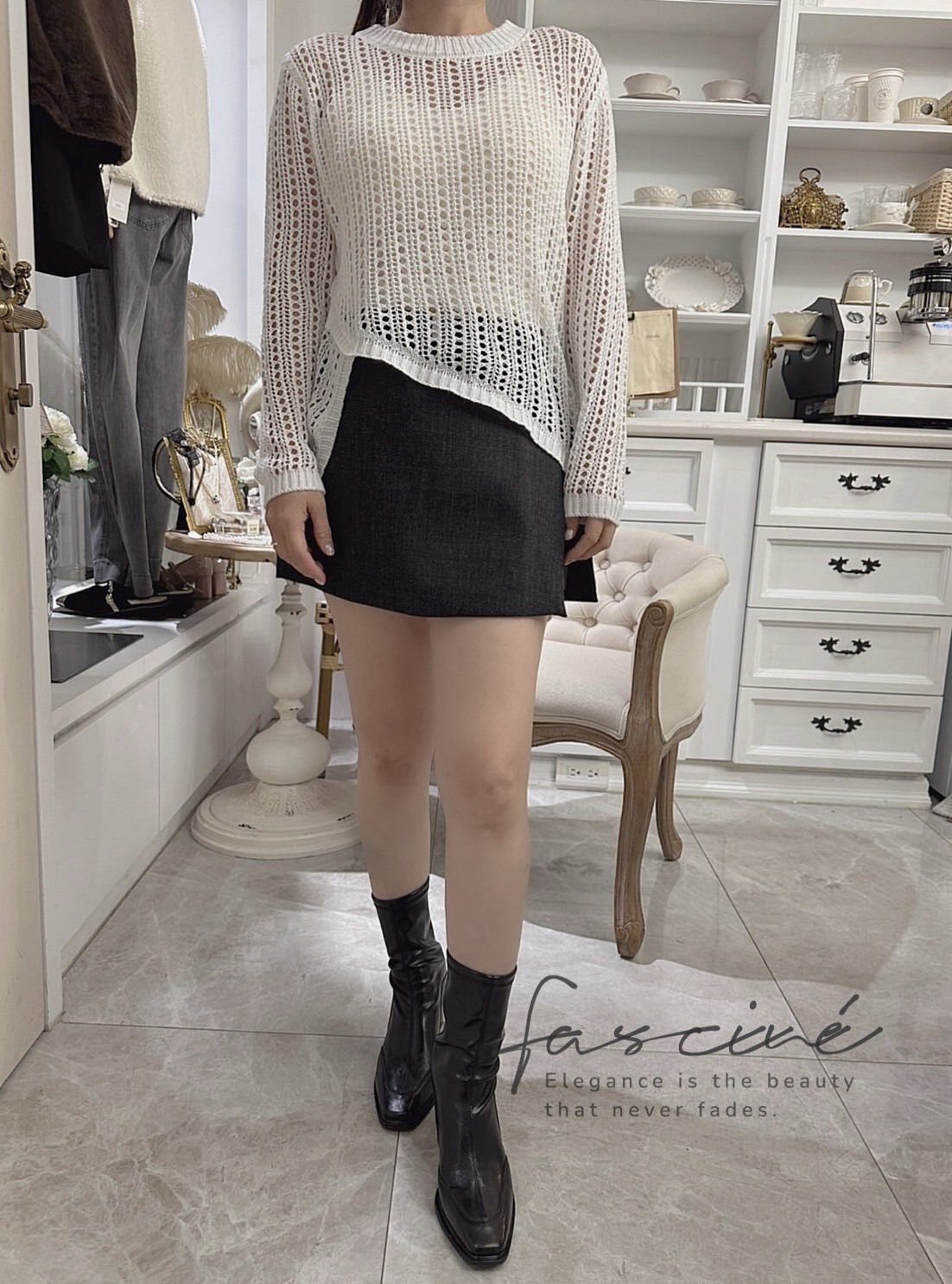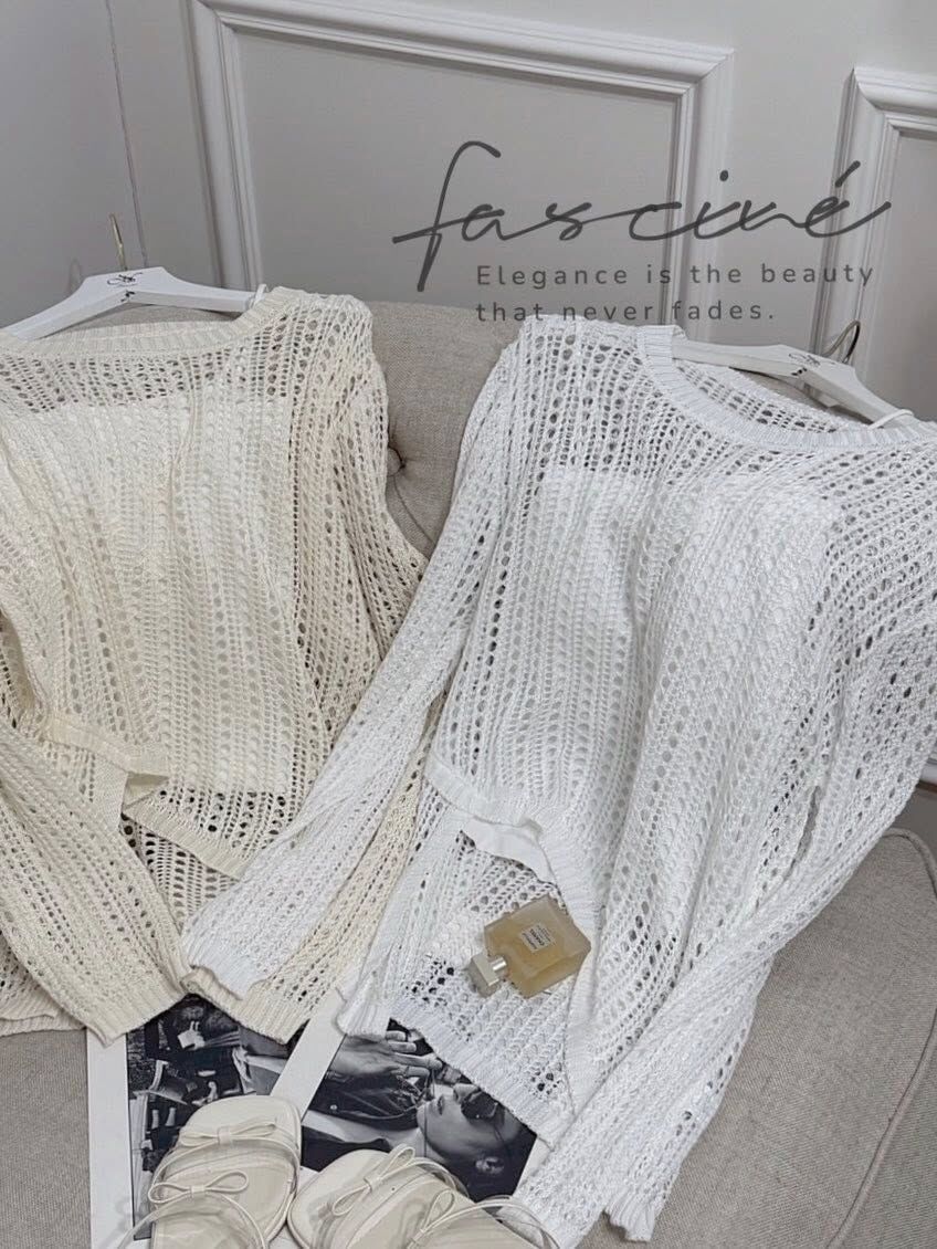 (10T80-25B)法式不規則時尚鏤空針織上衣(兩件式)