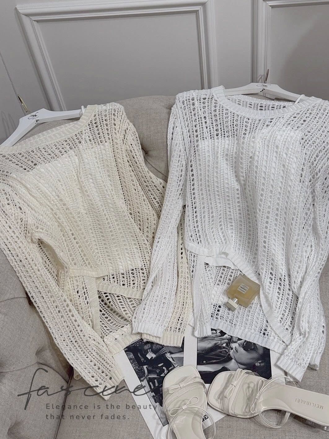鏤空織紋勾勒輕盈層次,微透膚光感在步伐間若隱若現,恰到好處的性感與優雅。 可拆綁帶自由收束腰身,放鬆是慵懶度假,繫起即顯曲線與比例,圓領與柔彈混紡,四季皆可單穿或內搭。輕薄不悶、袖口微蓬修飾手臂,從辦公到約會一件搞定。