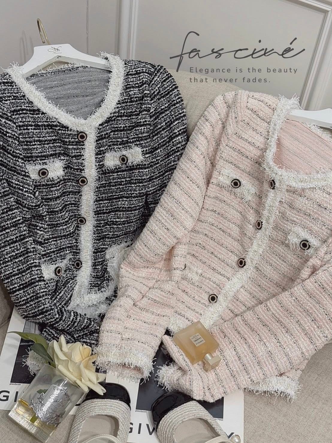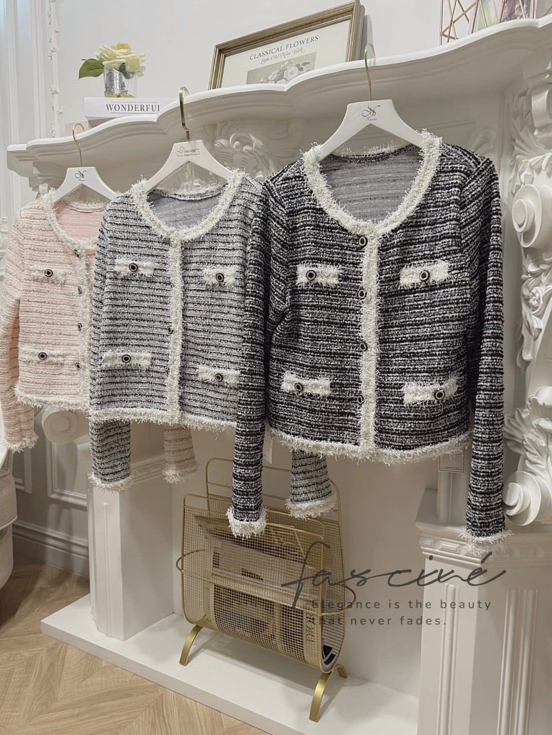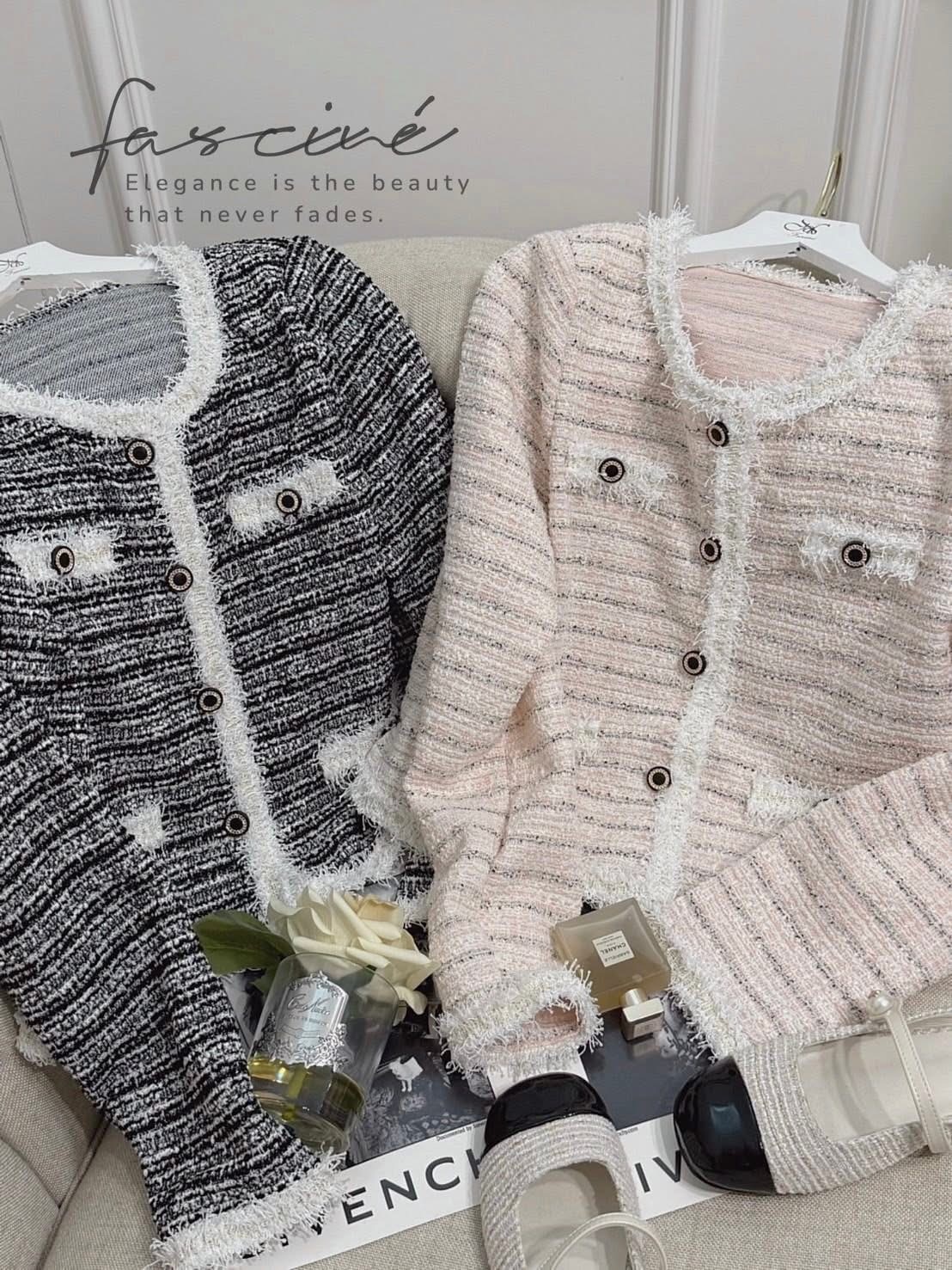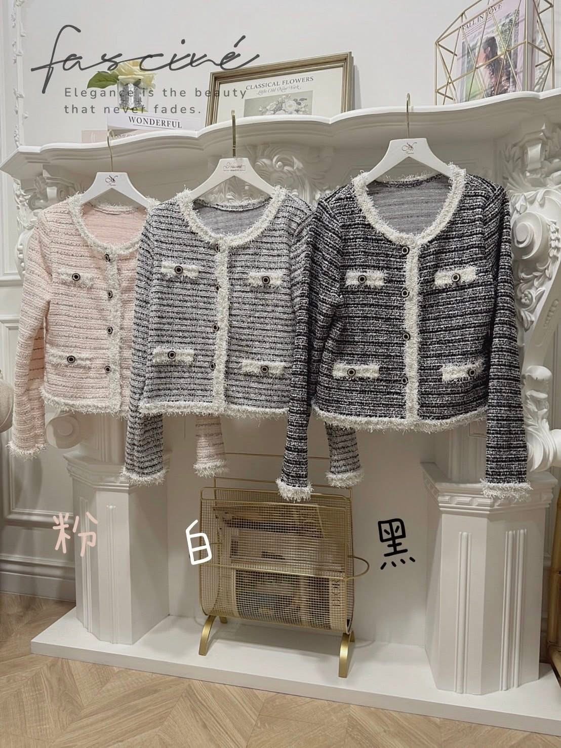 以細膩粗花呢交織立體紋理,配圓領修身剪裁與撞色毛毛邊,優雅中帶俐落,瞬間放大精緻氛圍感。復古感金邊鈕釦提升層次,觸感柔軟不刺膚、厚薄適中,通勤約會一件到位。粉、淺灰、深黑三色,百搭牛仔、短裙或寬褲皆能穿出高級小香風。