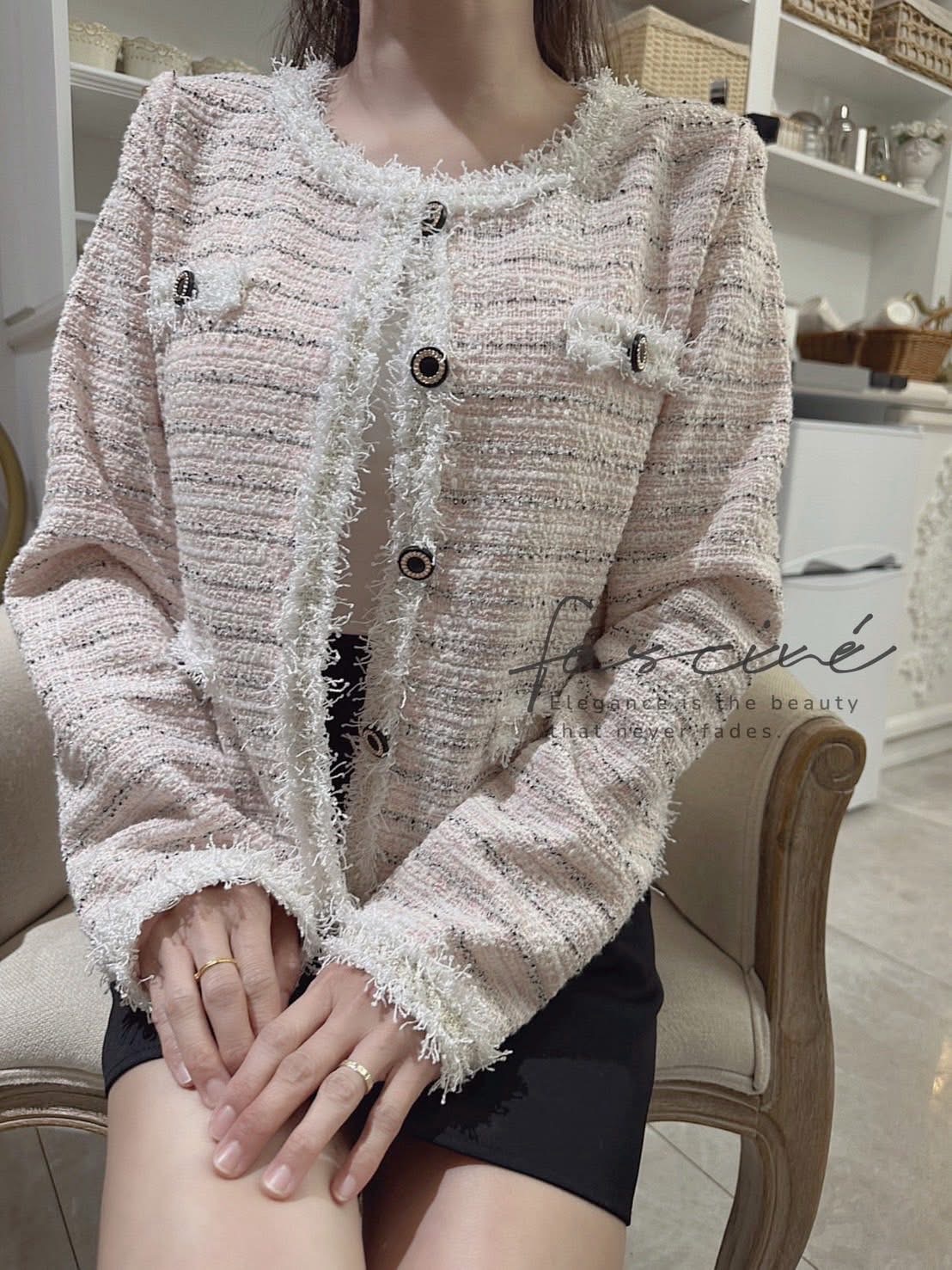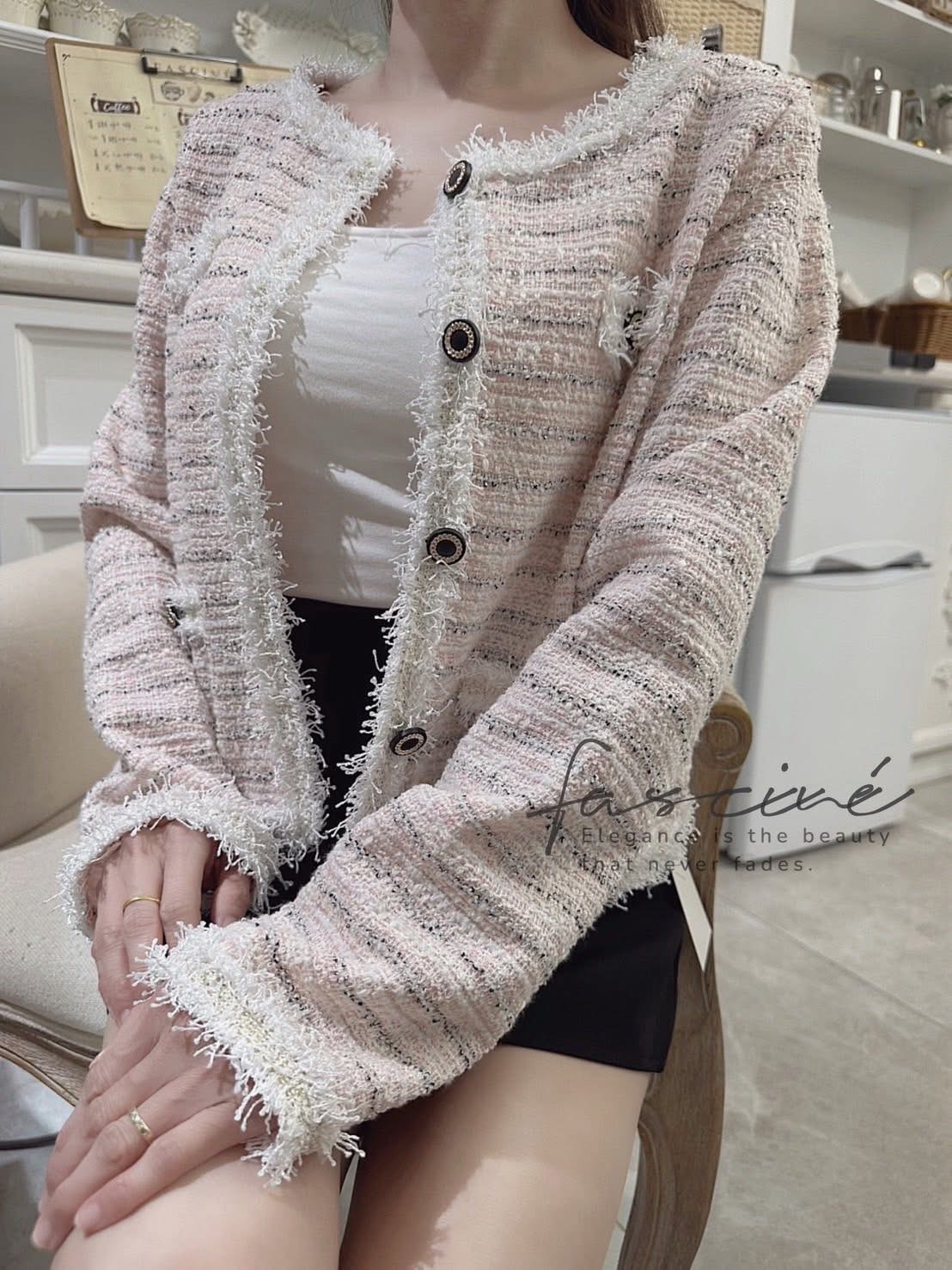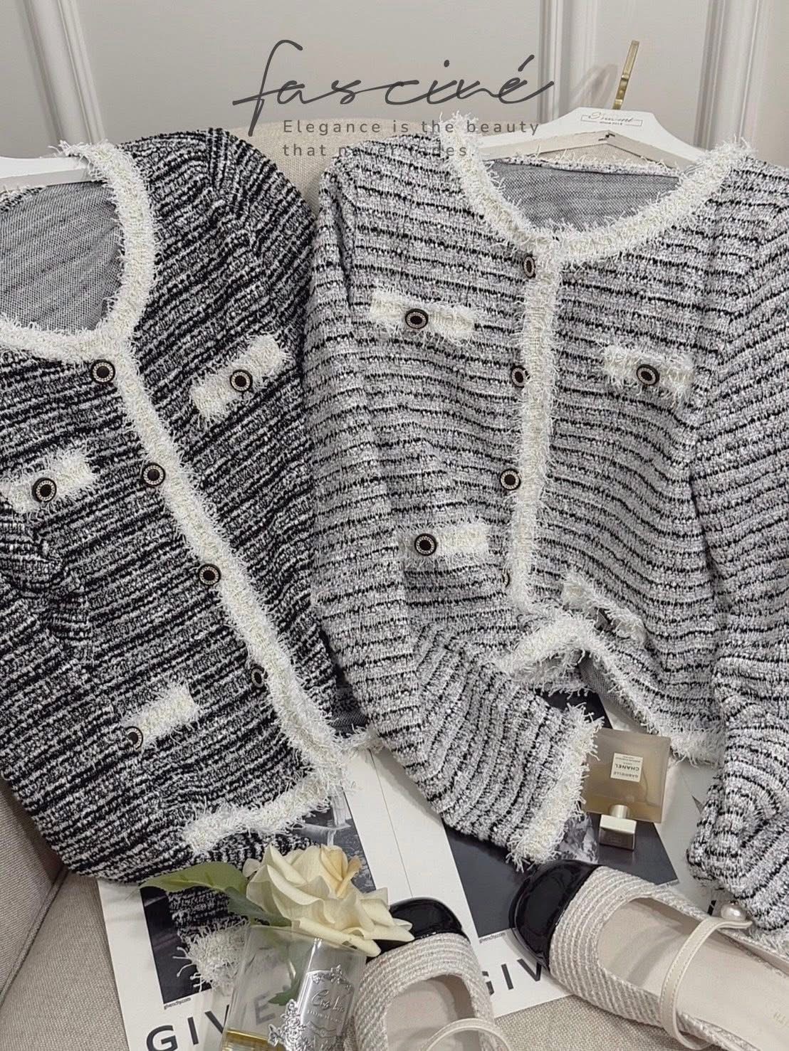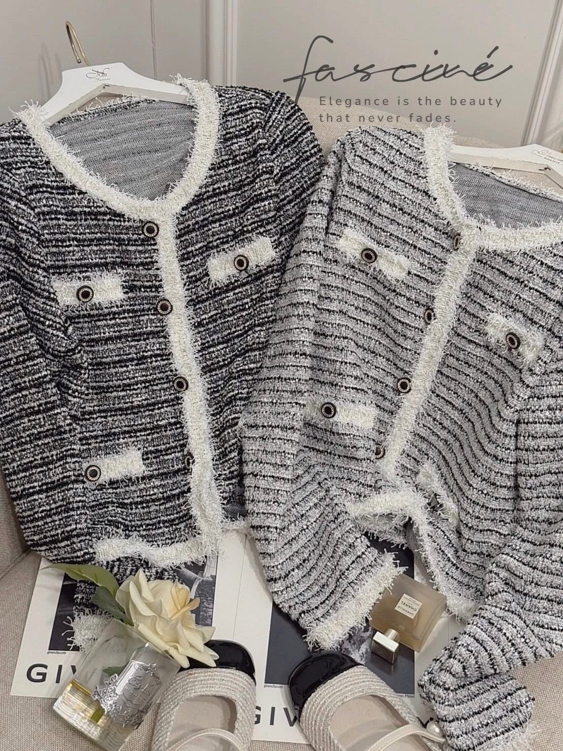 以細膩粗花呢交織立體紋理,配圓領修身剪裁與撞色毛毛邊,優雅中帶俐落,瞬間放大精緻氛圍感。復古感金邊鈕釦提升層次,觸感柔軟不刺膚、厚薄適中,通勤約會一件到位。粉、淺灰、深黑三色,百搭牛仔、短裙或寬褲皆能穿出高級小香風。