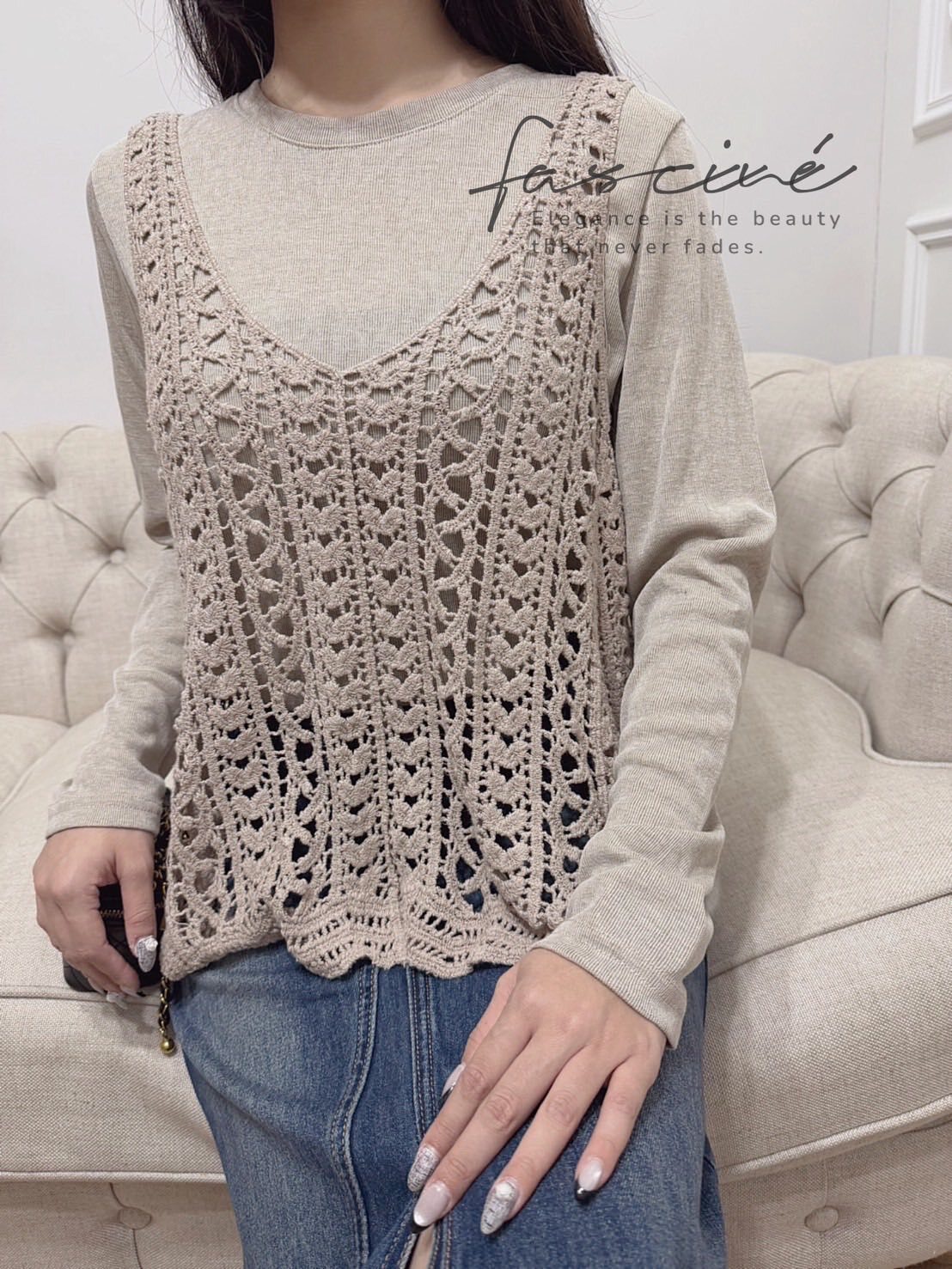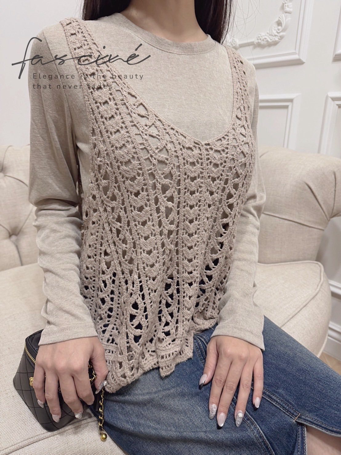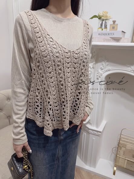 法式彈性棉內搭+針織背心套裝$550