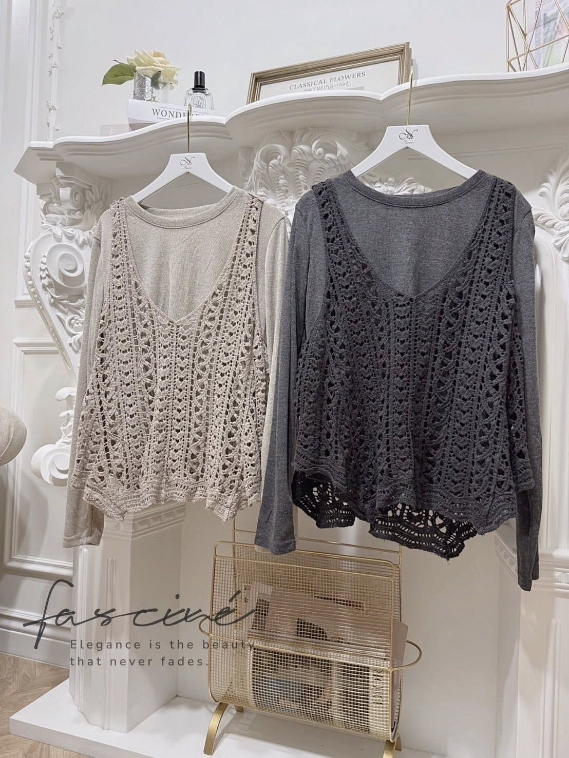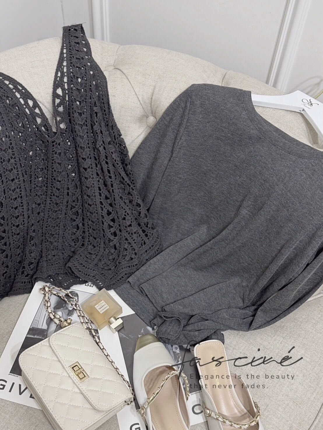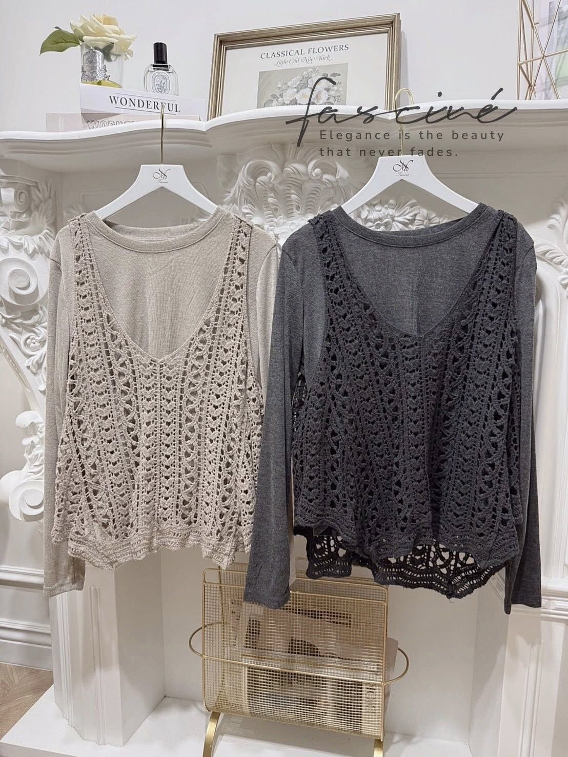 法式彈性棉內搭+針織背心套裝$550