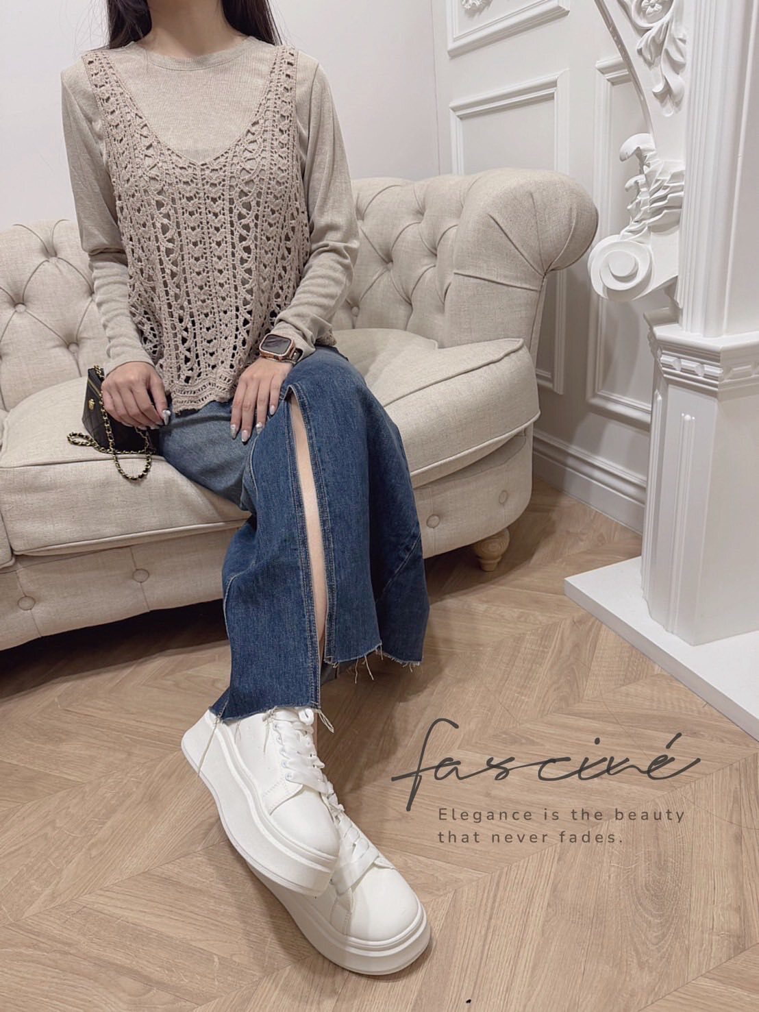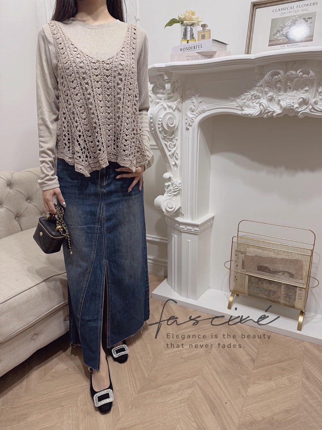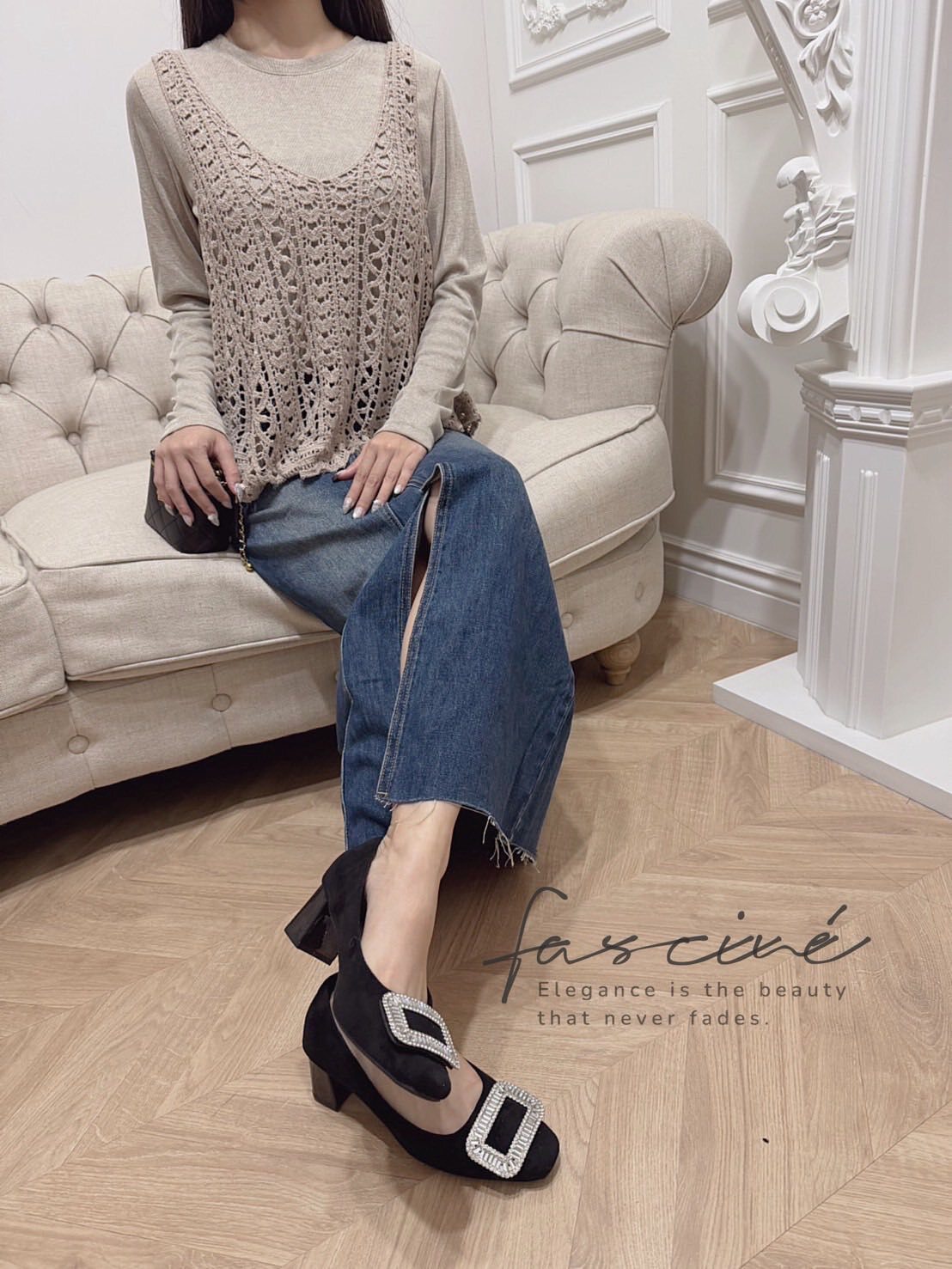 搭配建議:配高腰牛仔裙或西裝寬褲+方頭瑪莉珍鞋,拎奶油白小包拉長比例。