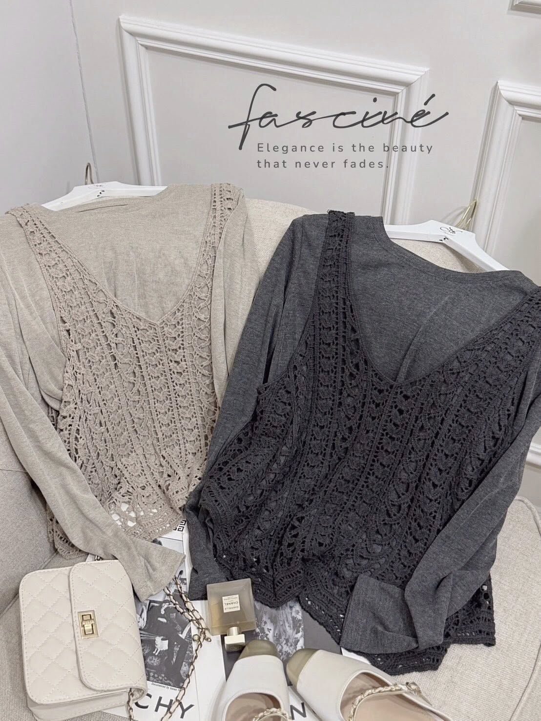 柔軟彈性棉親膚不挑人,鏤空針織背心勾勒法式層次,成套穿更顯氣質。背心V領修飾臉頸與肩型,內搭微寬鬆不貼肉,通勤約會一套搞定。