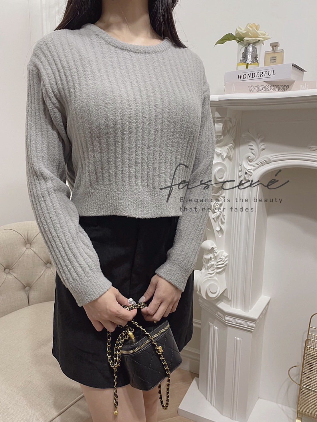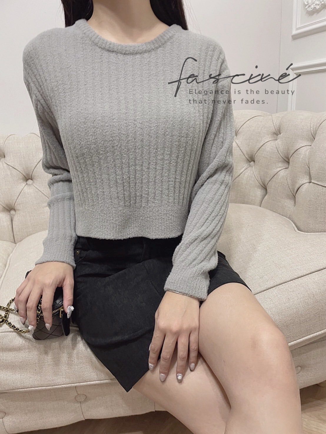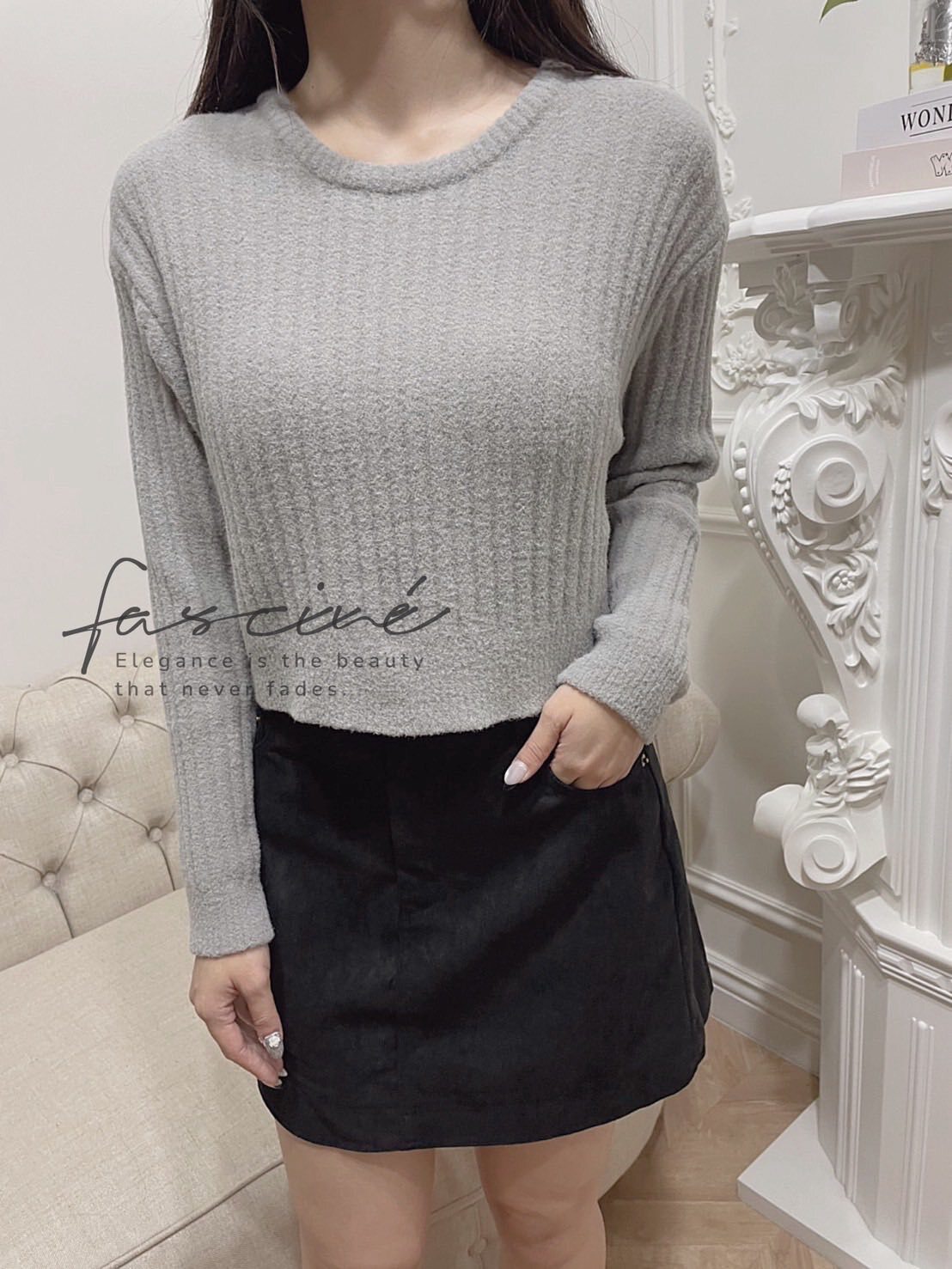 (10T84-25B)法式淺灰短版簡約百搭上衣
