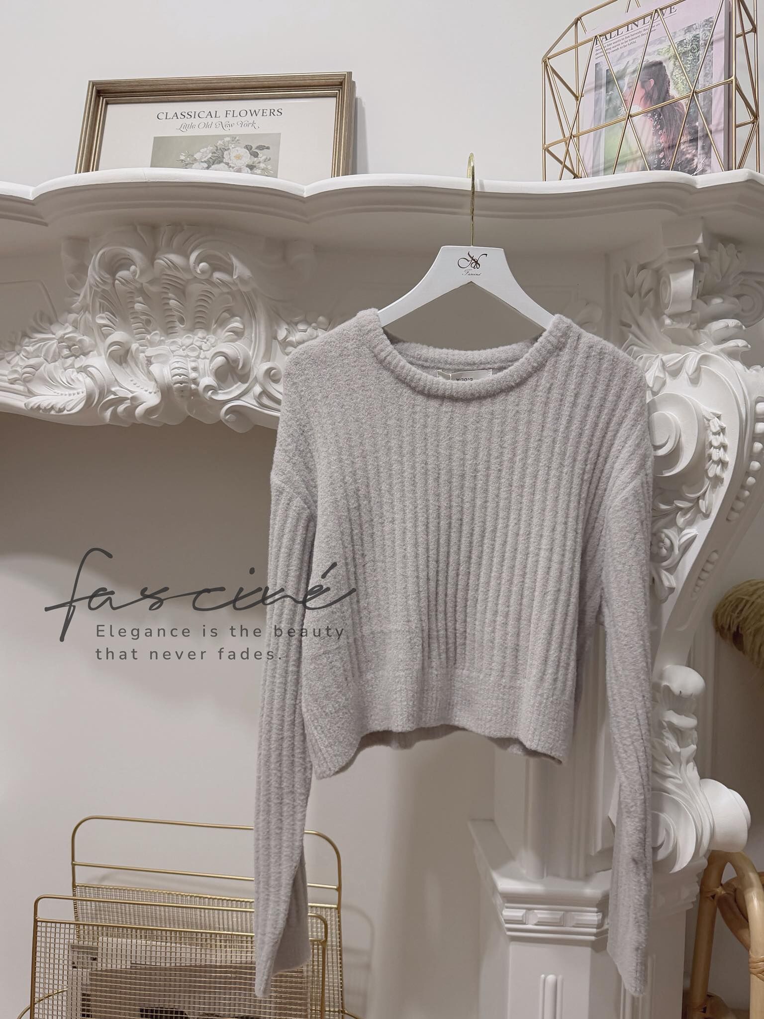(10T84-25B)法式淺灰短版簡約百搭上衣$550