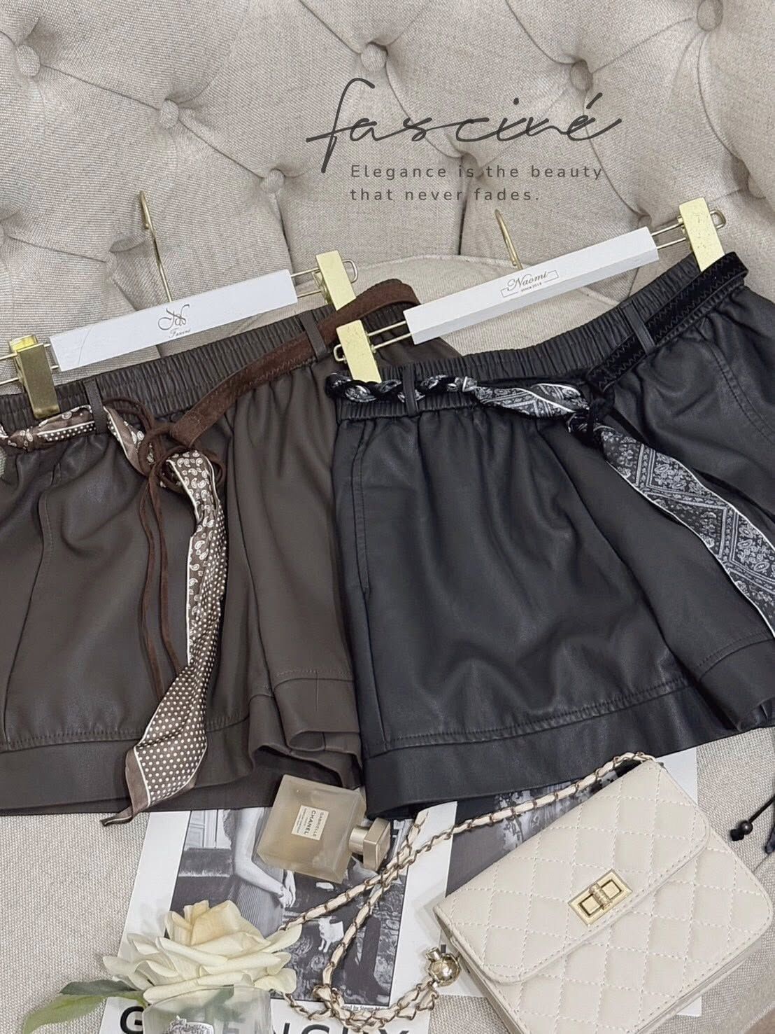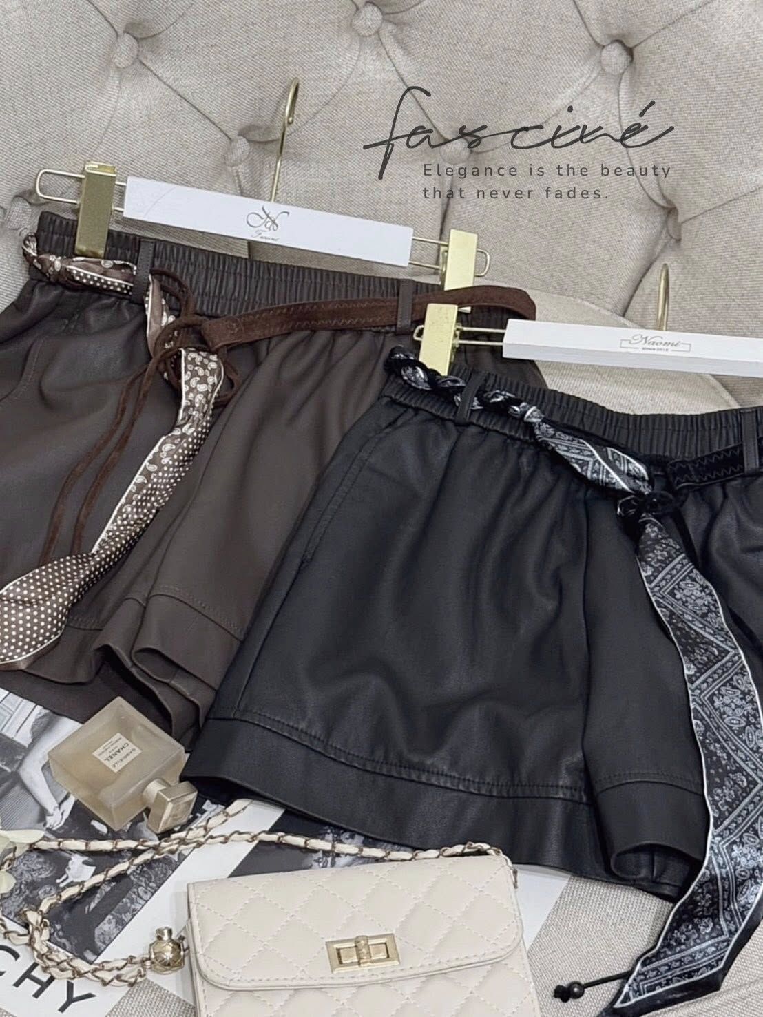 (10T87-25B)法式配飄帶腰繩闊腿時尚休閒皮褲